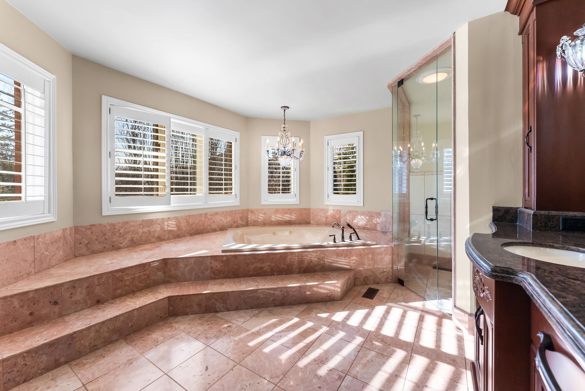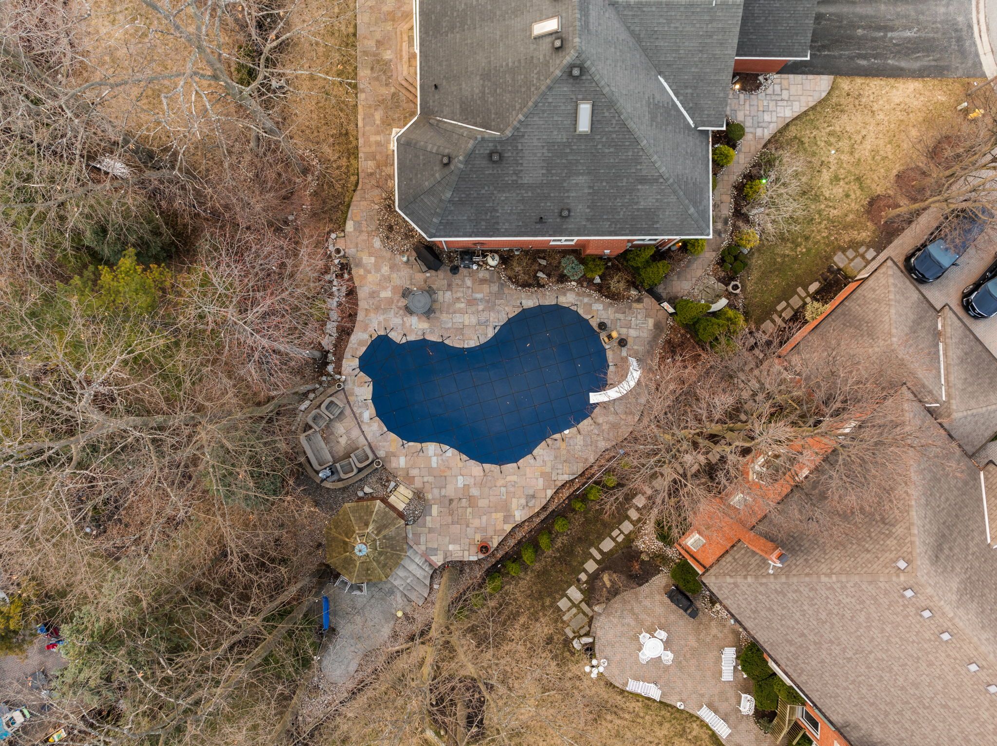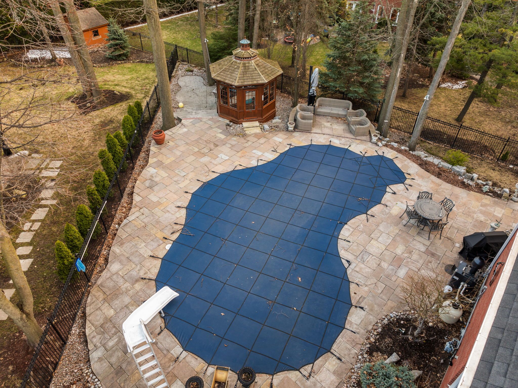• Private backyard oasis with swimming pool, gazebo, and professional landscaping.