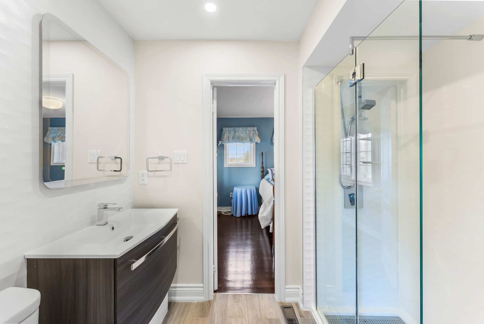 • Expanded upper level retreat includes ensuite and walk-in closet for guests.