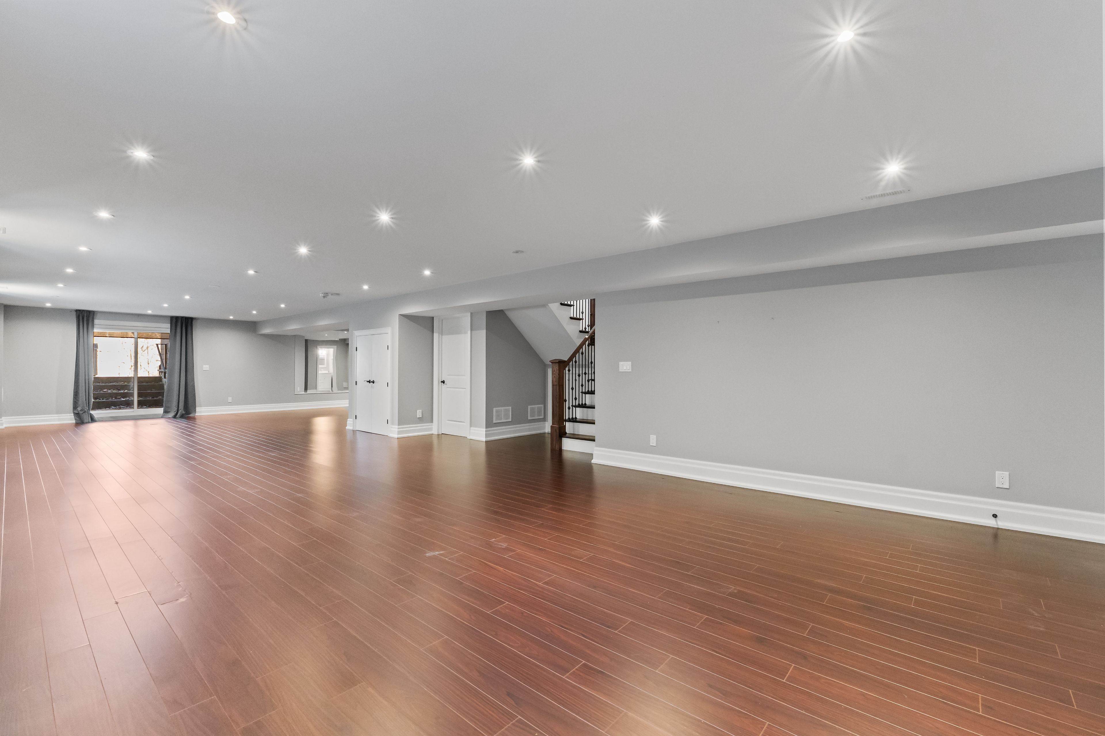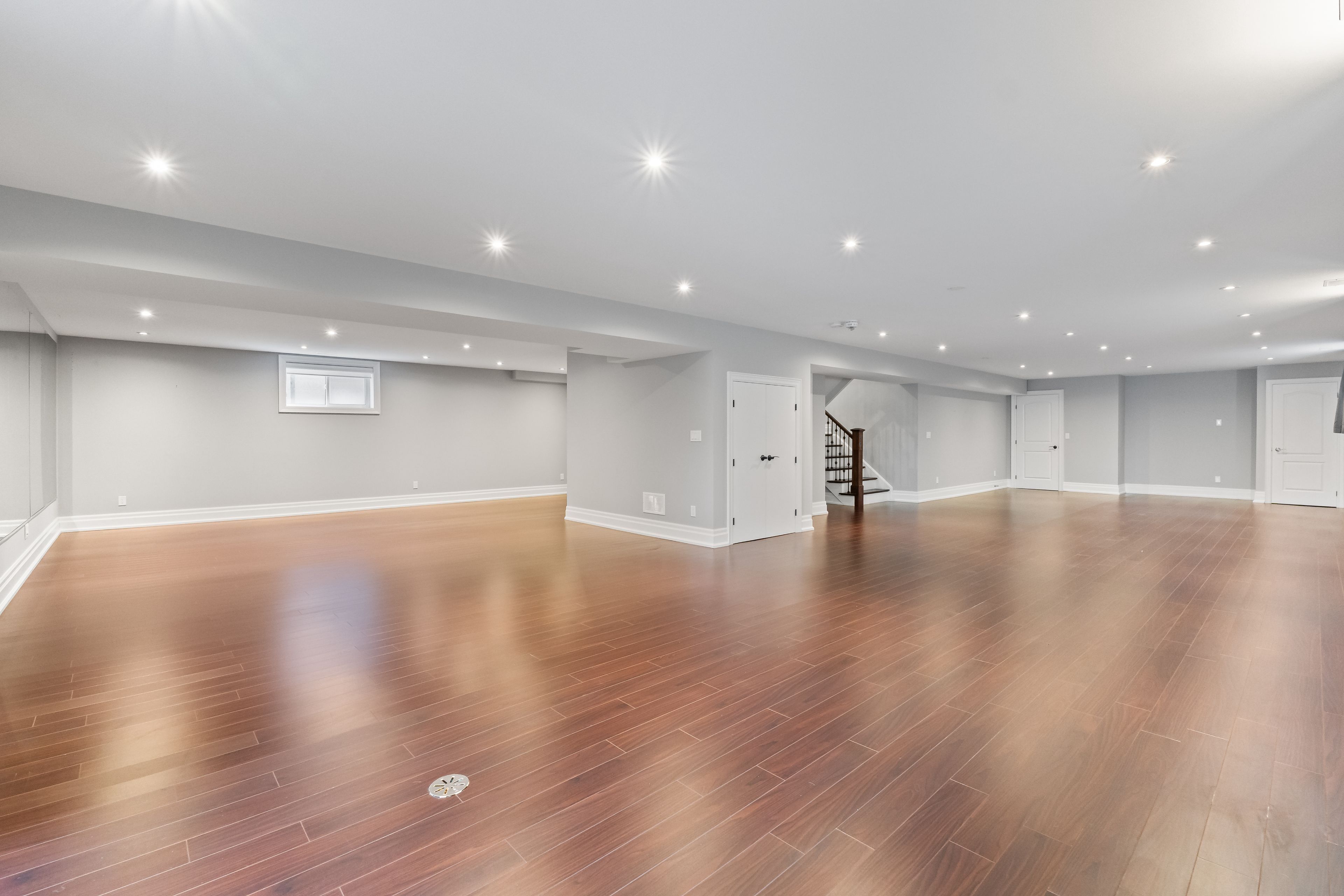 • Spacious basement with gym area, game space, and a cozy family living area.