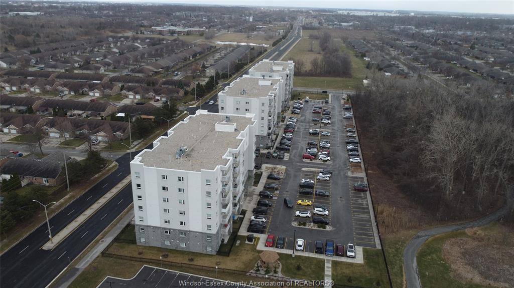 Unique 2-bedroom condo featuring two private master bedrooms w/ ensuites in one of east windsor's most convenient locations right on the border of tecumseh. This rare unit offers a brand-new custom kitchen with quartz countertops, extended cabinetry, a pull-out lazy susan, and a lowered microwave/rangehood combo not found in most units, overlooking the large open concept family/dining room and a 2 piece bathroom for guests. Enjoy in-suite laundry with lots of storage, and laminate flooring throughout, and an east-facing balcony with a mature tree for added privacy. Steps from a dog park and building allows pets, playground, blue beron pond, and scenic trails. Minutes to lakeview marina, the yacht club, ganatchio trail, and major bus routes right on banwell road. The seller is also offering condo fees to be paid for until the end of 2026!! This is a hidden gem you don't want to miss out on!