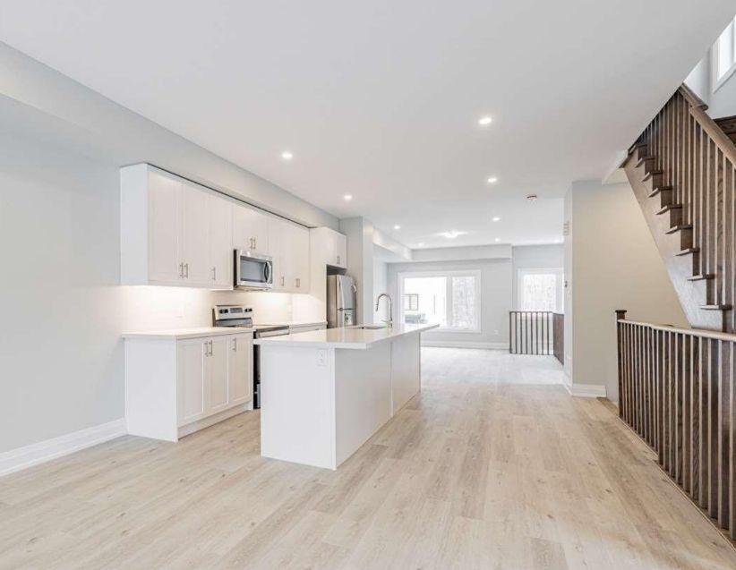 Modern 3-storey freehold townhome available from april 1st. Bright open-concept layout with an upgraded kitchen featuring quartz countertops, large island, and stainless steel appliances. No carpet throughout. Offers 3 spacious bedrooms, 3 bathrooms, and a finished walkout basement with large rec room and direct garage access. Convenient inside entry from garage and driveway parking. Located in the desirable lefroy community, minutes to schools, parks, waterfront, go train, local amenities, and quick access to hwy 400. Tenant will pay all utilities. ****the photos depict an earlier time, and the furniture and decorations may have changed since then***