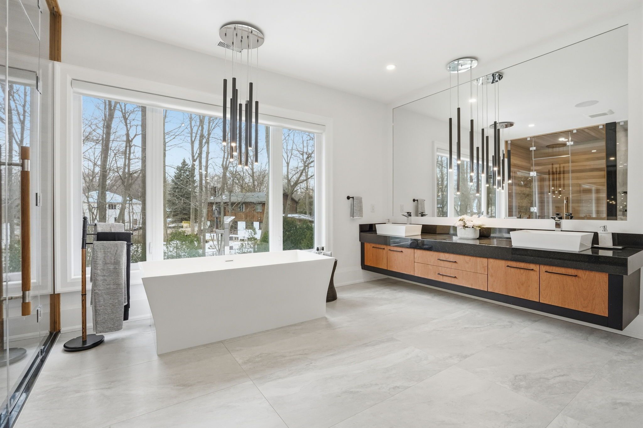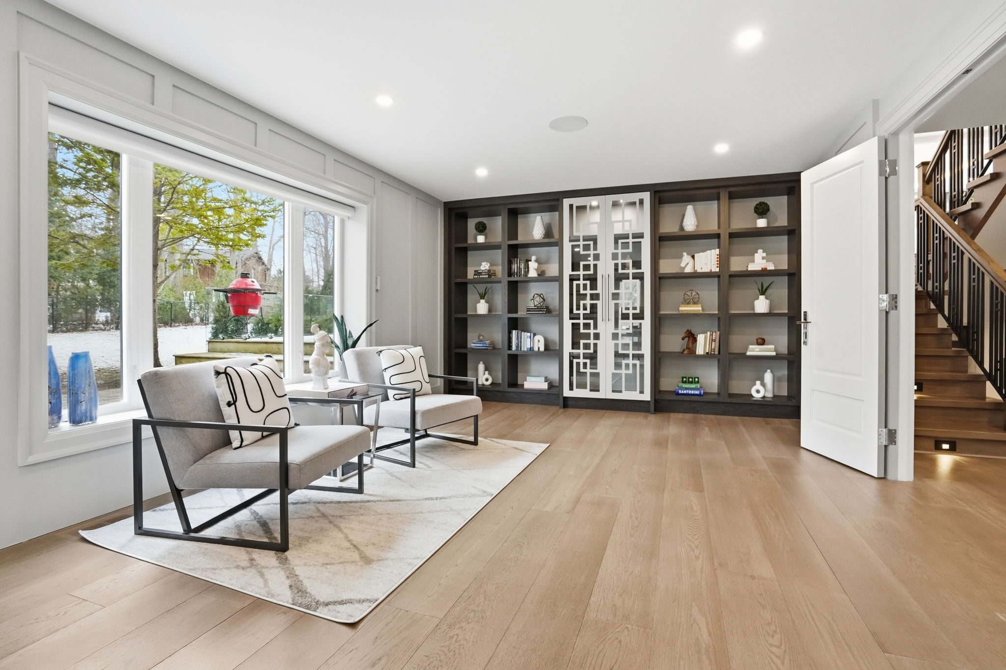 A striking expression of modern design and refined living, this custom-built residence is ideally located in the prestigious whiteoaks of jalna enclave of lorne park. Showcasing exceptional craftsmanship and curated finishes throughout, the home blends bold architectural presence with thoughtfully designed, highly functional living spaces. A dramatic double-height foyer with approximately 20 ft ceilings creates a grand sense of arrival, leading into open-concept principal rooms defined by wide plank hardwood flooring, custom millwork, and a sleek linear fireplace. The chef-inspired kitchen serves as the heart of the home, featuring full slab porcelain surfaces, integrated thermador appliances, a pot filler, and an oversized island designed for both everyday living and entertaining. The upper level offers spacious, well-appointed bedrooms, including a luxurious primary retreat with a custom walk-in closet and spa-inspired ensuite complete with a freestanding tub, rainfall shower with body jets, and a private steam sauna. The fully finished lower level is designed for elevated entertaining, featuring a custom wet bar, wine display, media lounge, and a private home theatre with tiered seating for eight. Outdoors, professionally landscaped grounds offer a private, tree-lined setting with a tiered deck, glass railings, hot tub area, and seamless indoor-outdoor flow, ideal for both relaxation and hosting. A rare opportunity to own a thoughtfully designed modern home in one of mississauga's most sought-after neighbourhoods, just minutes to top schools, parks, and the lake.