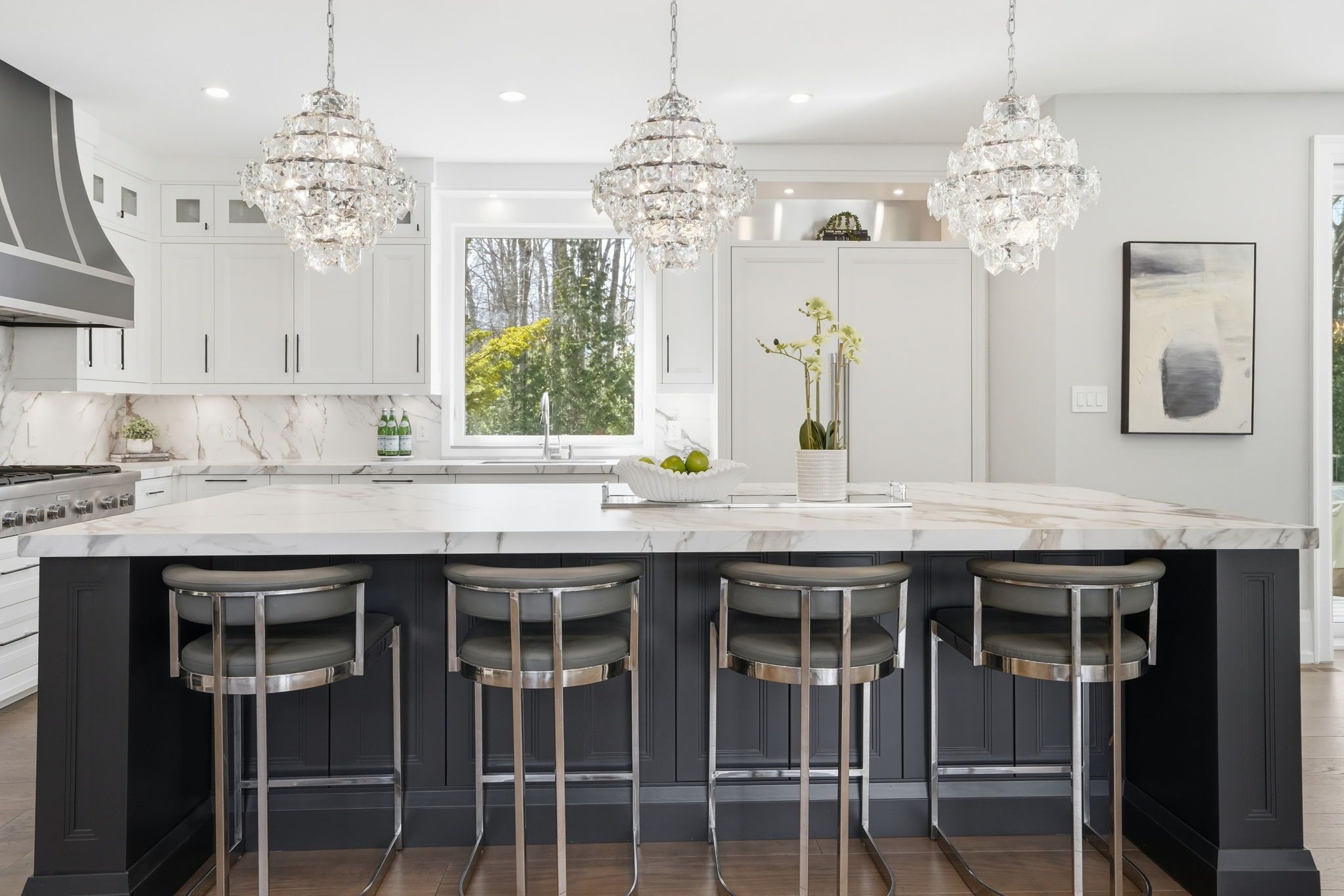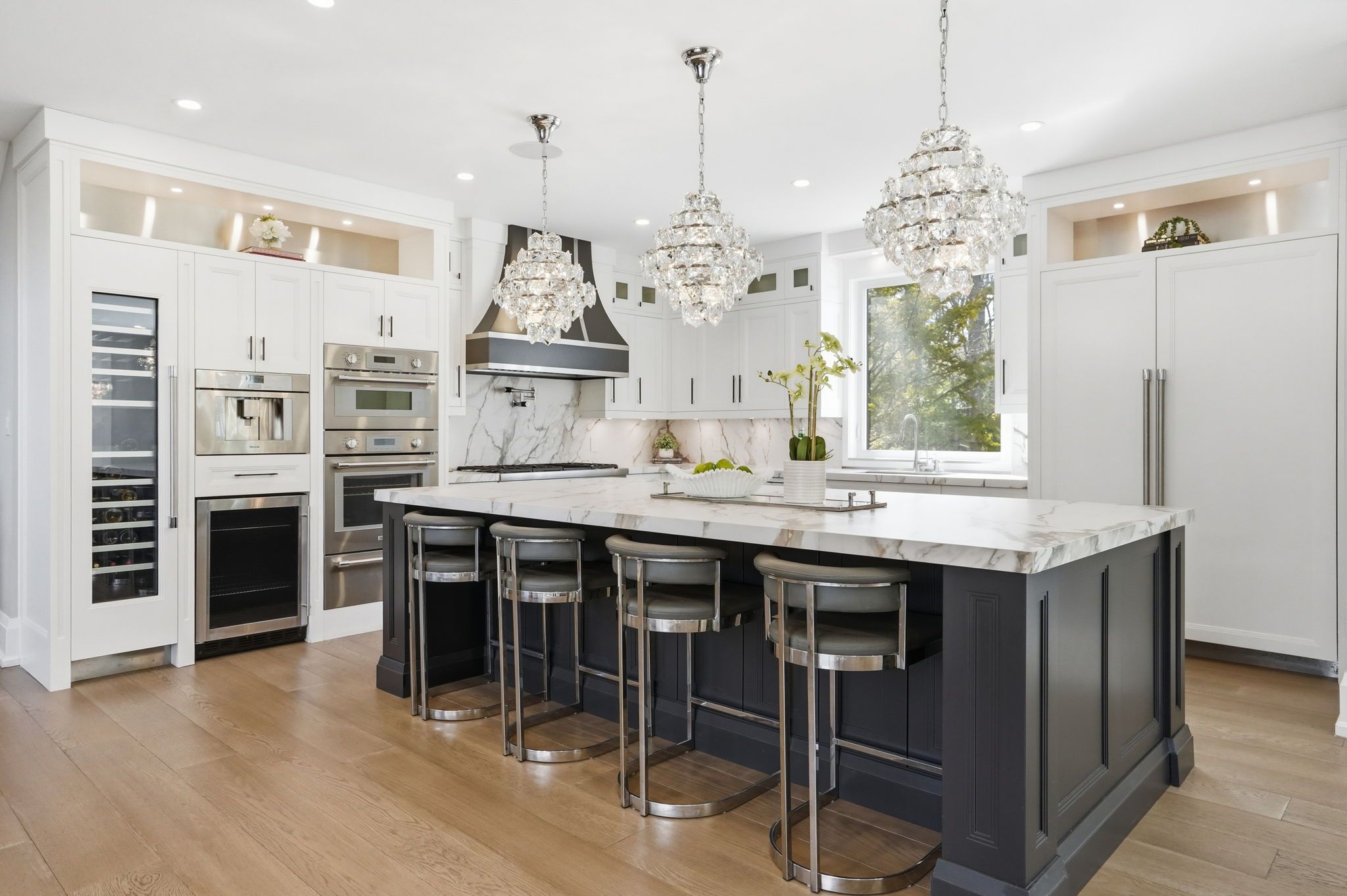 • Chef-inspired kitchen with high-end appliances and large island for entertaining.