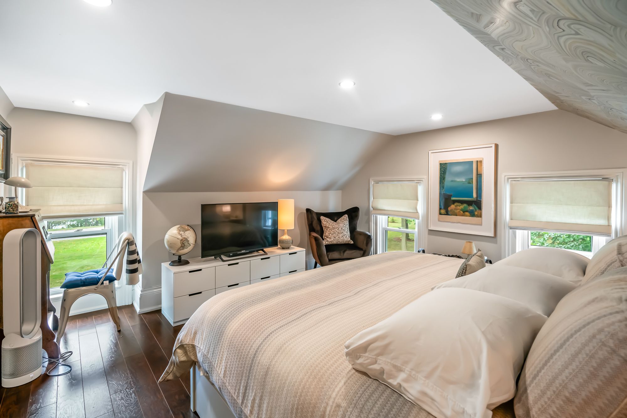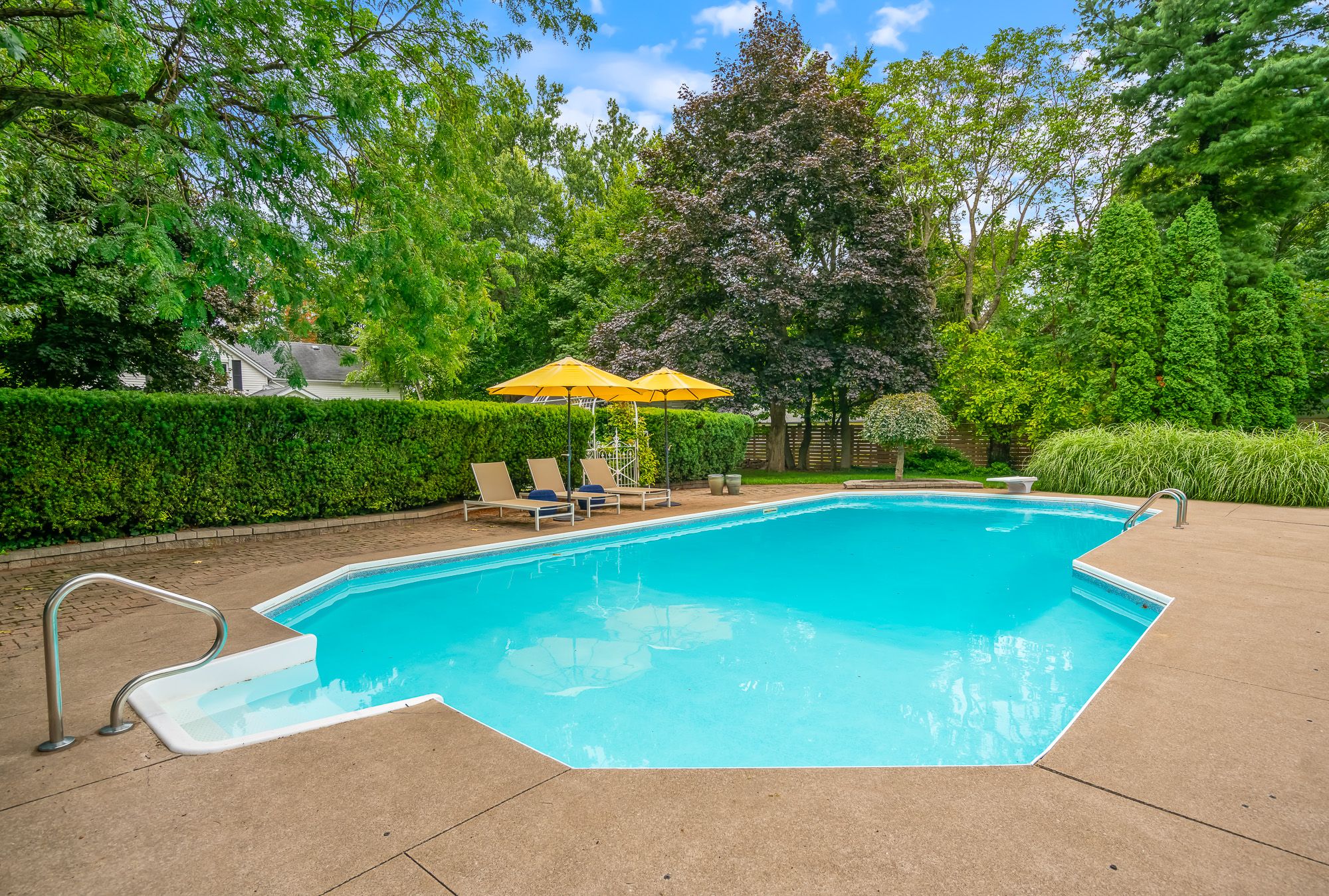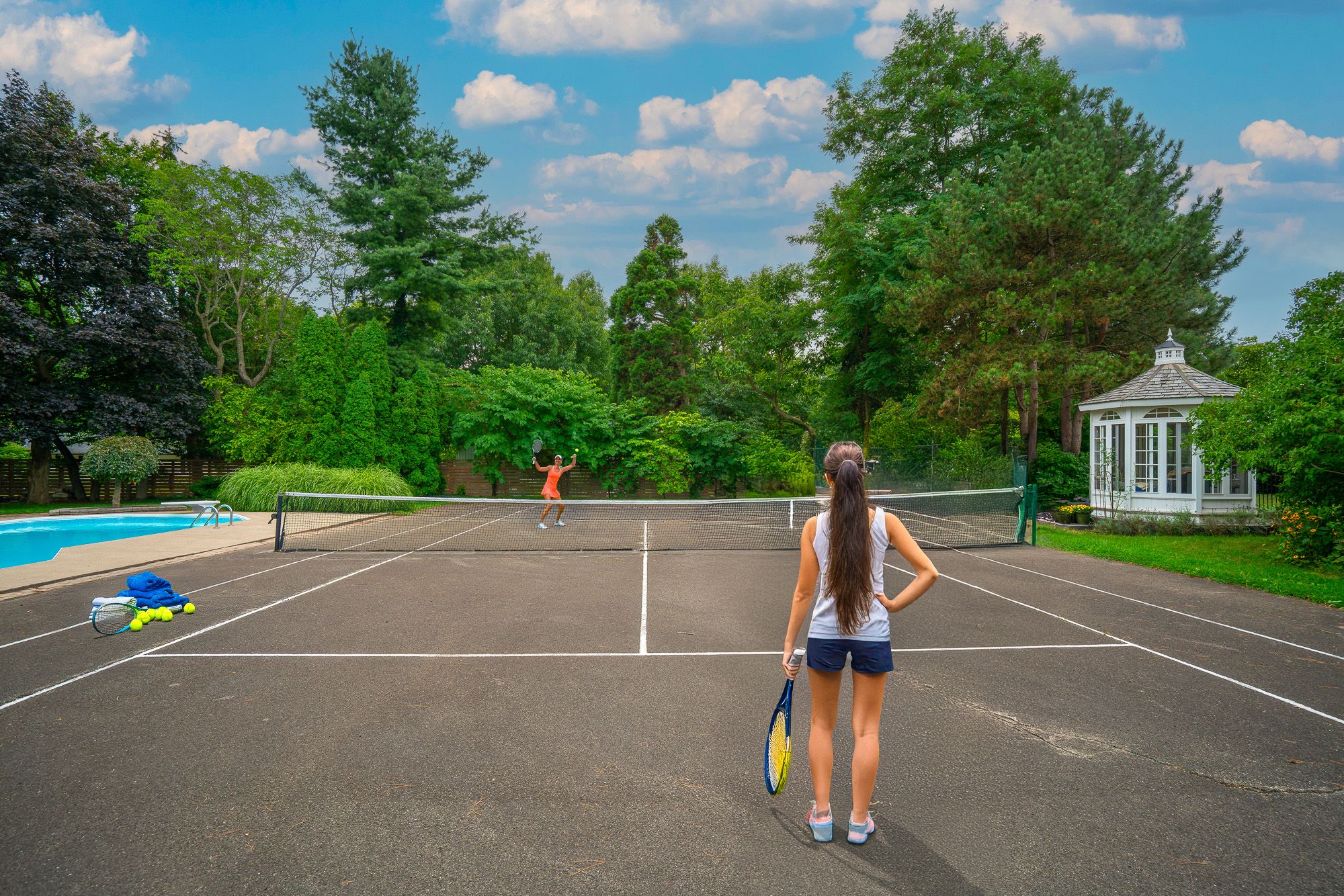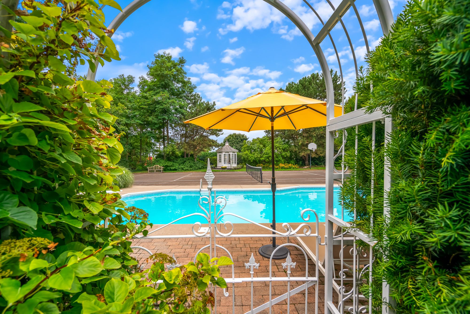 • Impressive outdoor space with in-ground heated pool, tennis court, and gazebo.