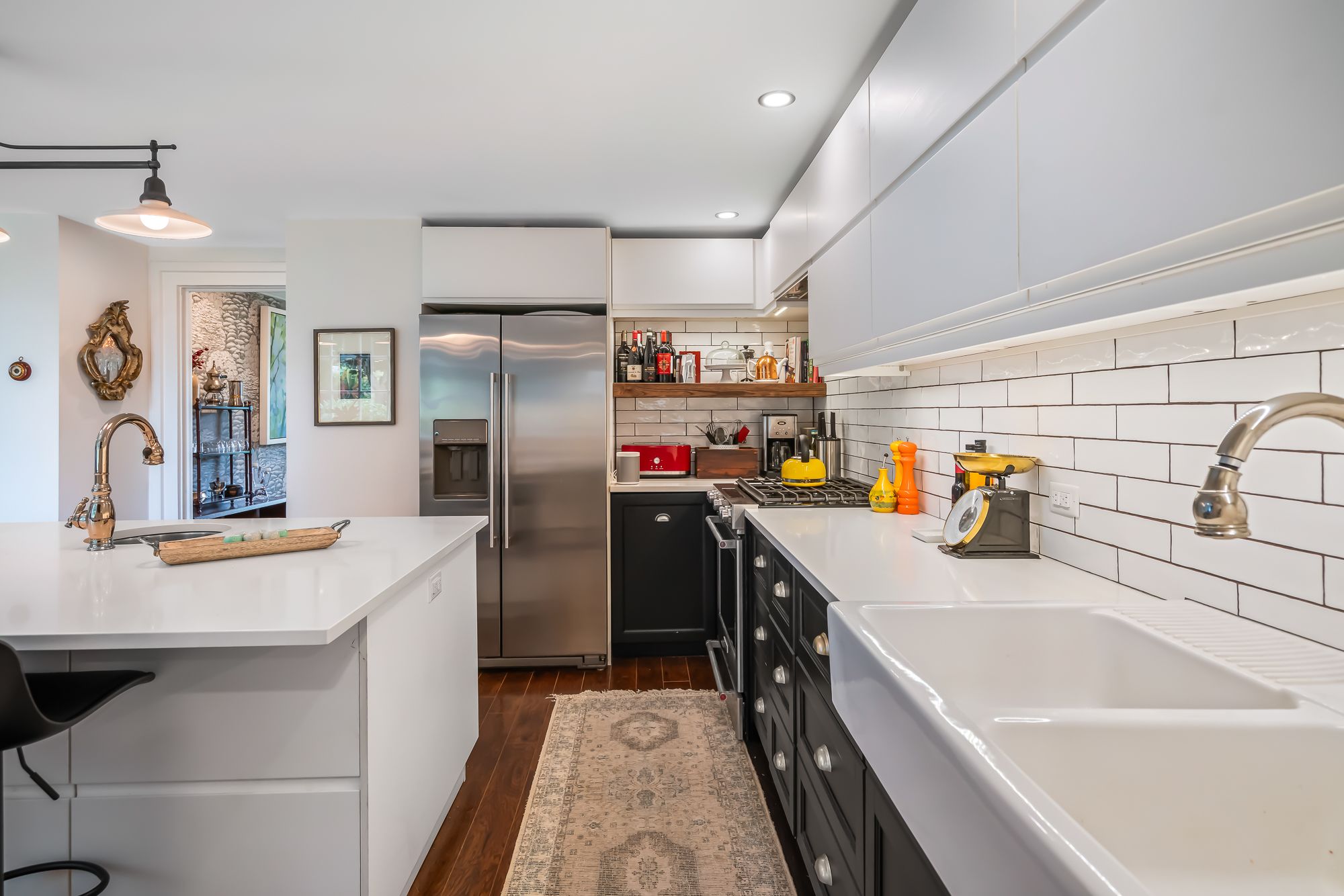 • Gorgeous kitchen featuring upscale stainless steel appliances and large island.