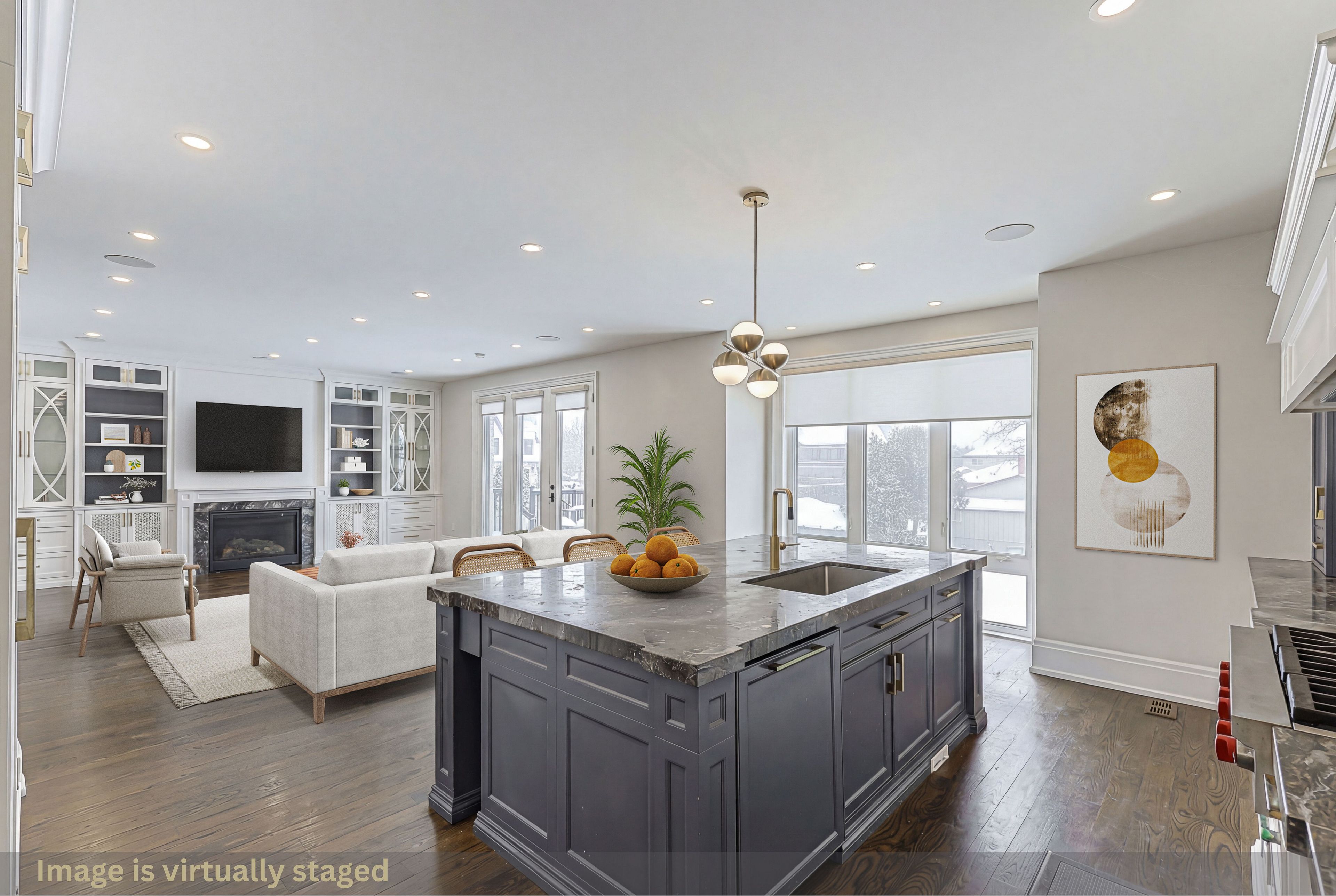• Gourmet kitchen featuring premium finishes and Wolf appliances.