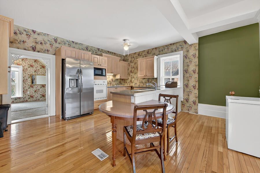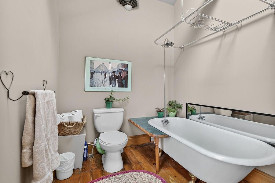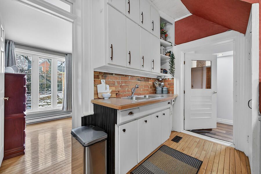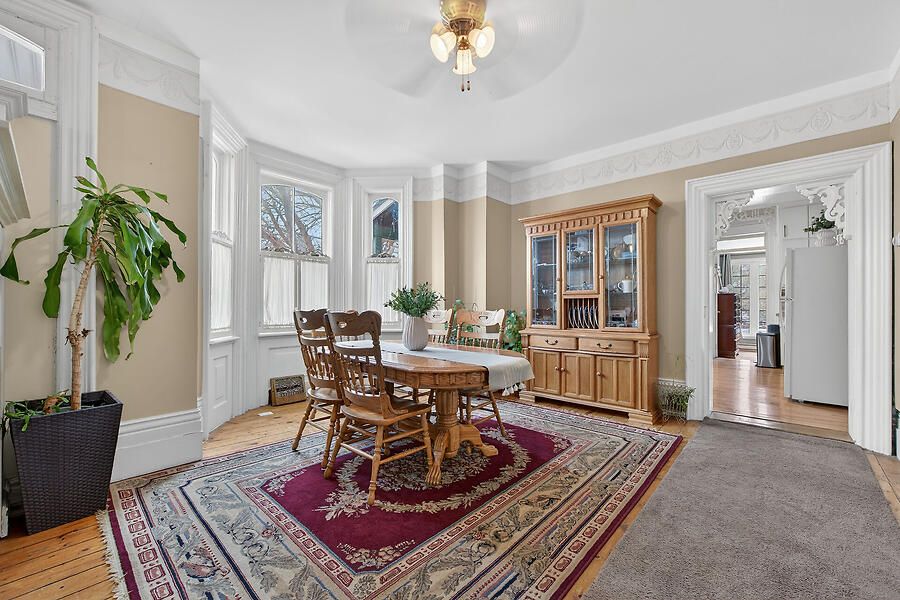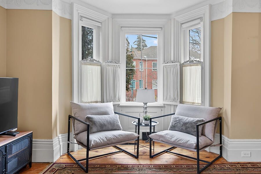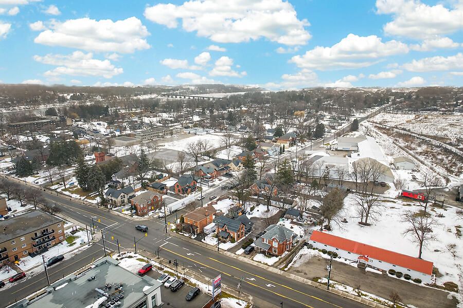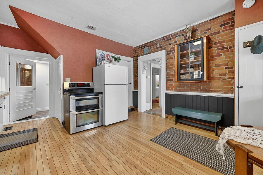 Welcome to 149 argyle st. N., a charming victorian home filled with original character and period details, blended with everyday modern comforts. This spacious property features large principal rooms and tall ceilings and windows. The main level offers a generous eat-in kitchen, formal dining room, and living room with a double-sided gas fireplace and two impressive bay windows that bring in plenty of natural light. There's also a bedroom with a 4-piece ensuite, a large second bedroom, mudroom with side entrance, and a 2-piece bath. The second floor has its own separate entrance and functions as a self-contained in-law suite. It includes a spacious living/dining area with walk-out to a balcony, an eat-in kitchen with ample cabinetry, a large bedroom, and a 4-piece bath with vaulted ceiling, clawfoot tub, skylight, and exposed beams. The suite also has its own washer and dryer. The laundry servicing the main floor is located in the unfinished basement. Outside, you'll find two separate paved driveways - providing 2 spaces for the 2nd floor and 3 spaces for the main floor, a large landscaped lot with custom fencing, a wraparound side/rear porch, separate front porch, a 10 x 10 shed with power and a 12 x 16 work shed, which has it's own panel. An excellent opportunity for an owner-occupied business, multi-generational living, or owner/tenant setup. With some updating, it could easily be converted back into a spacious 5-bedroom family home. Great curb appeal and ideally located within walking distance to the grand river, trails, schools, parks, and shopping.