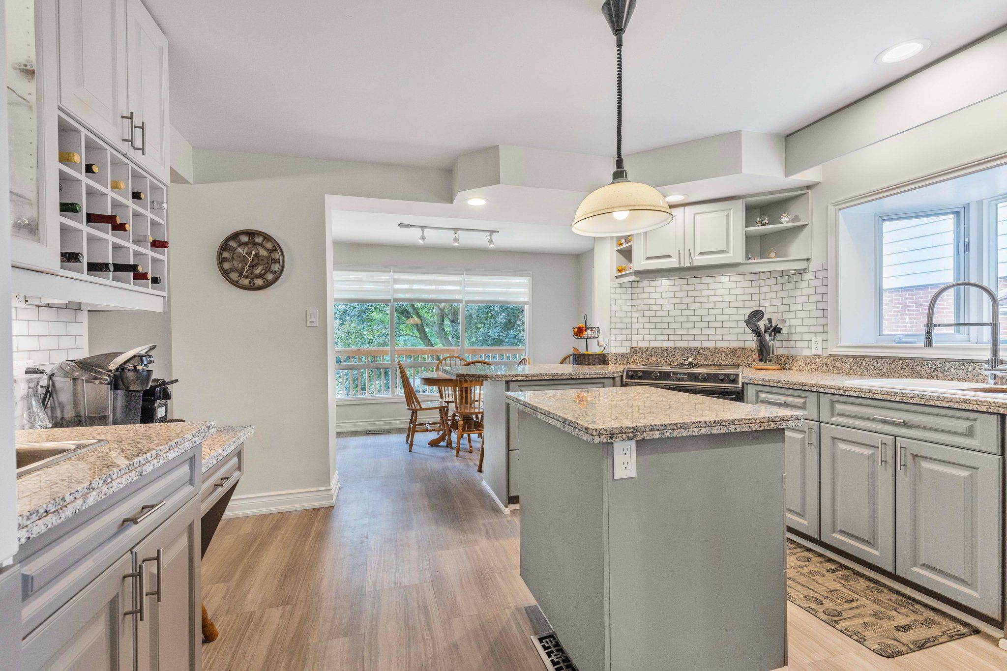 Nestled on a generous 67. 5 x 165 ft lot with seasonal lake views, this meticulously crafted & fully finished home offers an impressive 4,700 sq ft of thoughtfully designed living space. Every detail has been considered to create a home that blends elegance, comfort, & functionality. Step through the grand front foyer & be welcomed by a hardwood spiral staircase that gracefully winds through the 2nd and 3rd floors. The main level features hardwood flooring, a cozy family room with a wood-burning fireplace, a formal dining room perfect for entertaining, a spacious kitchen with stone countertops & a bright breakfast area that walks out to the deck. A main floor office provides an ideal space for working from home. The 2nd floor offers 2 generous bedrooms, a full bathroom with laundry & a laundry chute, a comfortable sitting area, & a balcony walkout to enjoy the outdoors. The 3rd-flr primary suite is a true retreat, featuring a 5+ piece ensuite, a walk-in closet with a laundry chute & storage, & a private balcony, the perfect spot for morning coffee or evening sunsets. The fully finished lower level includes a separate w/o entrance, a recreation room, a 3-piece bathroom, additional laundry, ample storage, & a wine cellar. Car enthusiasts will love the upper & lower garages, each with a wash basin, storage closet, inside entry, & radiant natural gas heat in the lower garage. Outdoor living is equally inviting, with a covered deck featuring a hot tub, ideal for relaxation & entertaining. An accessory apartment offers excellent in-law or guest potential, complete with a bedroom, 3-pc bathroom, kitchen, laundry, & living room, providing privacy & comfort for extended family or visitors. This remarkable property combines luxury & practicality in a serene setting with seasonal lake views, abundant space for entertaining, and exceptional attention to detail throughout. Recent updates: furnace (2016), 2nd floor washer (2020), basement washer & dryer (2024), steel roof.
