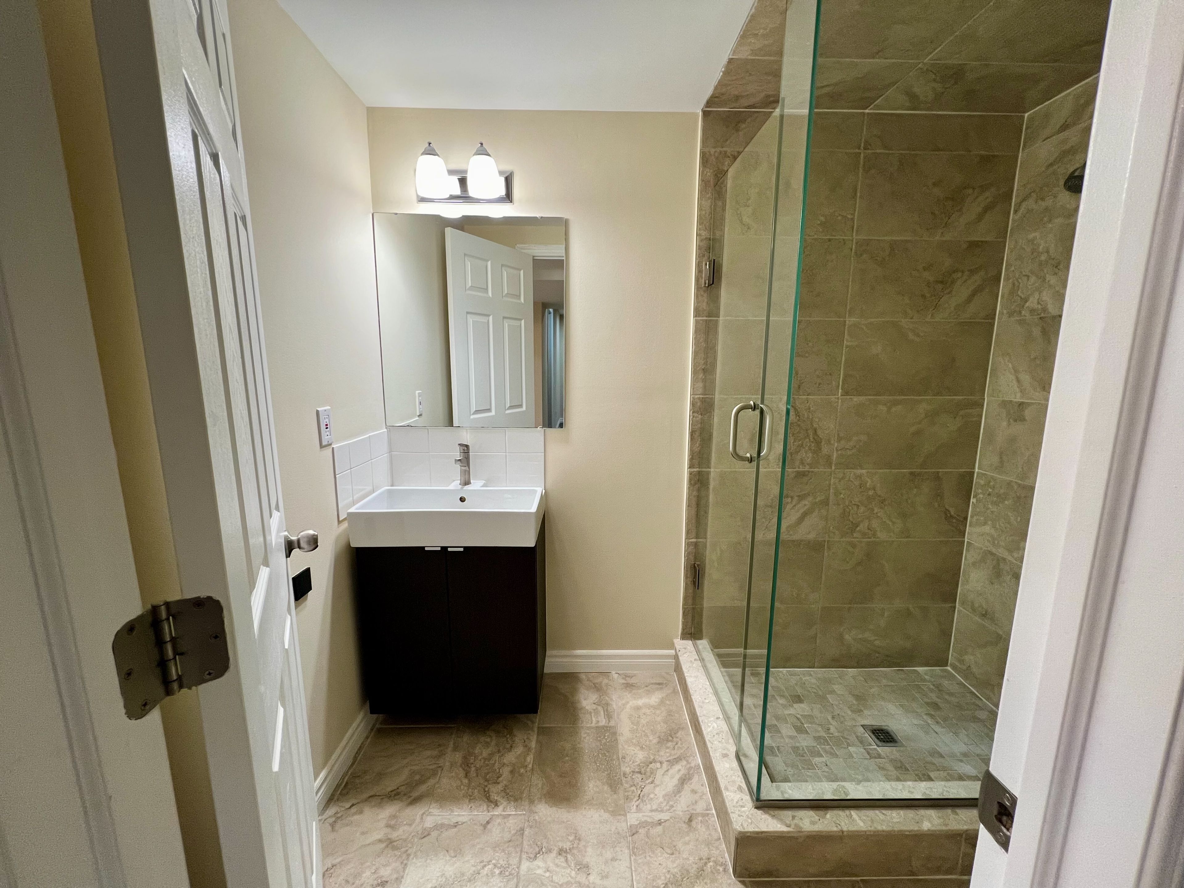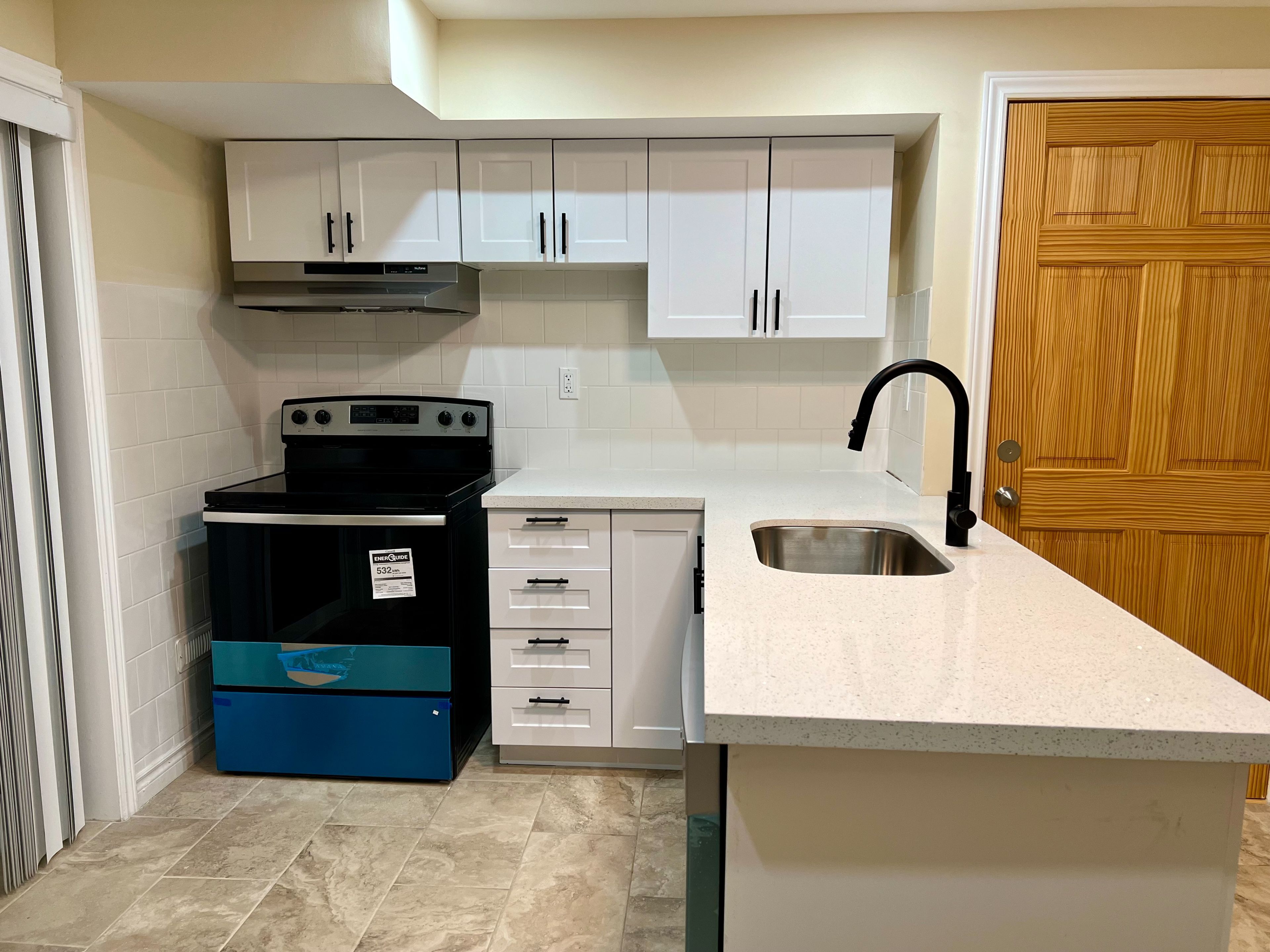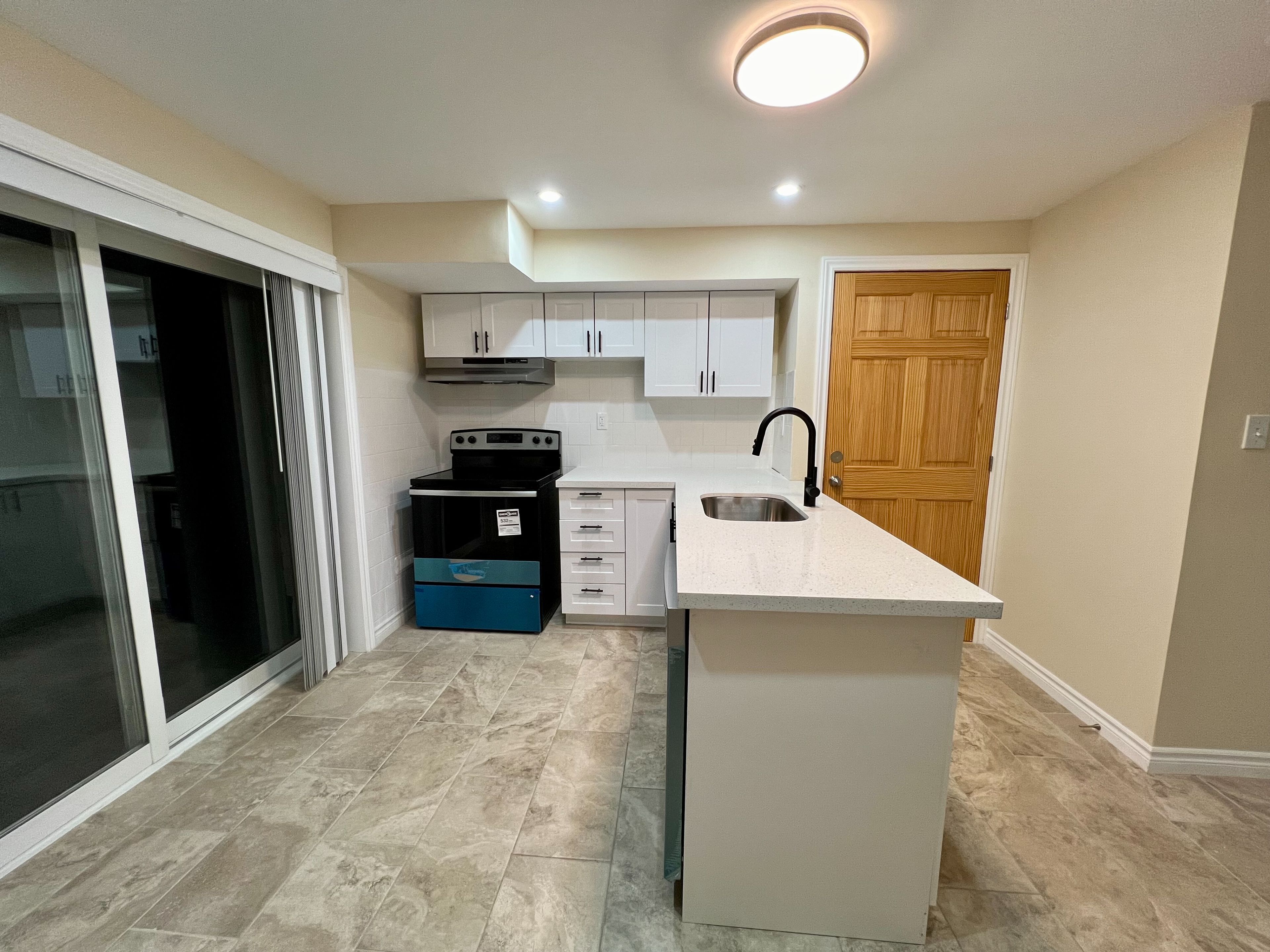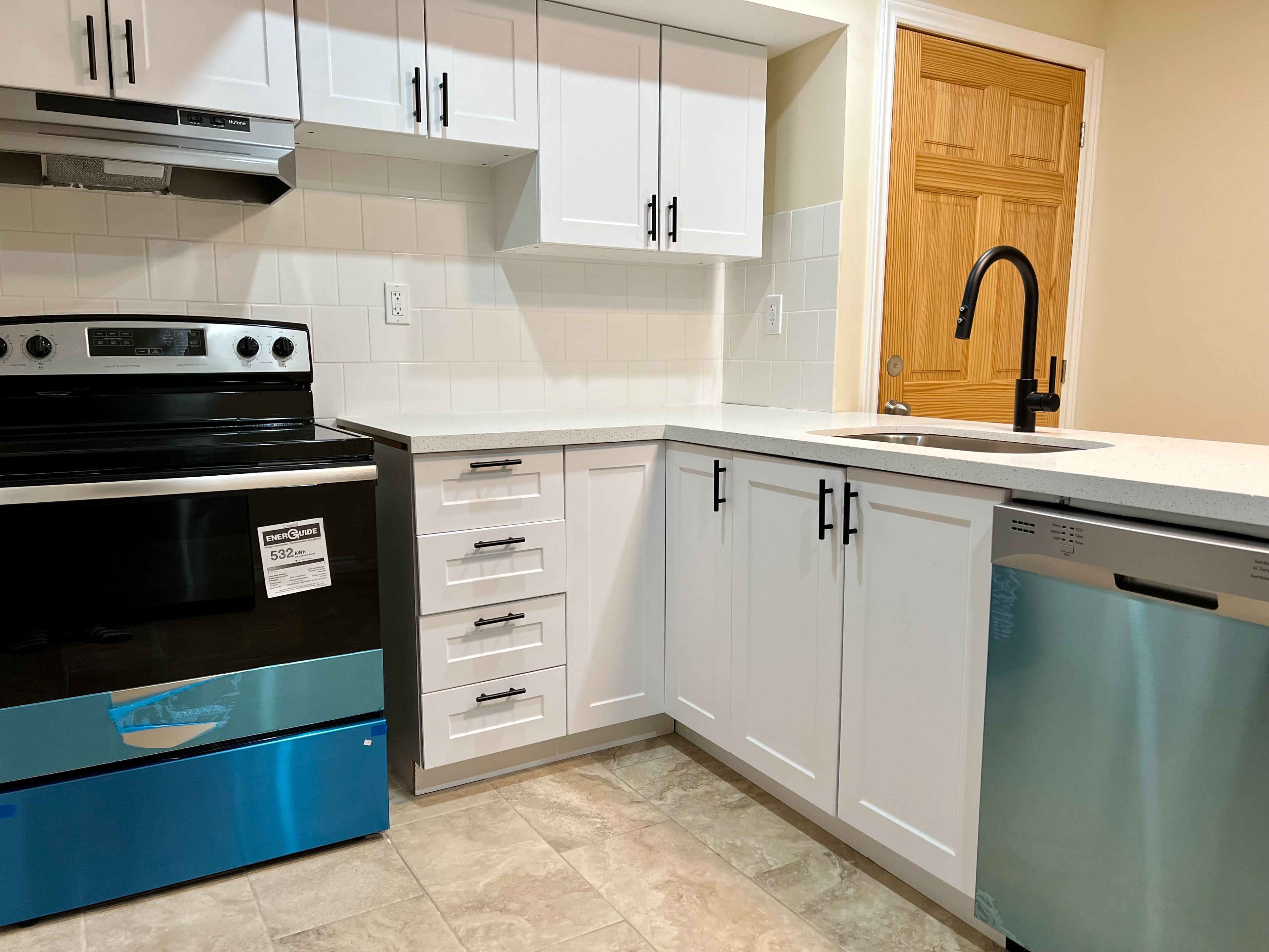 • Modern kitchen with new appliances, quartz countertops, and new cabinets.