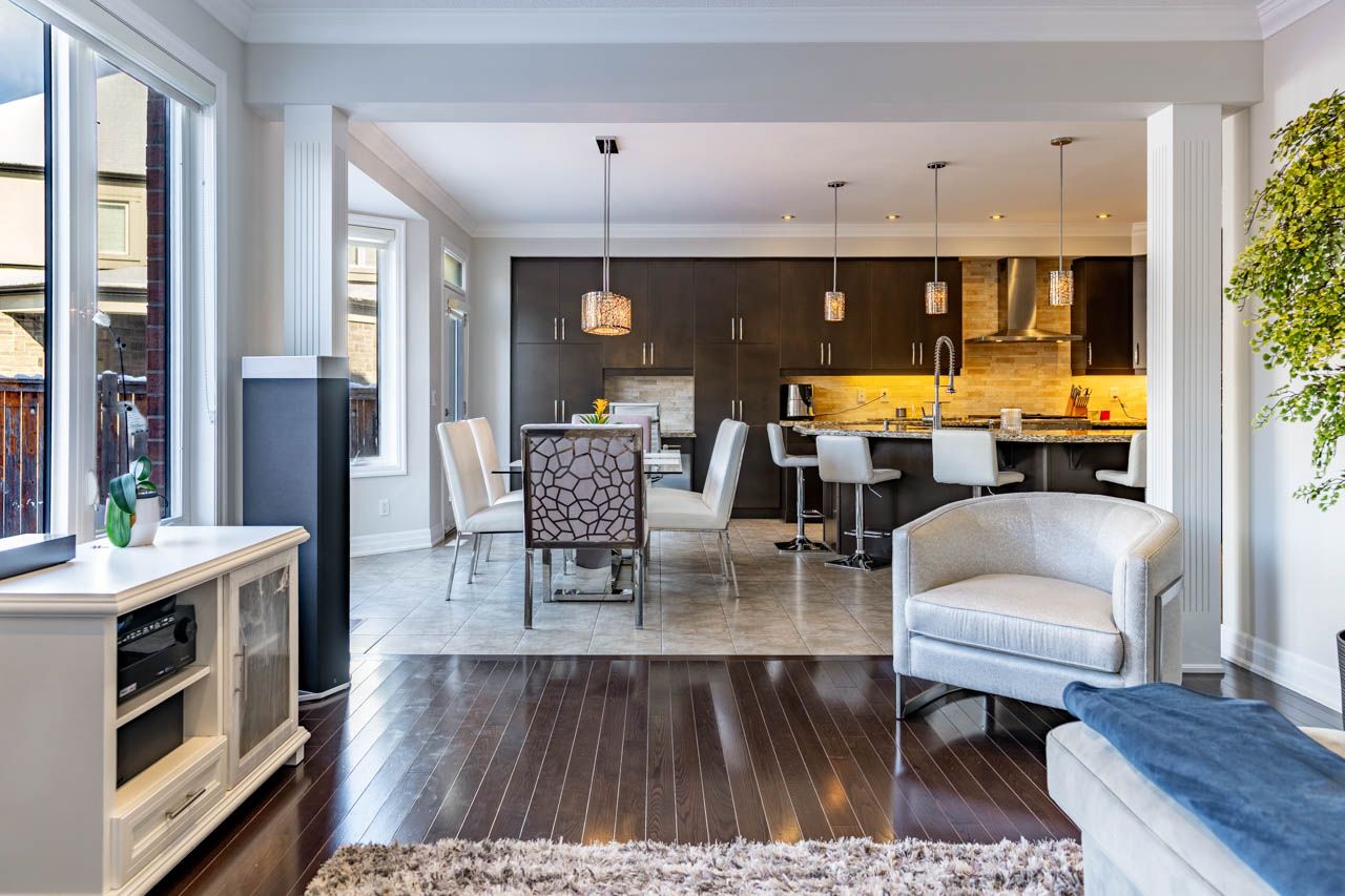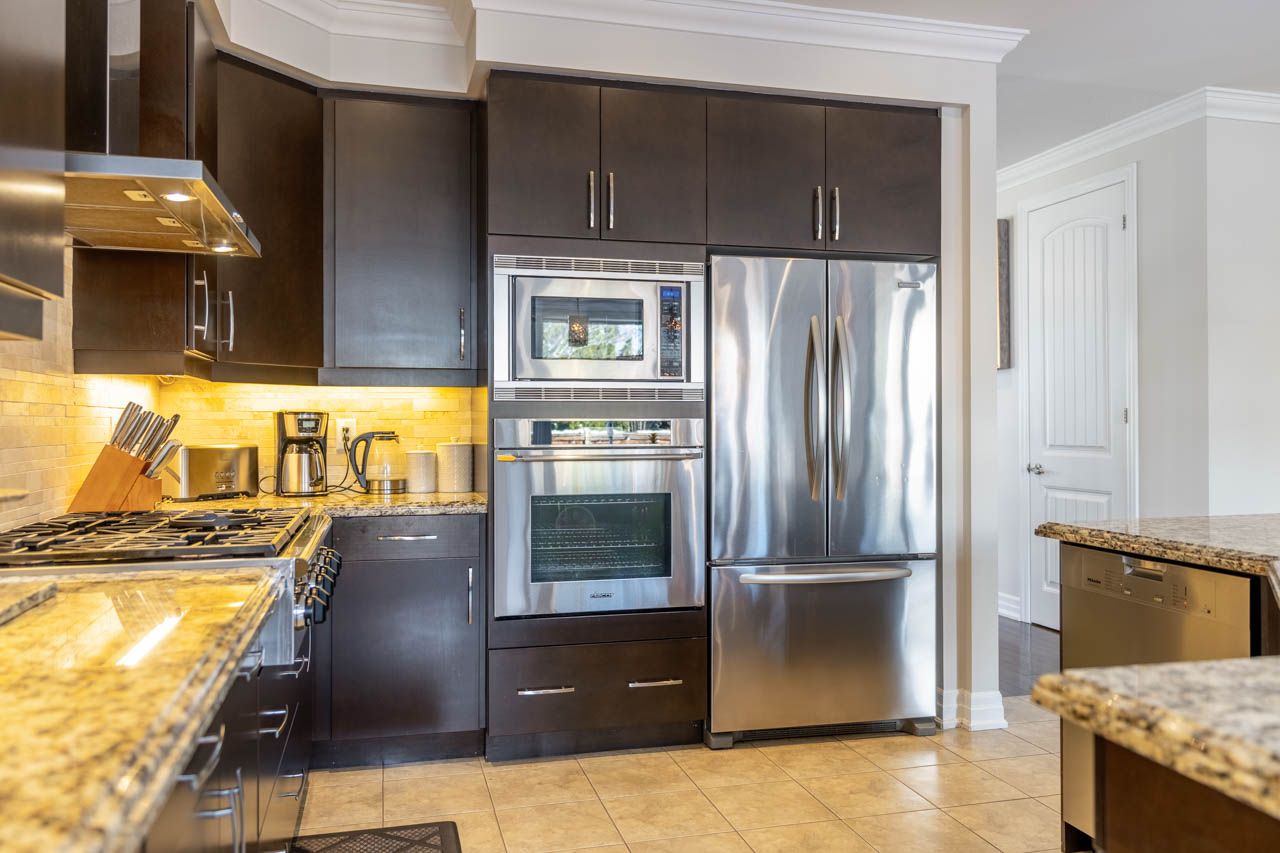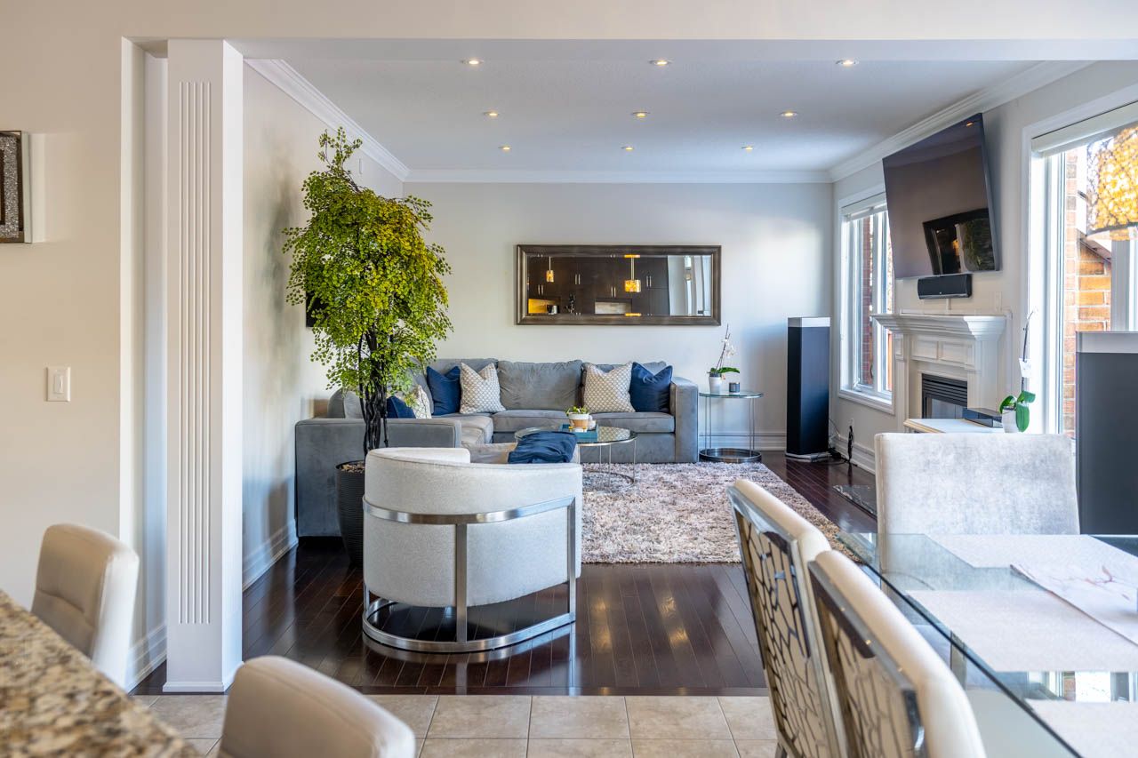Step into this executive heathwood home in milton's sought-after scott neighbourhood, offering over 3,200 square feet of thoughtful design, timeless finishes, and family-friendly space. The main floor welcomes you with a sunken foyer, nine-foot ceilings, rich oak flooring, coffered and crown-detailed formal rooms, a private office, and a warm family room centred around a gas fireplace. The kitchen is the heart of the home, featuring granite counters, an island with a breakfast bar, a stone backsplash, built-in pantries, and premium dacor appliances. Upstairs, four spacious bedrooms each enjoy direct access to a bathroom, including a generous primary retreat with a tray ceiling, gas fireplace, custom walk-in closet, and a relaxing ensuite with two vanities, a jetted tub, and a glass shower. The finished basement expands your living space with a rec room, built-in media wall, bar-height seating, a full bathroom, and plenty of storage, with potential for a future side entrance thanks to the wide side yard. Outside, enjoy a portico entry, stone walkway, a private backyard with a stone patio, and a double-wide driveway with no sidewalk. Located on a quiet street at the base of the escarpment, close to trails, top-rated schools, downtown milton, and with quick access to the upcoming tremaine/401 interchange, this is an opportunity to move into a prestigious neighbourhood designed for family living and everyday comfort.