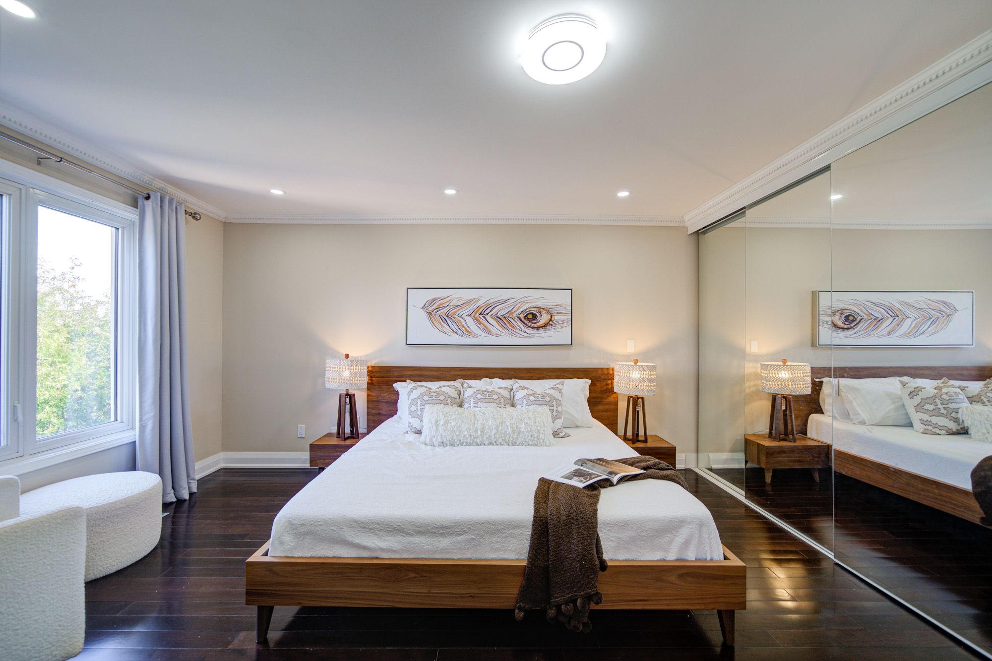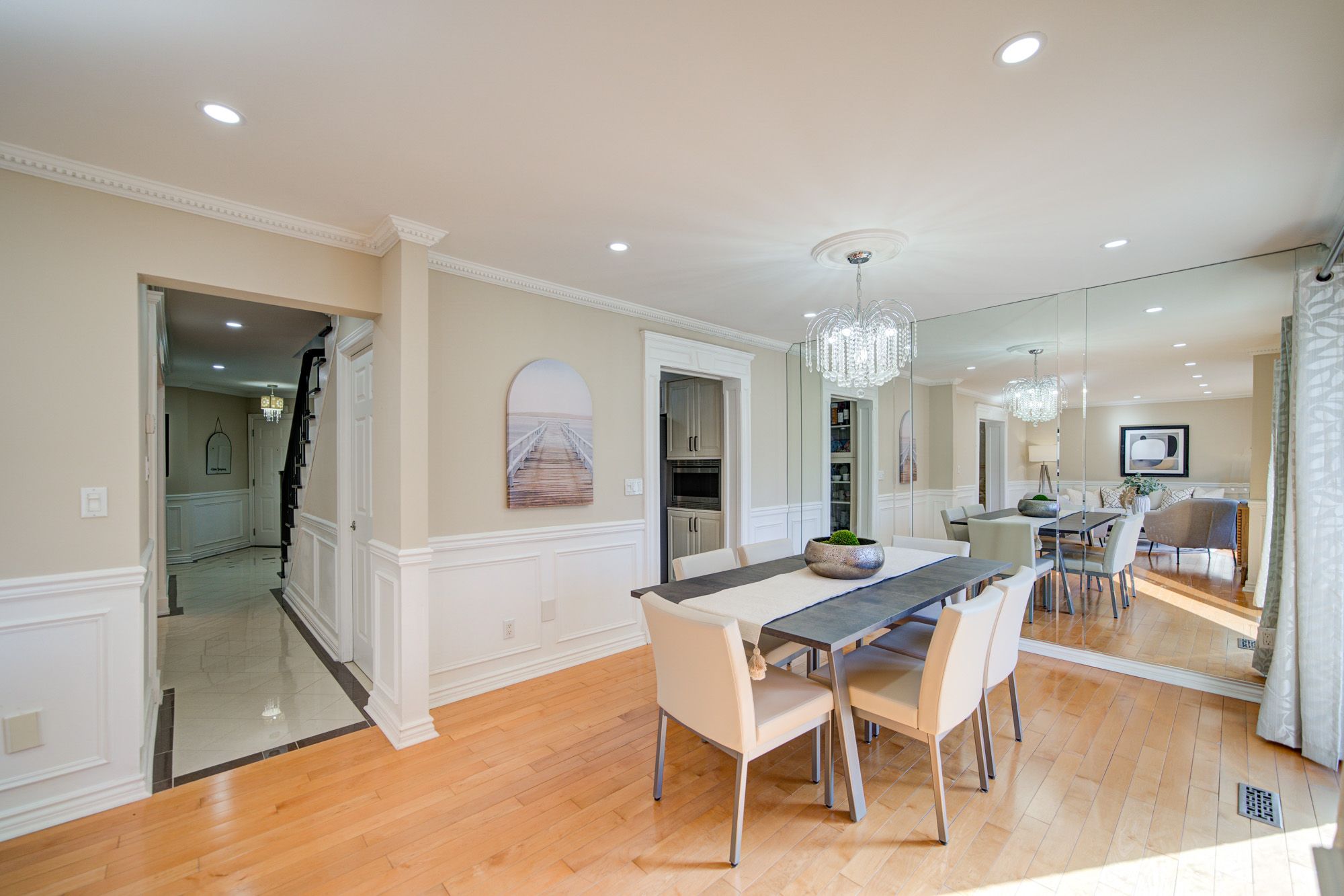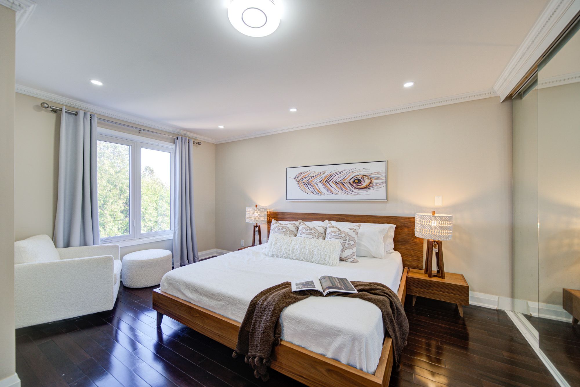 Stunning 4+2 bedroom detached home with a finished basement and separate entrance in the prestigious thornhill community! This beautifully maintained residence features a bright and functional layout, complete with hardwood flooring, pot lights and smooth celling throughout, designed for modern family living. The spacious family room showcases a gas fireplace and large windows, while the open-concept living and dining area walks out to a south-facing backyard, filling the home with abundant natural light. The upgraded kitchen is equipped with stainless steel appliances, quartz countertops, and a breakfast area, perfect for everyday living and entertaining. The main floor is enhanced with elegant wall paneling, adding a sophisticated touch throughout. The primary bedroom features pot lights and a 5-piece ensuite, and all bedrooms are generously sized for comfort. The finished basement with separate entrance offers 2 additional bedrooms, a kitchen, and a 4-piece bathroom, providing excellent potential for rental income or extended family use. Double car garage with an extended driveway, accommodating up to 5 vehicles. Prime location: just 7 minutes to hwy 407, promenade mall, and t&t supermarket, and 10 minutes to langstaff go station. Close to public transit, parks, plazas, and all amenities.