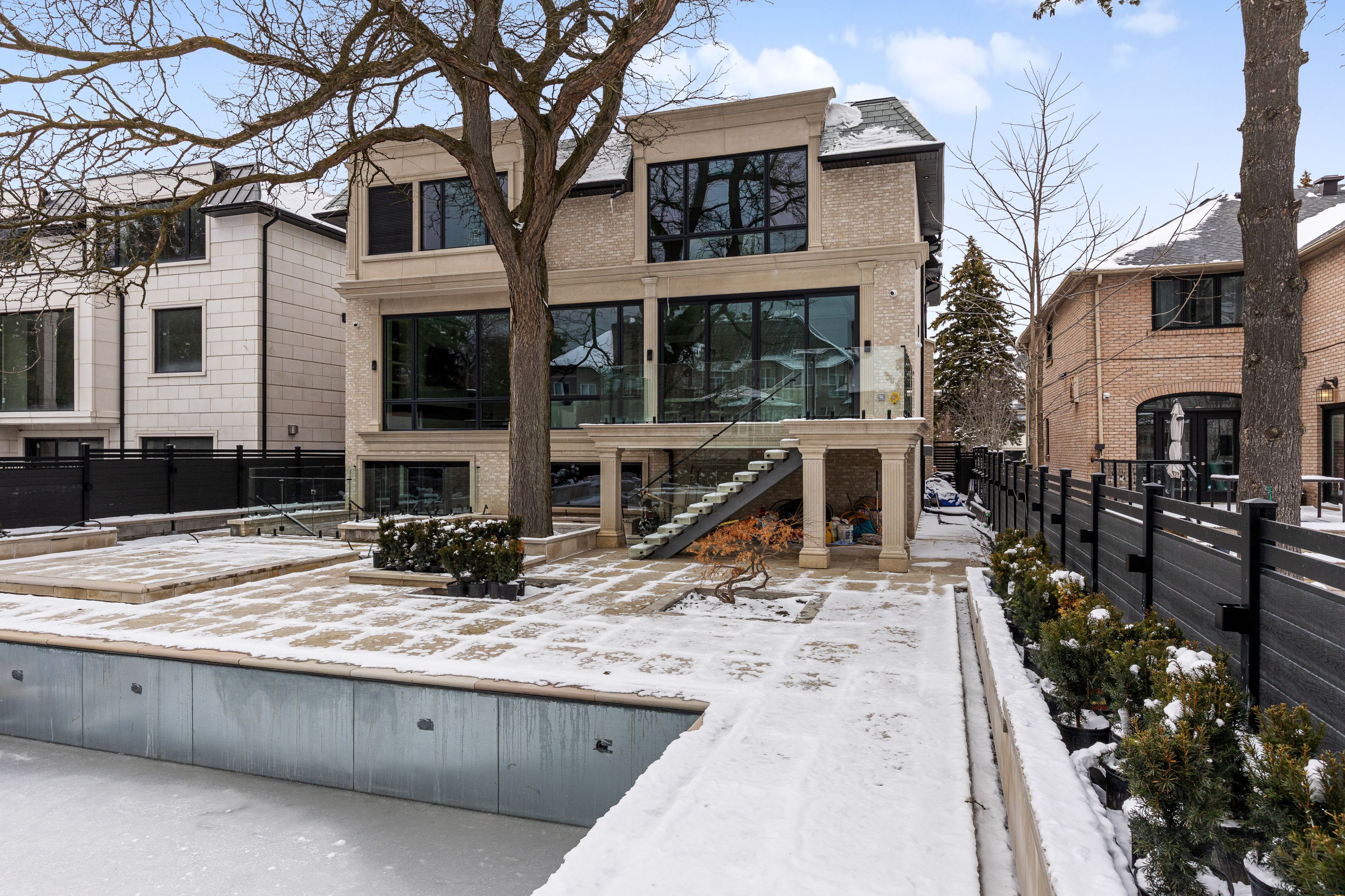 Truly a must see home! Welcome to 149 highland crescent, a true statement of luxury in the heart of the prestigious bridle path. Situated on one of the area's most coveted streets, this brand-new custom residence blends refined design, exceptional craftsmanship, and timeless elegance. Offering approximately 7,500 sq. Ft. Of thoughtfully curated living space, the home makes a striking first impression with its elegant façade, heated driveway, and heated front porch. Inside, exquisite millwork and designer finishes elevate every room, complemented by elegant fireplaces with 14k gold-vein accents. Designed for both entertaining and everyday living, the main level features a spectacular double-island kitchen by luxeme, complete with miele appliances, a wolf cooktop, and a walk-in pantry, seamlessly open to a bright and expansive family room. A stunning library office with 15-foot ceilings and a dramatic second foyer with 23-foot ceilings, grand staircase, and skylight add architectural distinction. Fully integrated with lutron automation, the home offers seamless control of lighting and ambiance throughout. The private backyard is a true retreat, showcasing an oversized saltwater pool, gazebo lounge, and beautifully landscaped grounds. Upstairs, five spacious bedrooms provide ideal family living. The primary suite offers a serene escape with custom millwork and a refined makeup area. A private four-stop elevator ensures effortless access to all levels. The lower level is designed for ultimate lifestyle and entertainment, featuring a recreation area, minibar, glass-enclosed gym, home theatre, and nanny suite. A rare offering, this residence defines elevated living in one of toronto's most exclusive neighbourhoods.