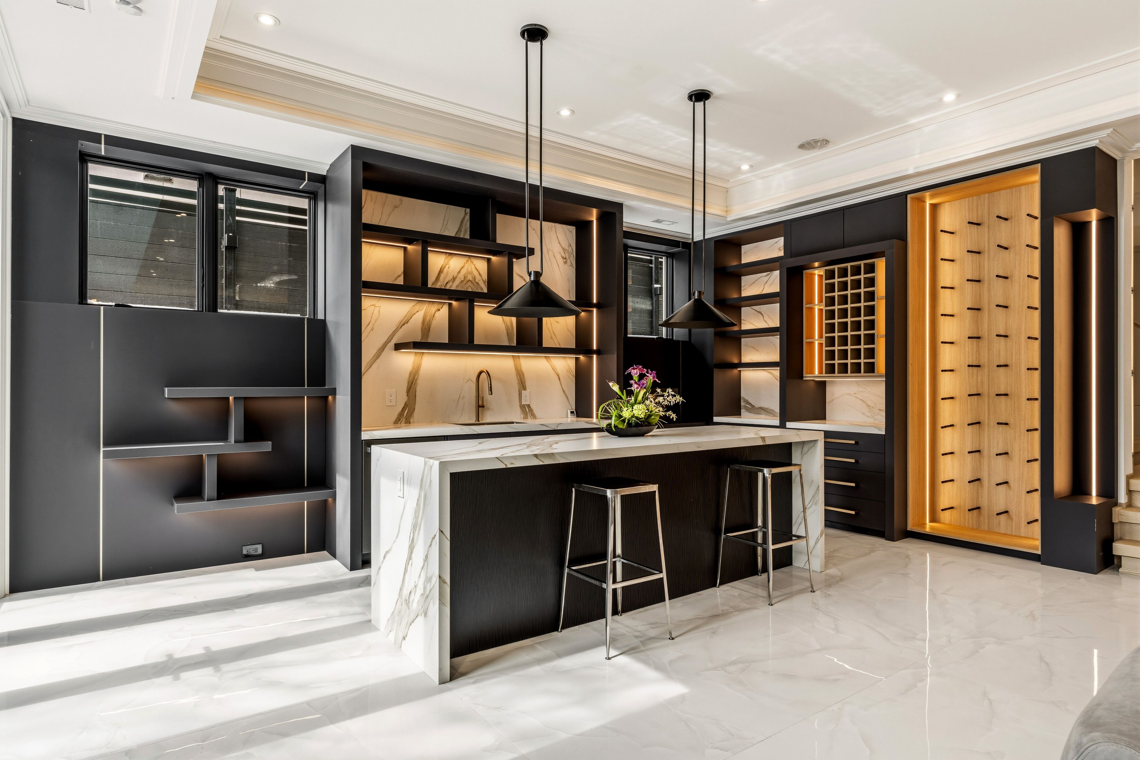 • Gourmet kitchen with high-end Miele appliances and double islands.