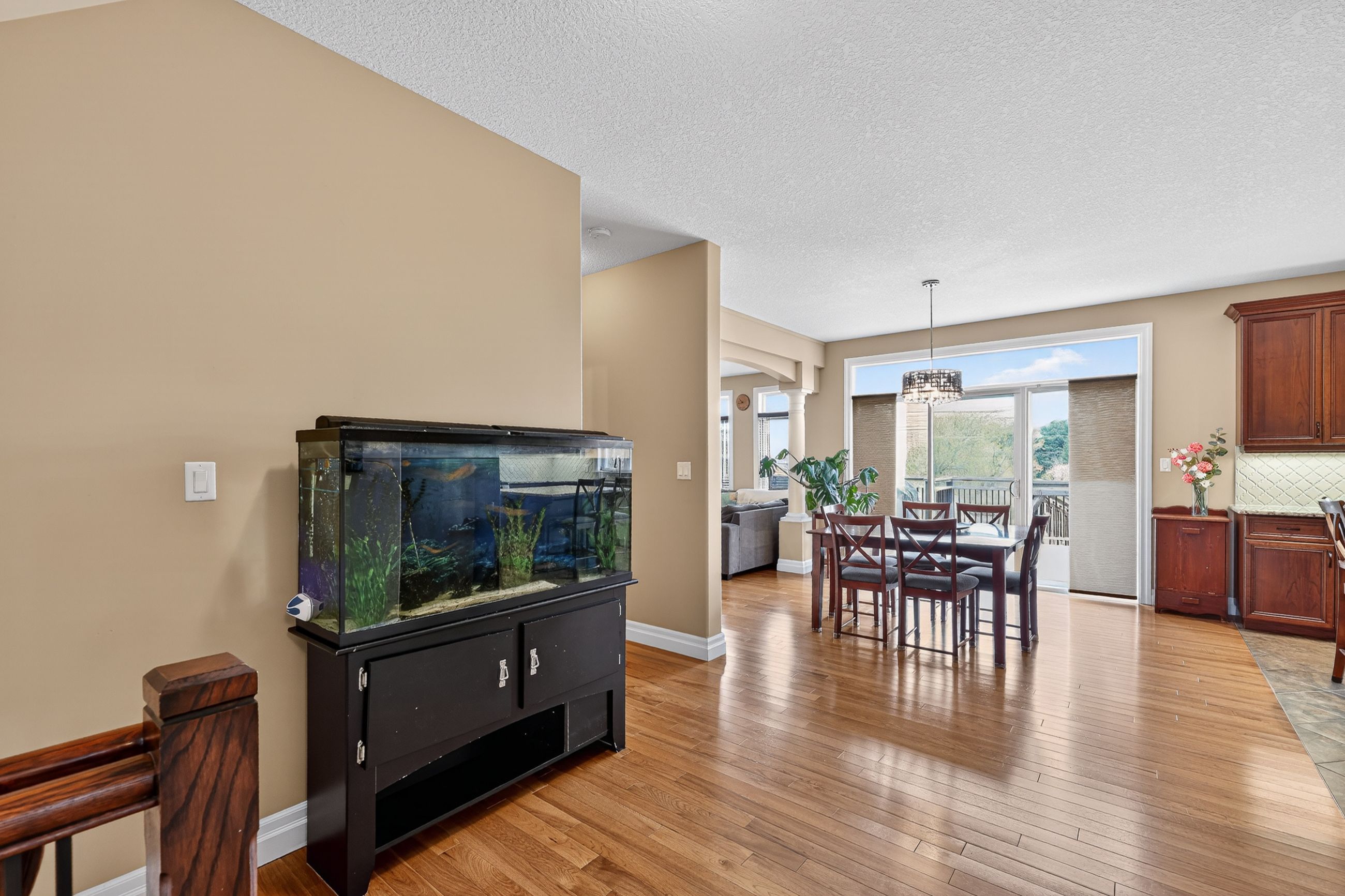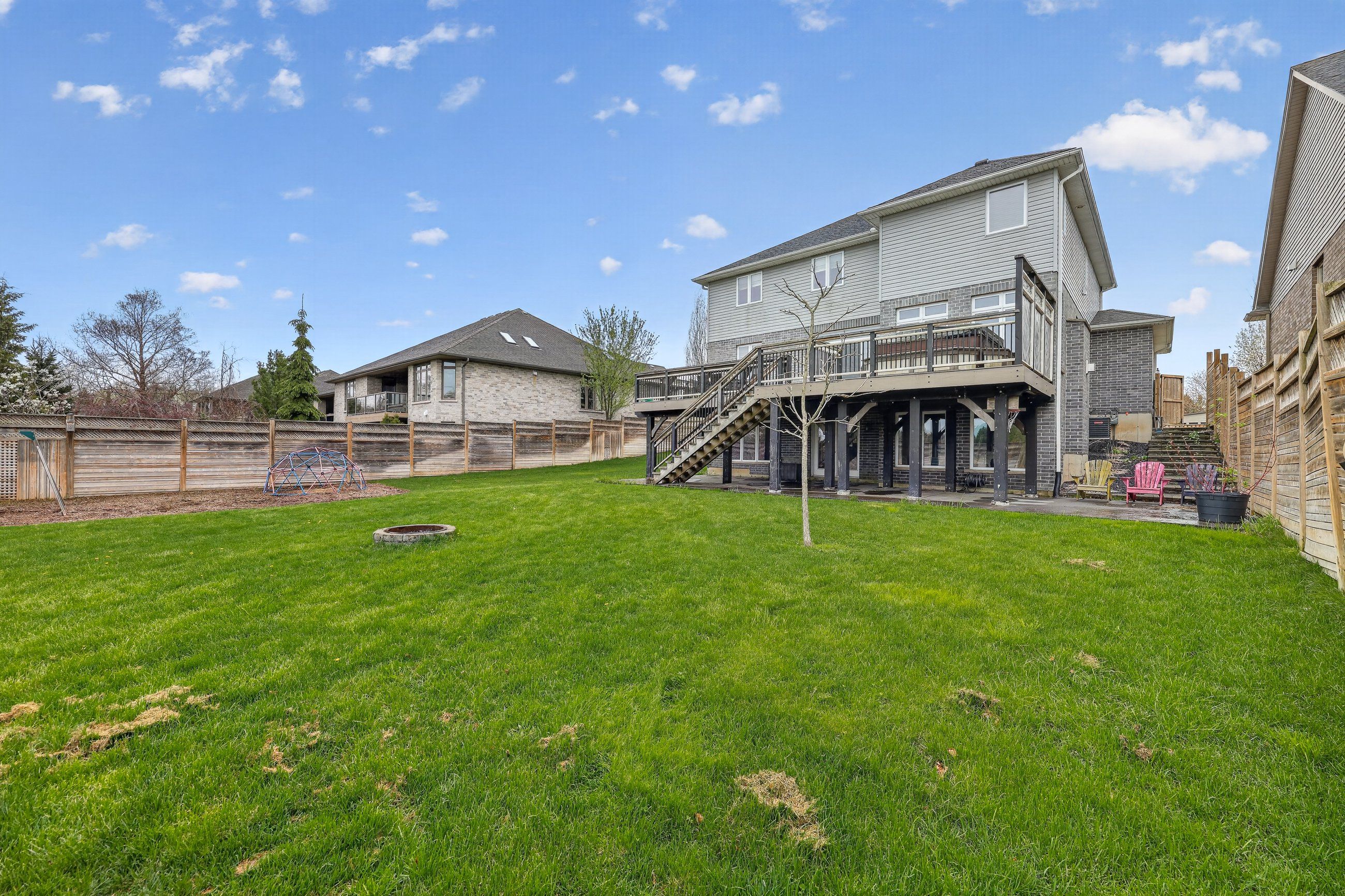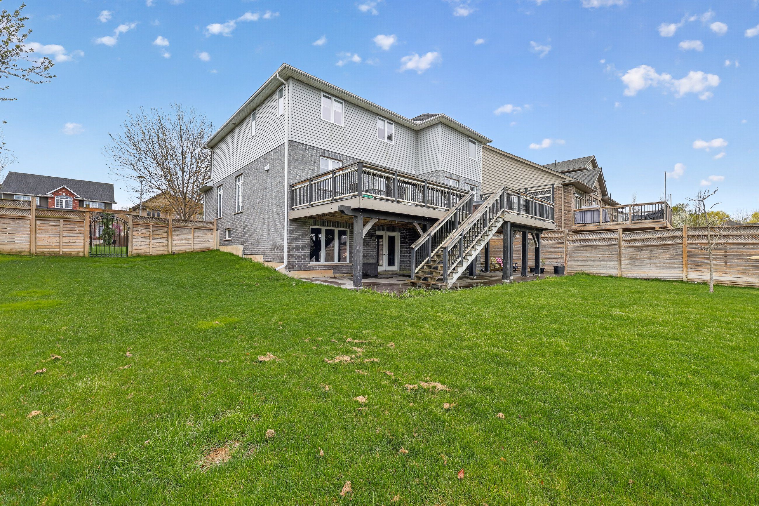 Imagine waking up in woodstock with no rear neighbours, a view toward the trees of pittock conservation area, and the feeling of country living right inside the city. This is the yard people wait for. Oversized. Fully fenced. Peaceful. Private. The kind of backyard where kids can run, dogs can play, gardens can grow, and evenings feel slower in the best possible way. 149 juno crescent offers approximately 3,794 sq ft of total interior living space, plus a finished walkout basement, and every level was designed with real family life in mind. The open-to-above foyer makes a beautiful first impression with high ceilings, warm hardwood, and a grand staircase. The main floor gives you rare flexibility with a front office, separate den, mudroom, 2 piece bath, and a bright living room with gas fireplace. The kitchen feels connected to everything, with rich cabinetry, stone counters, island seating, pantry storage, gas stove, stainless hood fan, and an easy flow into the dining area. From the oversized patio doors, the backyard becomes the view you get to enjoy every day. Step onto the elevated deck for coffee, dinner, quiet mornings, or watching the seasons change over the trees. Upstairs, there are 3 generous bedrooms, second floor laundry, a 4 piece bath, and a spacious primary suite with tray ceiling, walk-in closet, and a 5 piece ensuite with corner tub, double vanity, and tiled glass shower. The finished walkout basement is where this home becomes even more impressive, with a huge rec room, room for movie nights, games, workouts, hobbies, or teenagers, plus a 3 piece bath, bonus room, workshop, cold room, and storage. Walk straight out to the yard and you understand why this property is special. It has the space, the layout, the view, and the feeling buyers keep asking for but rarely find. A double garage, flexible rooms, finished walkout, oversized fenced lot, and a peaceful setting near pittock make this a rare woodstock opportunity.