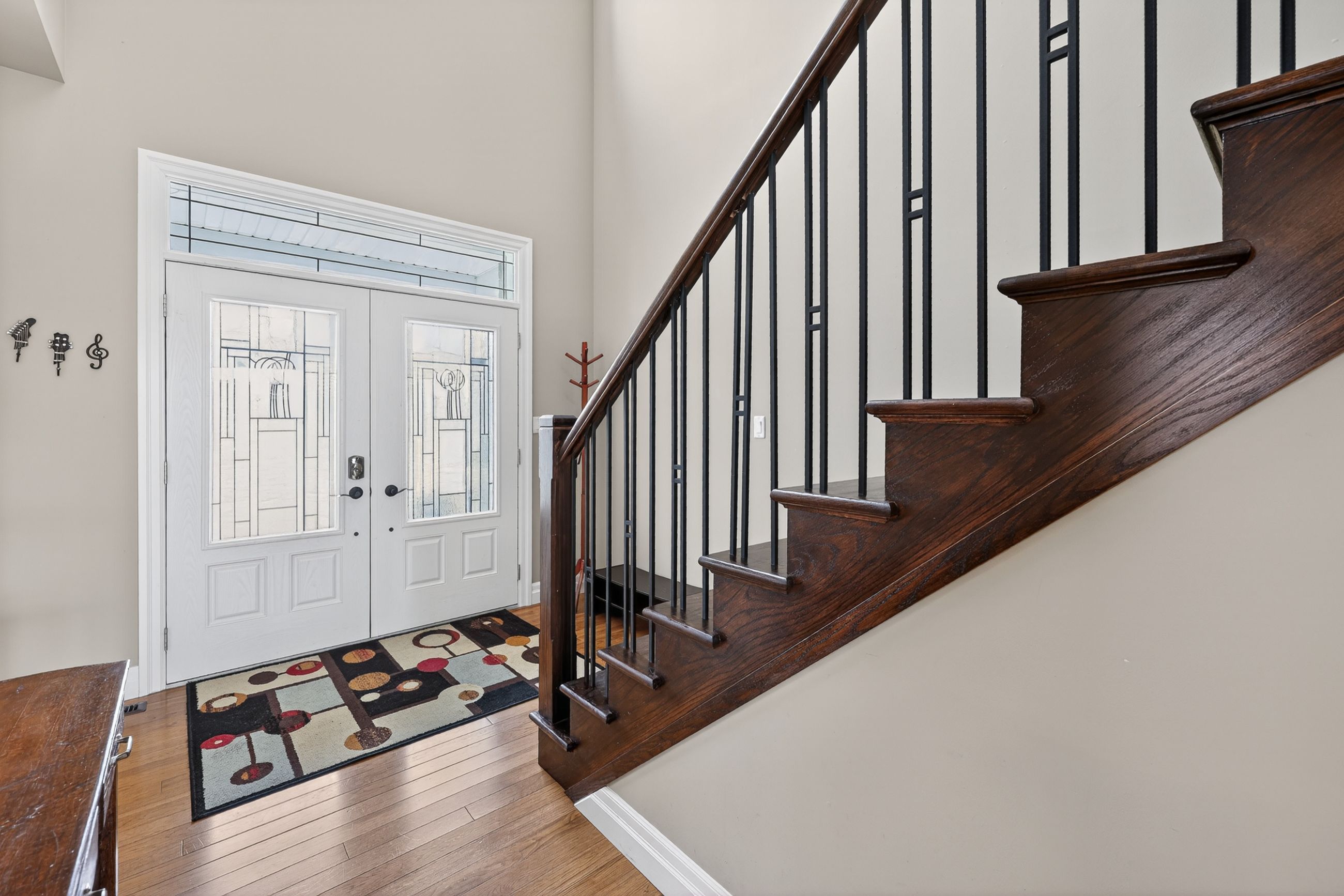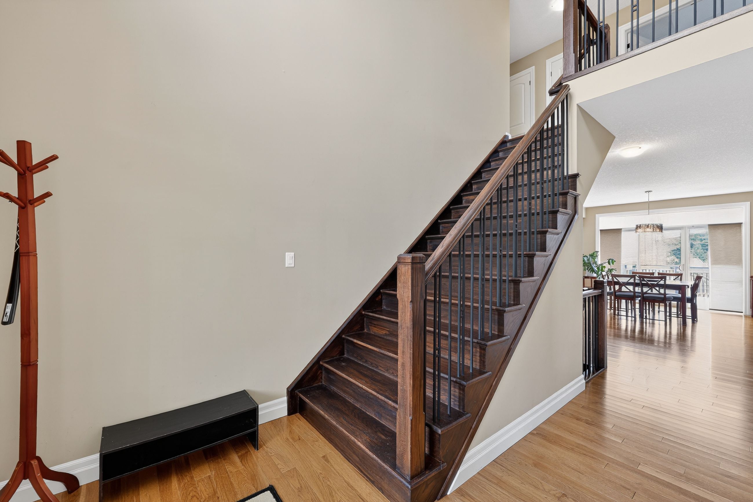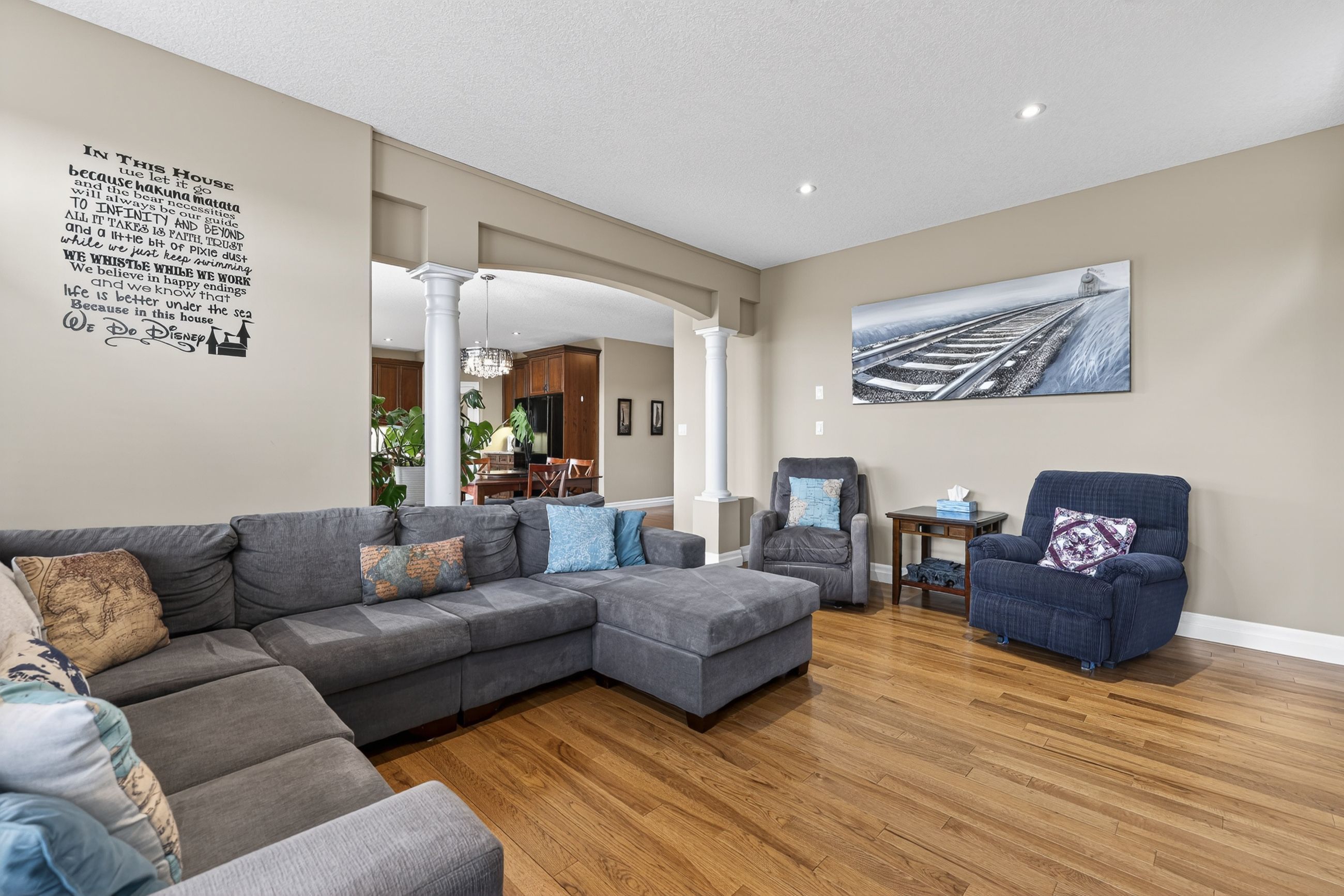 Imagine waking up in woodstock with no rear neighbours, a view toward the trees of pittock conservation area, and the feeling of country living right inside the city. This is the yard people wait for. Oversized. Fully fenced. Peaceful. Private. The kind of backyard where kids can run, dogs can play, gardens can grow, and evenings feel slower in the best possible way. 149 juno crescent offers approximately 3,794 sq ft of total interior living space, plus a finished walkout basement, and every level was designed with real family life in mind. The open-to-above foyer makes a beautiful first impression with high ceilings, warm hardwood, and a grand staircase. The main floor gives you rare flexibility with a front office, separate den, mudroom, 2 piece bath, and a bright living room with gas fireplace. The kitchen feels connected to everything, with rich cabinetry, stone counters, island seating, pantry storage, gas stove, stainless hood fan, and an easy flow into the dining area. From the oversized patio doors, the backyard becomes the view you get to enjoy every day. Step onto the elevated deck for coffee, dinner, quiet mornings, or watching the seasons change over the trees. Upstairs, there are 3 generous bedrooms, second floor laundry, a 4 piece bath, and a spacious primary suite with tray ceiling, walk-in closet, and a 5 piece ensuite with corner tub, double vanity, and tiled glass shower. The finished walkout basement is where this home becomes even more impressive, with a huge rec room, room for movie nights, games, workouts, hobbies, or teenagers, plus a 3 piece bath, bonus room, workshop, cold room, and storage. Walk straight out to the yard and you understand why this property is special. It has the space, the layout, the view, and the feeling buyers keep asking for but rarely find. A double garage, flexible rooms, finished walkout, oversized fenced lot, and a peaceful setting near pittock make this a rare woodstock opportunity.
