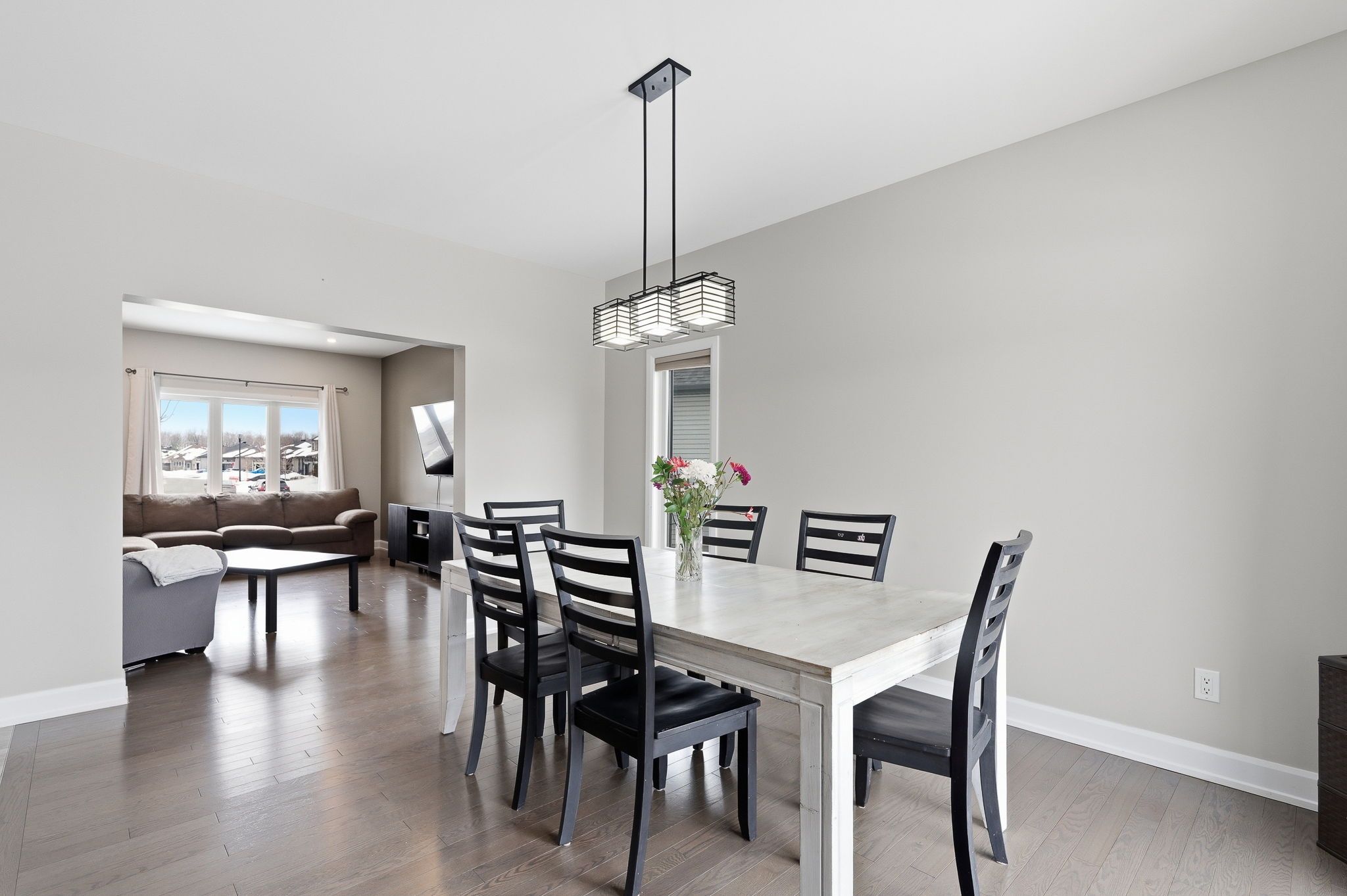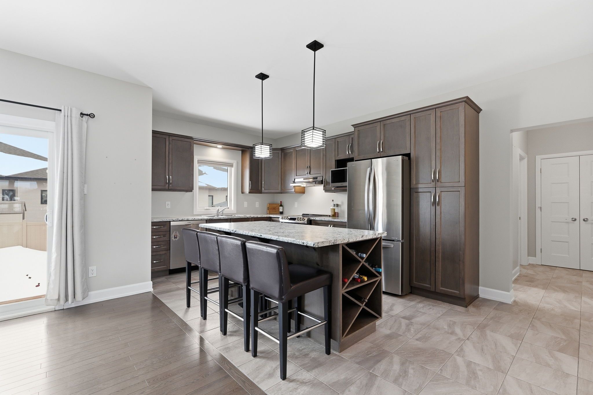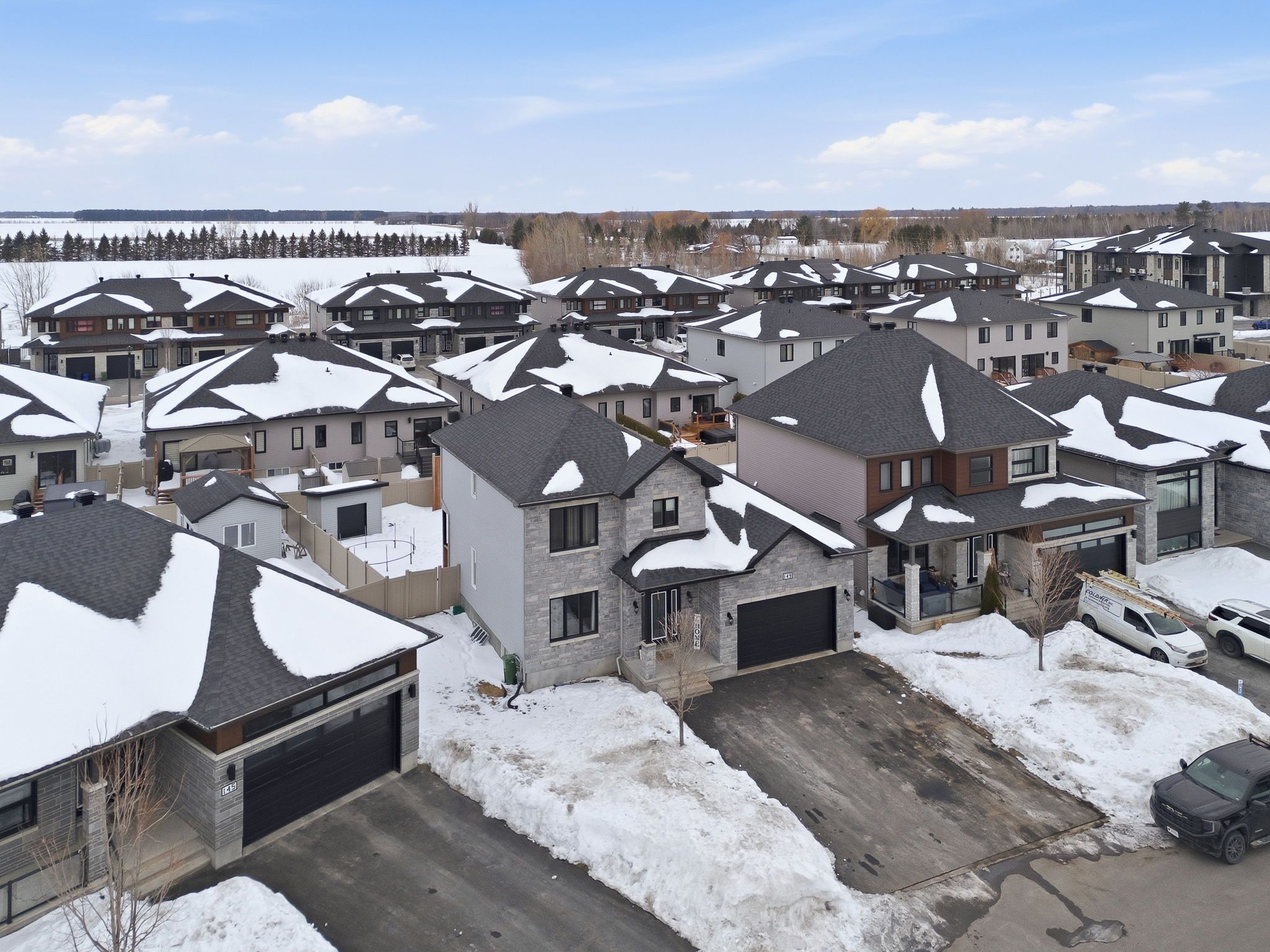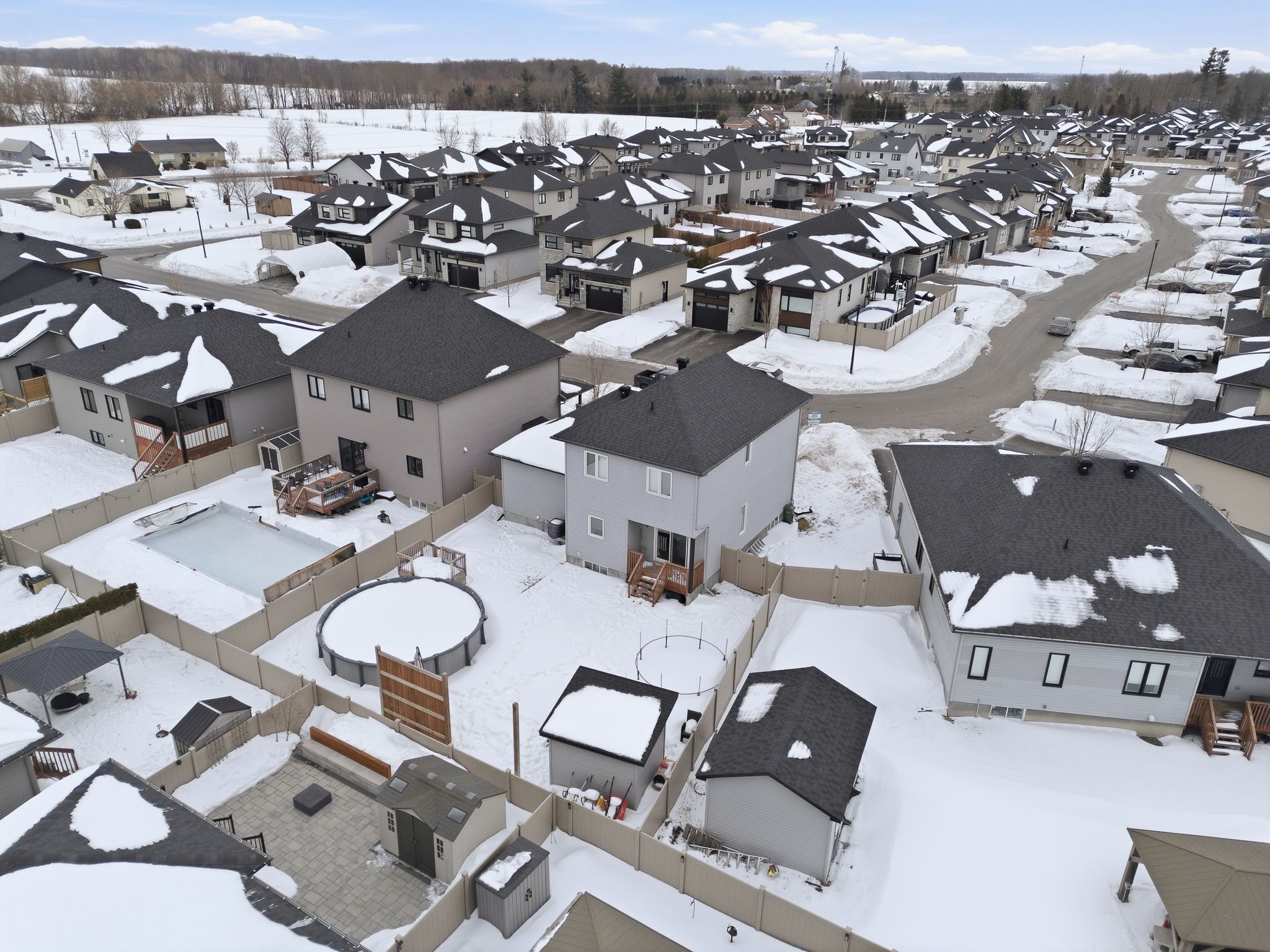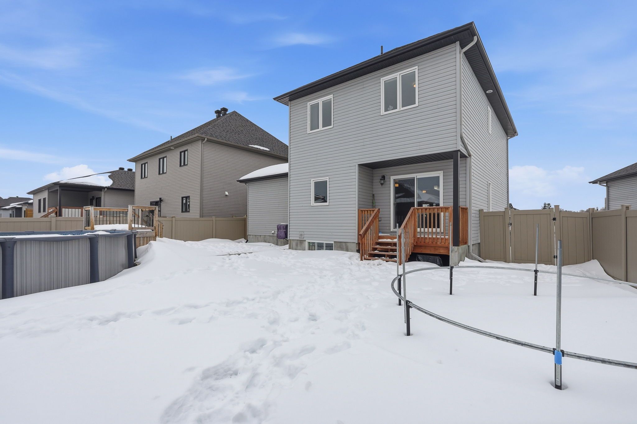 Open house sun mar 1st, 2-4pm. Welcome to luxury living in one of embrun's most sought-after, family-oriented communities - moments from parks, top-rated schools, scenic hiking trails, and endless recreation. This stunning residence blends timeless elegance with modern sophistication, offering a lifestyle defined by comfort and luxury. From the moment you step inside, you're greeted by an expansive open-concept design bathed in natural light. The living room creates an inviting yet elevated atmosphere, with a bright window filling the space in natural light. The lovely dining area, framed by patio doors, seamlessly connects indoor and outdoor living - perfect for hosting unforgettable gatherings. At the heart of the home lies a kitchen showcasing sleek appliances, abundant cabinetry, and a convenient sit-at island, this culinary space is both functional and beautiful. The main level is thoughtfully designed with a stylish powder room, convenient laundry, and direct access to the double-car garage. Upstairs, you'll find three beautifully appointed bedrooms and two bathrooms. The primary suite is complete with a spacious walk-in closet and an ensuite designed for relaxation. Step outside to your own private backyard retreat - fully fenced and perfect for enjoyment. Featuring a sparkling pool, storage shed, and abundant green space, this outdoor oasis is the ultimate setting for summer entertaining and peaceful evenings under the stars. An exceptional opportunity to own a truly dreamy home in the heart of embrun.