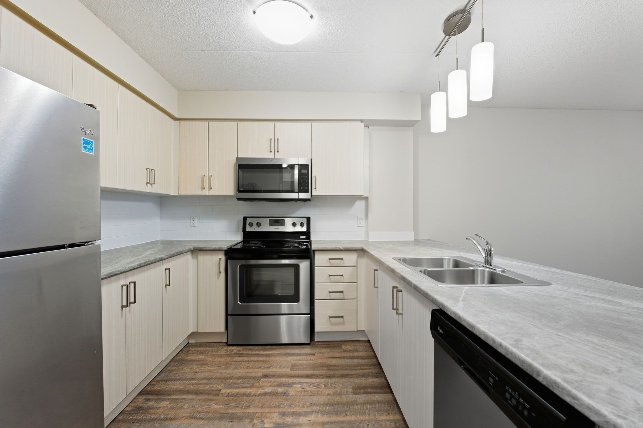 • Sleek stainless steel appliances for a modern cooking experience.