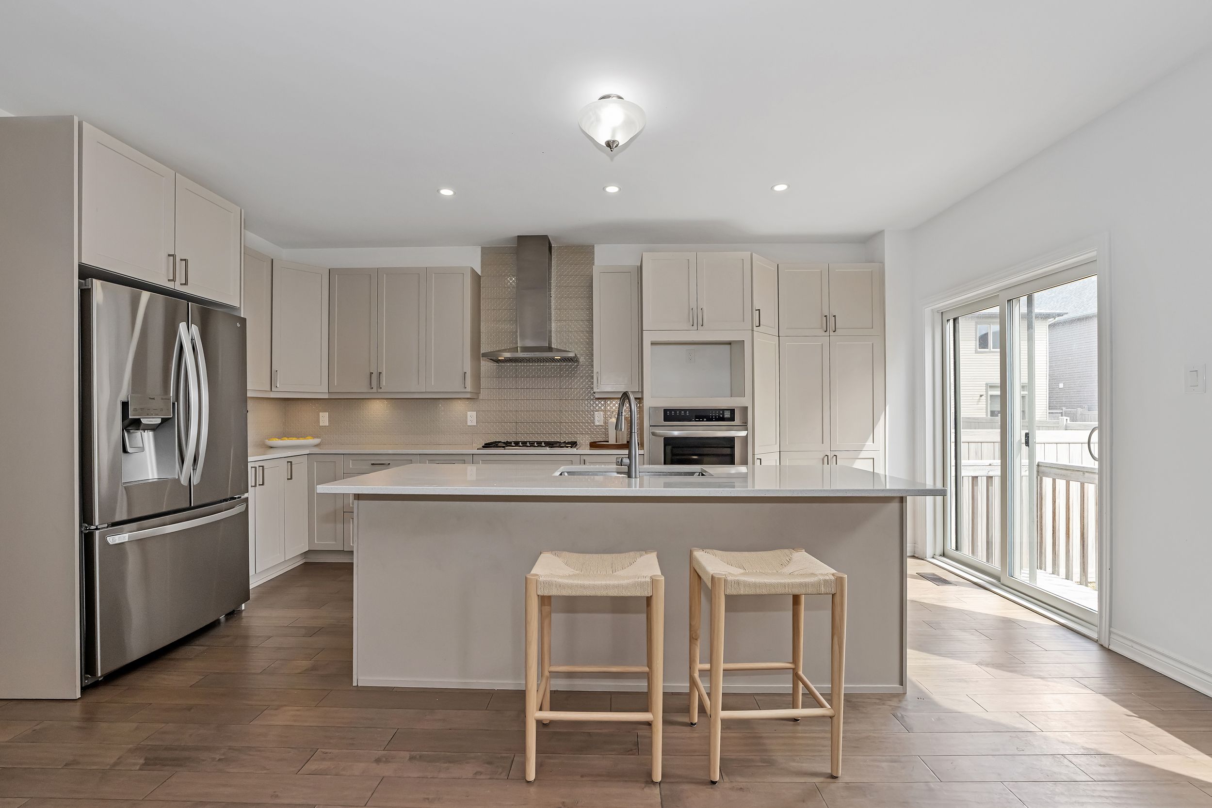 Welcome to 149 minikan street, a beautiful 4-bedroom, 5-bathroom detached home in the highly sought-after community of findlay creek. Built in 2021, this home offers over 2,300 sq. Ft. Of above-grade living space with a modern open-concept layout and stylish finishes throughout. The main level features hardwood flooring, a spacious living and dining area with patio doors to the backyard, and a bright family room complete with a natural gas fireplace. The chef-inspired kitchen is designed with a built-in range and oven, stainless steel appliances, an oversized island with a breakfast bar, and plenty of storage. Upstairs, each bedroom enjoys its own connected bathroom, including the primary suite with a generous layout, walk-in closet, and private ensuite. The convenience of second-floor laundry adds to the thoughtful design. The fully finished lower level provides a large recreation room, an additional bathroom, and an oversized storage room, perfect for families needing extra space. With an attached 2-car garage offering inside entry and a private double driveway, there is parking for up to six vehicles. Located close to schools, shopping, parks, and transit, this home combines comfort and convenience in one of ottawas most popular neighbourhoods.