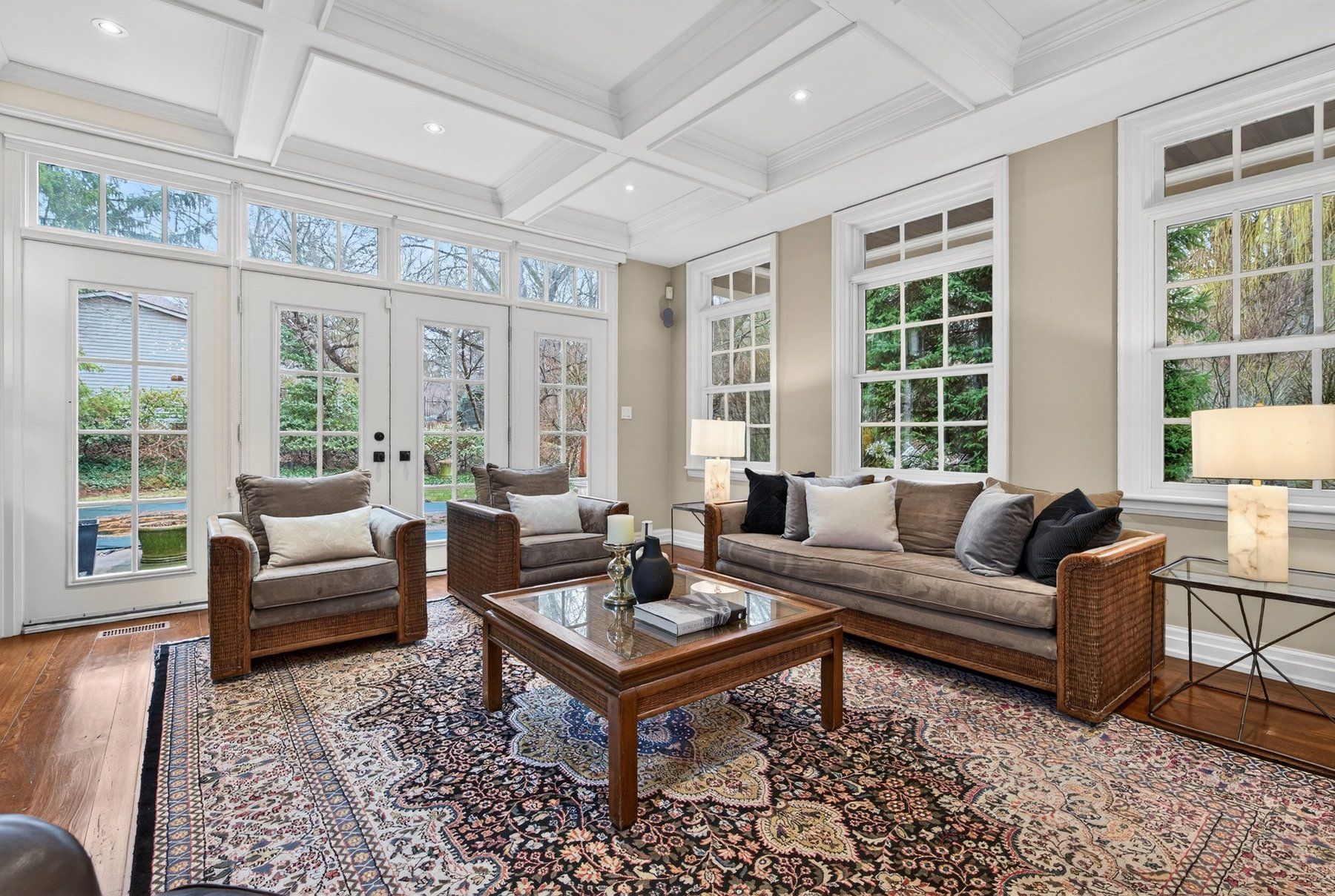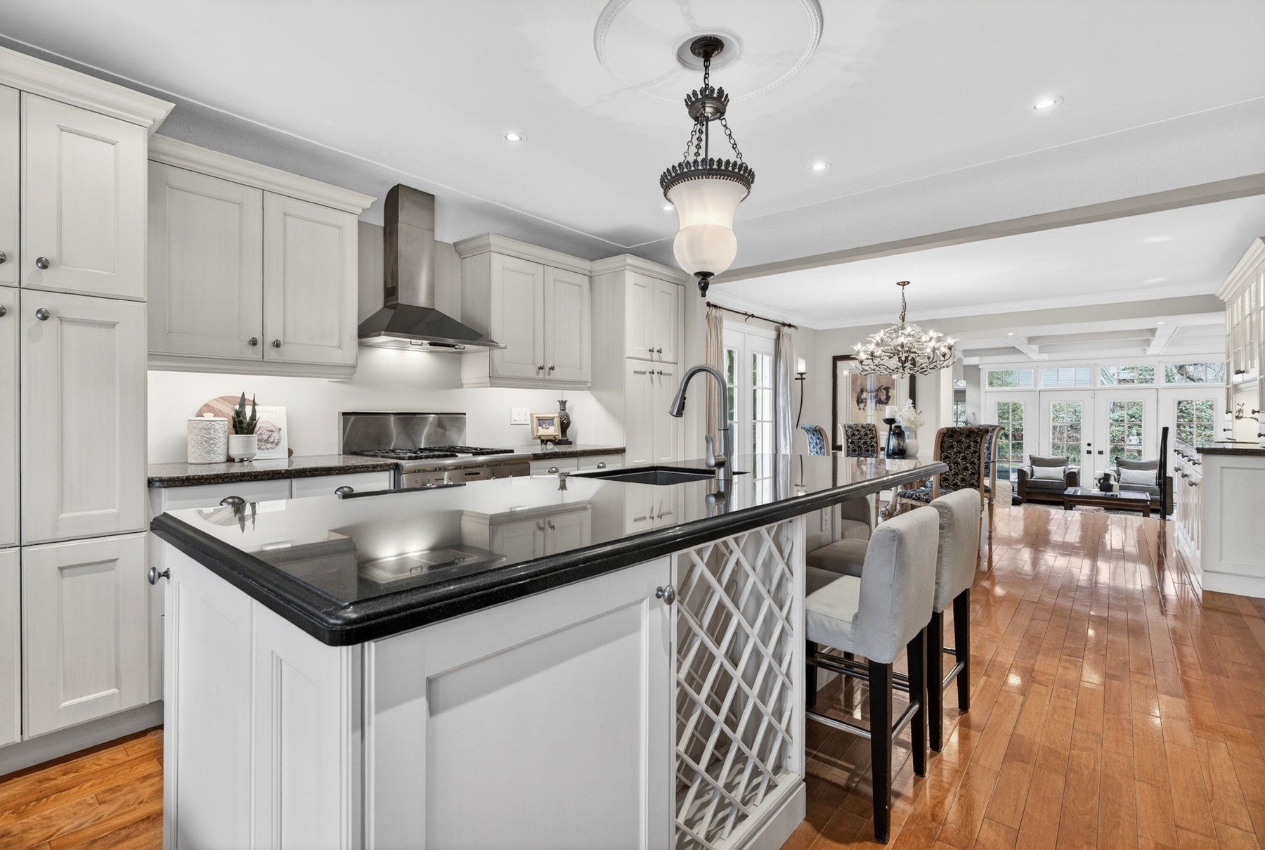 • Spacious interior with a custom kitchen and bright living room.