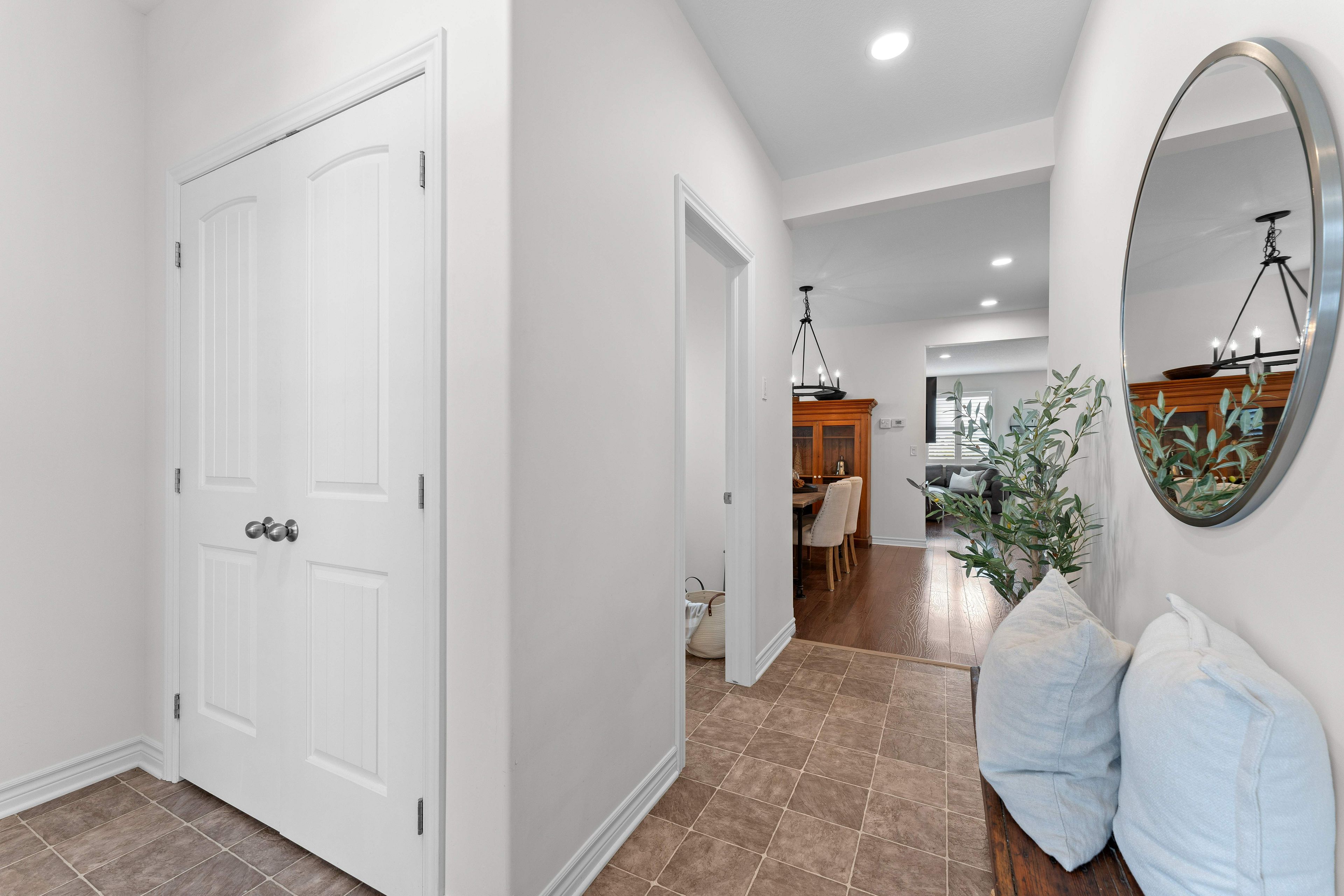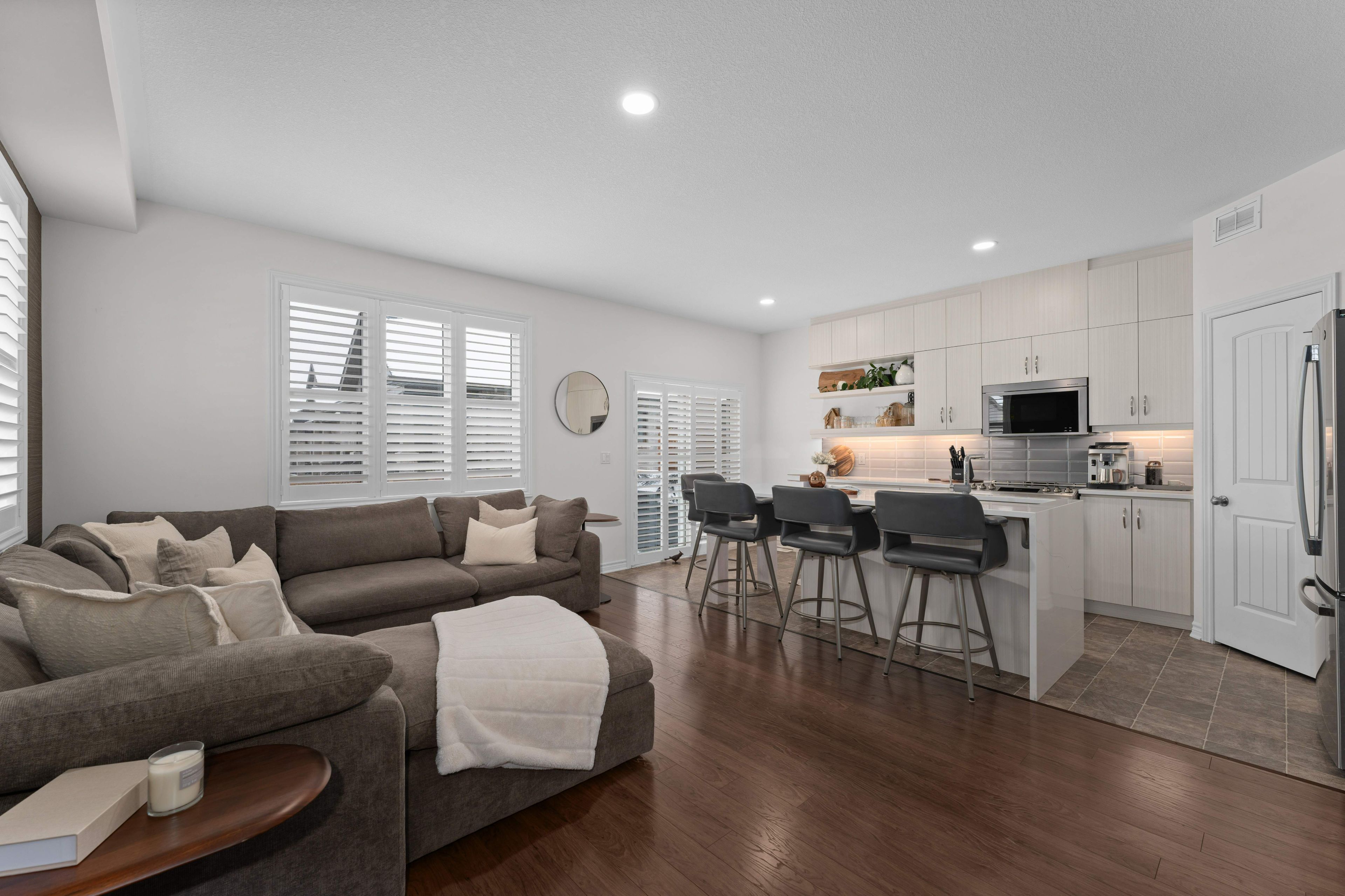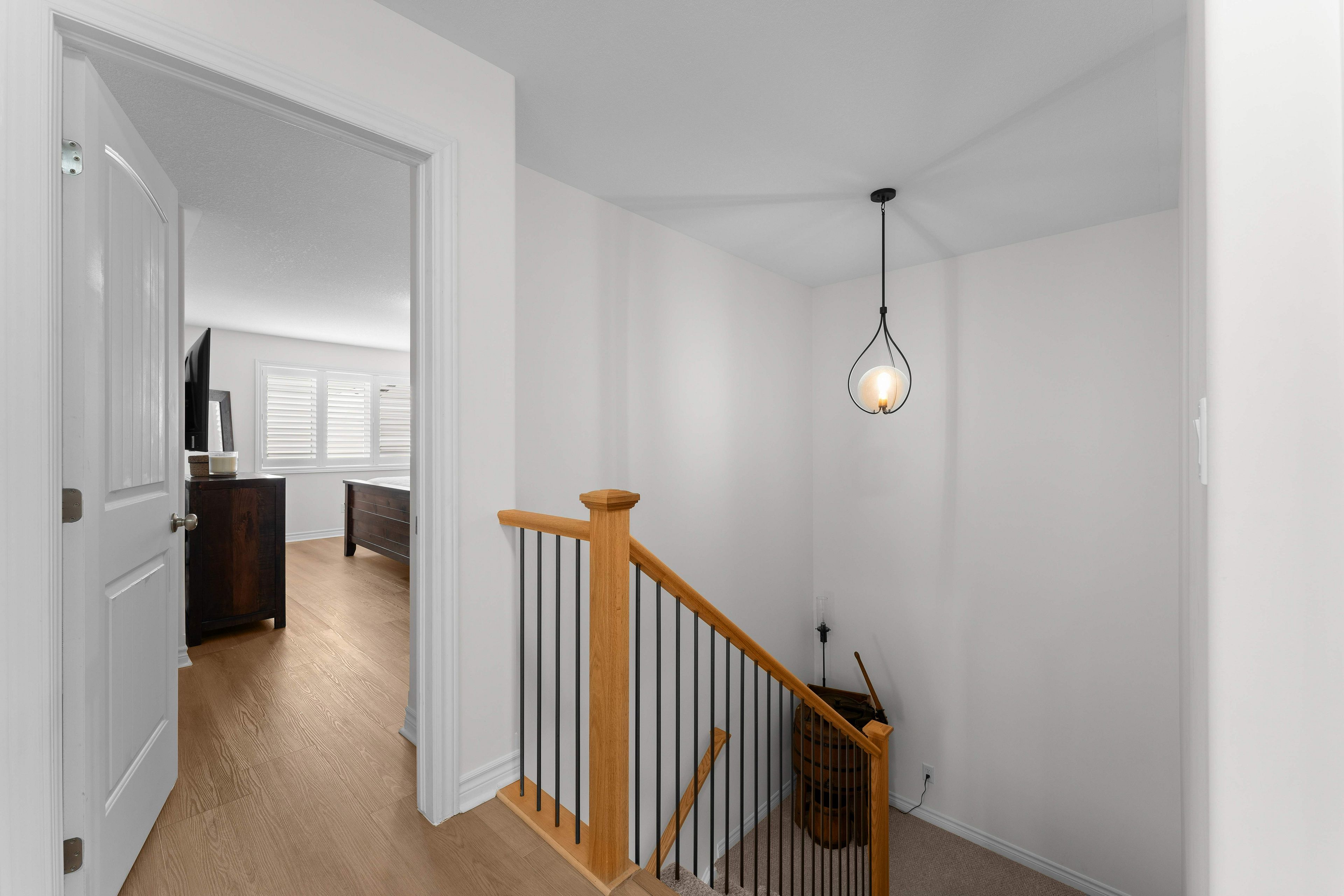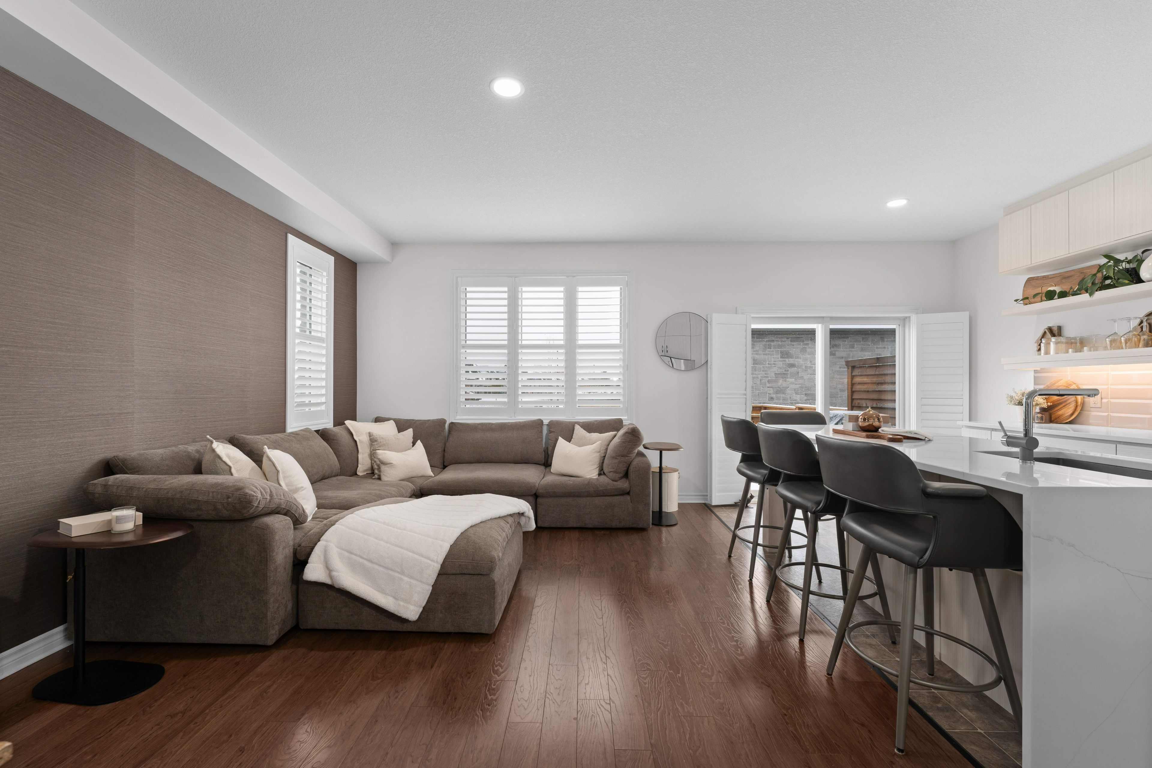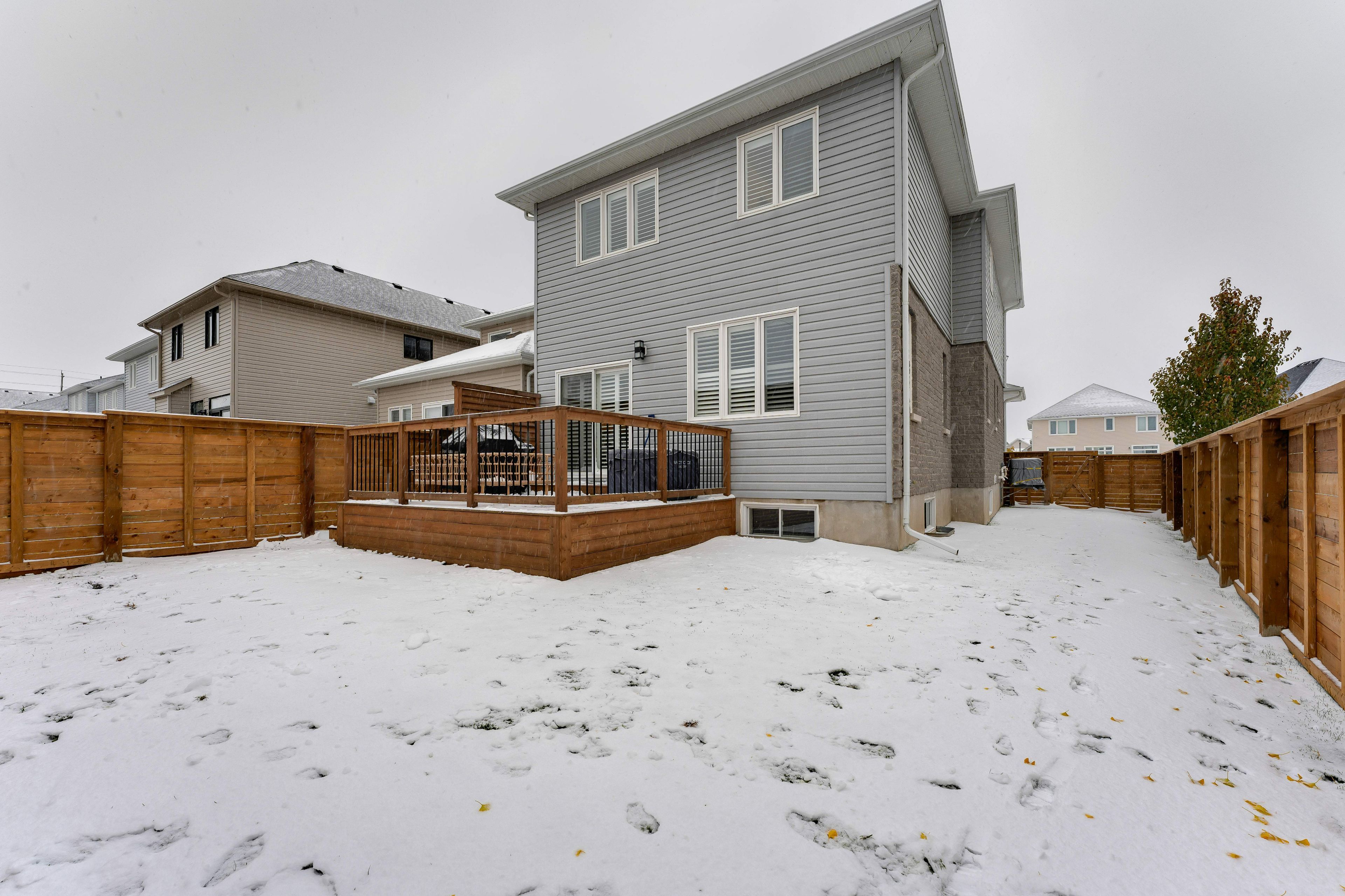 Tucked away on a quiet stretch of one of kingston's most desirable east end streets, this stunning 7-year-old detached two-storey home perfectly blends modern upgrades, elegant finishes, and a thoughtfully designed layout. Step inside and discover a warm, inviting main floor that balances open-concept living with defined spaces. The formal dining area offers the perfect setting for family dinners, while the bright living room-featuring a striking modern grass cloth feature wall-flows seamlessly into the chef-inspired kitchen. Here you'll find ceiling-height cabinetry, a corner pantry, an oversized quartz island with a waterfall edge, and premium stainless steel appliances-all complemented by california shutters throughout. Upstairs, retreat to a luxurious primary suite complete with a spacious walk-in closet and spa-like ensuite featuring a standalone soaker tub, tiled walk-in shower, and double sinks. Two additional large bedrooms and the convenience of second-floor laundry make family living easy. The partially finished lower level offers even more potential, showcasing shiplap feature walls, a bathroom rough-in, and generous storage. Outside, the newly fenced corner lot provides privacy and space to entertain on the brand-new deck. A double-wide driveway and new garage door enhance the home's fantastic curb appeal. Located close to schools, parks, shopping, restaurants, and with quick access to downtown and highway 401, this home offers the ideal combination of lifestyle, location, and luxury. Don't miss your chance to call this beautiful east end property your own.
