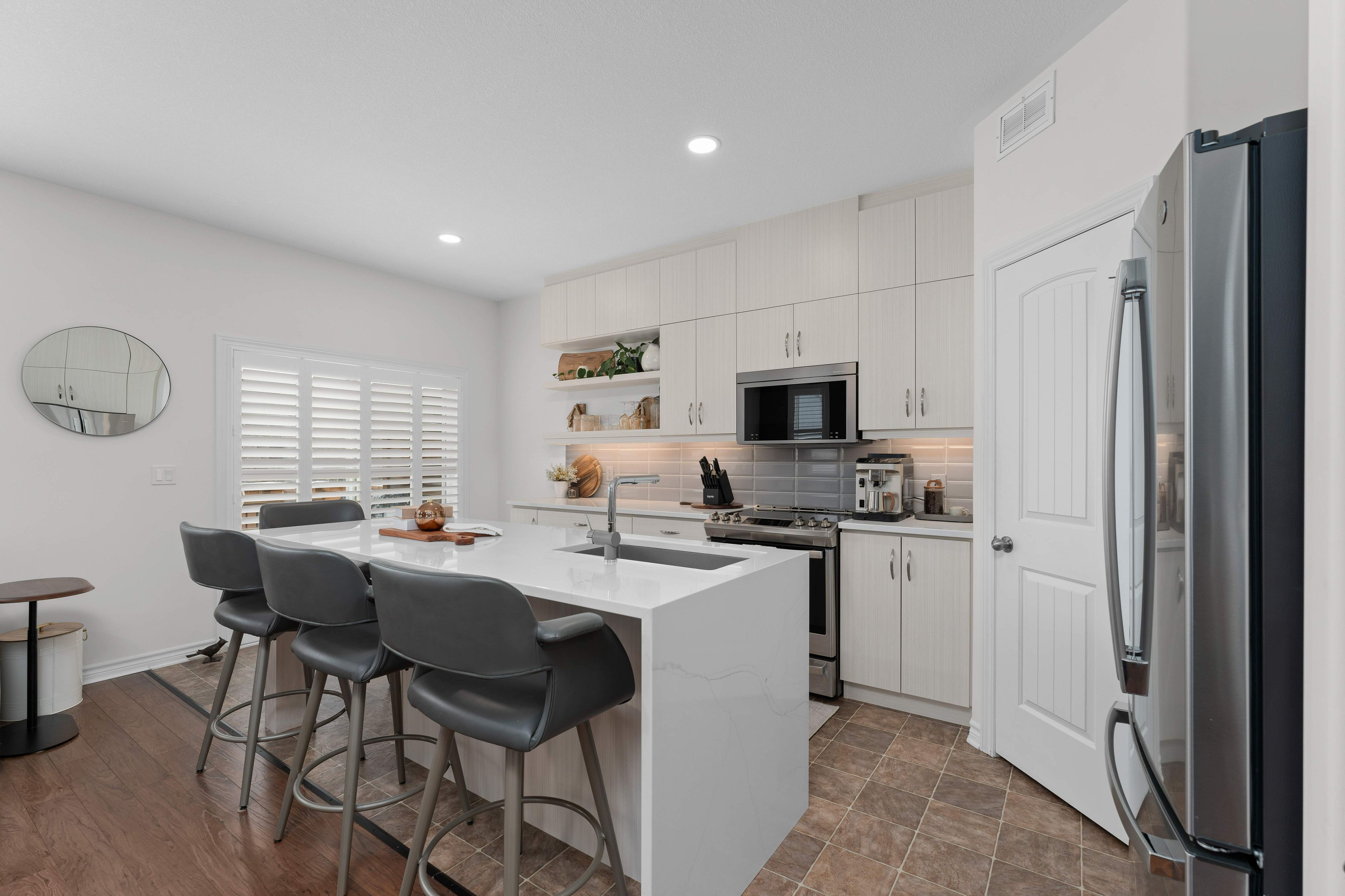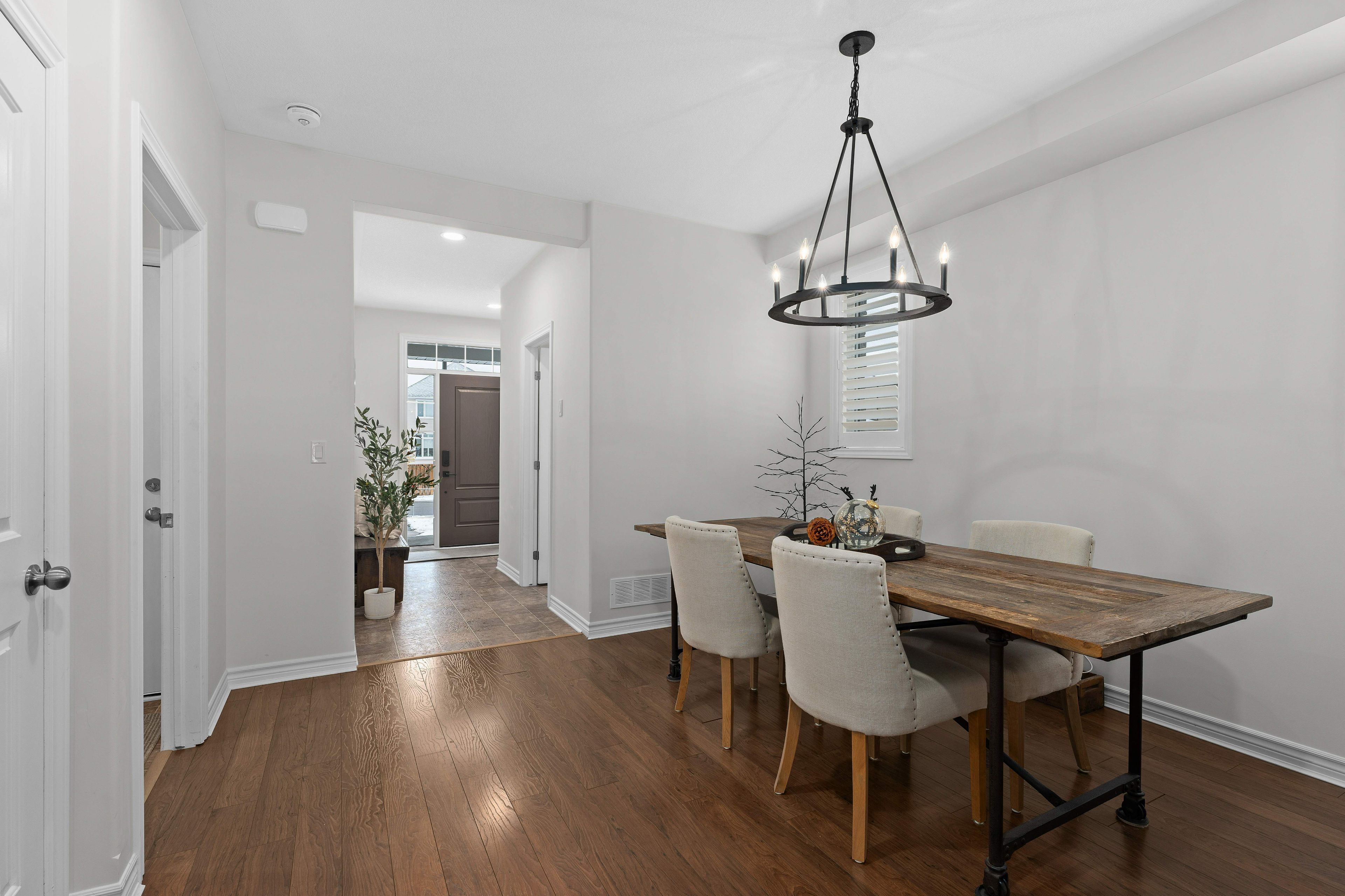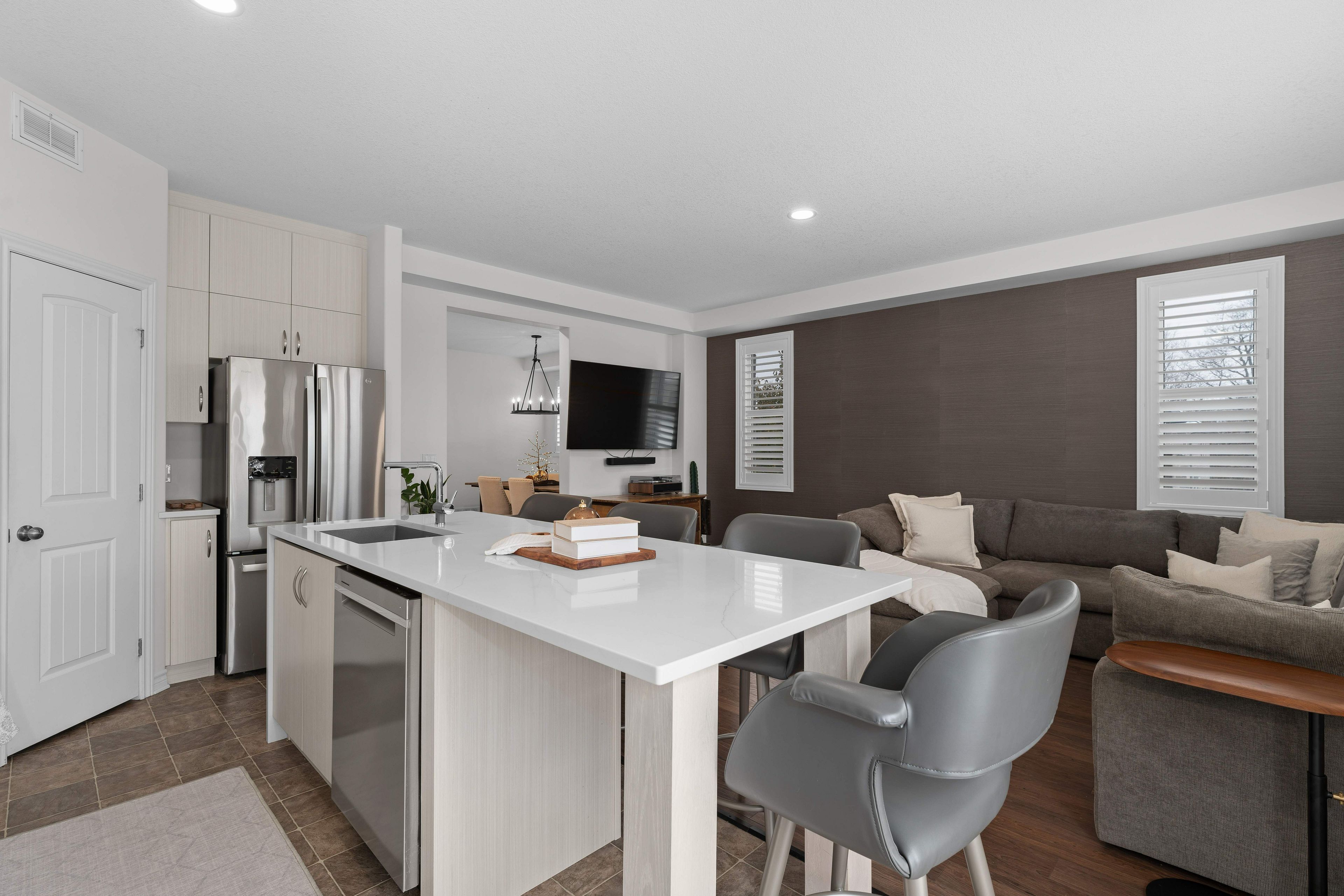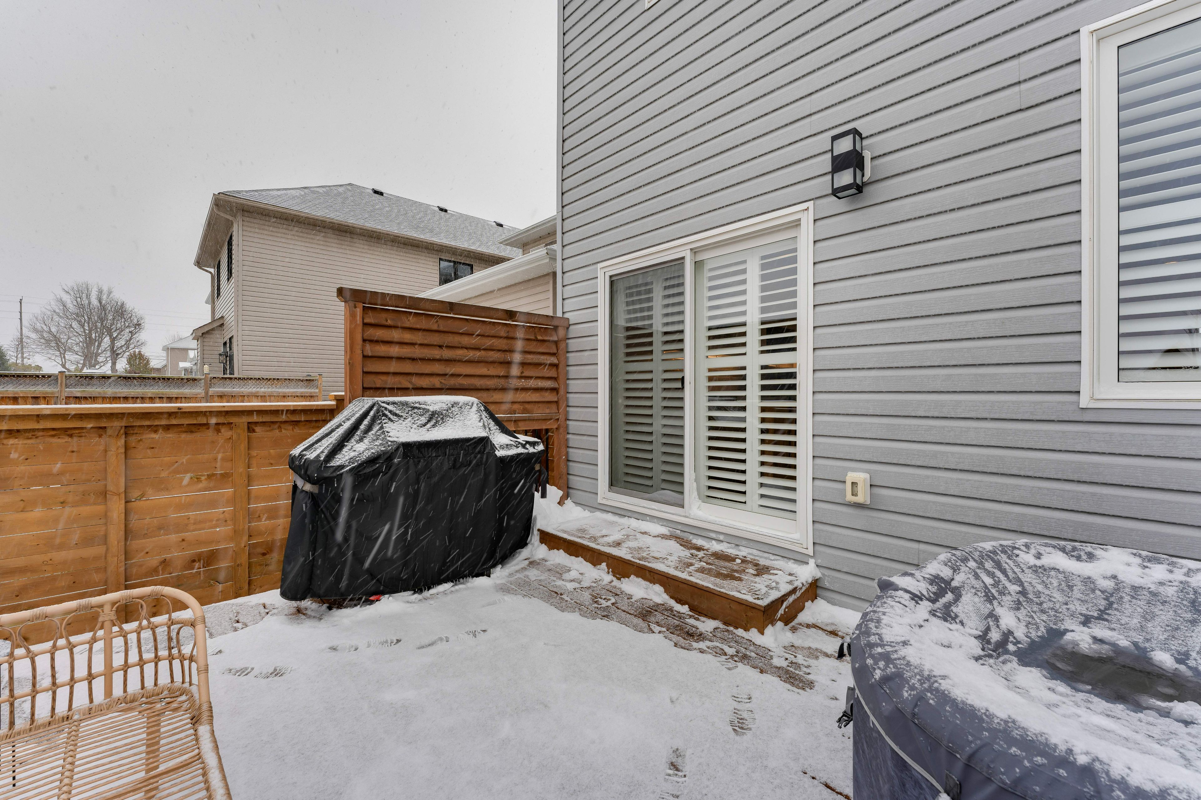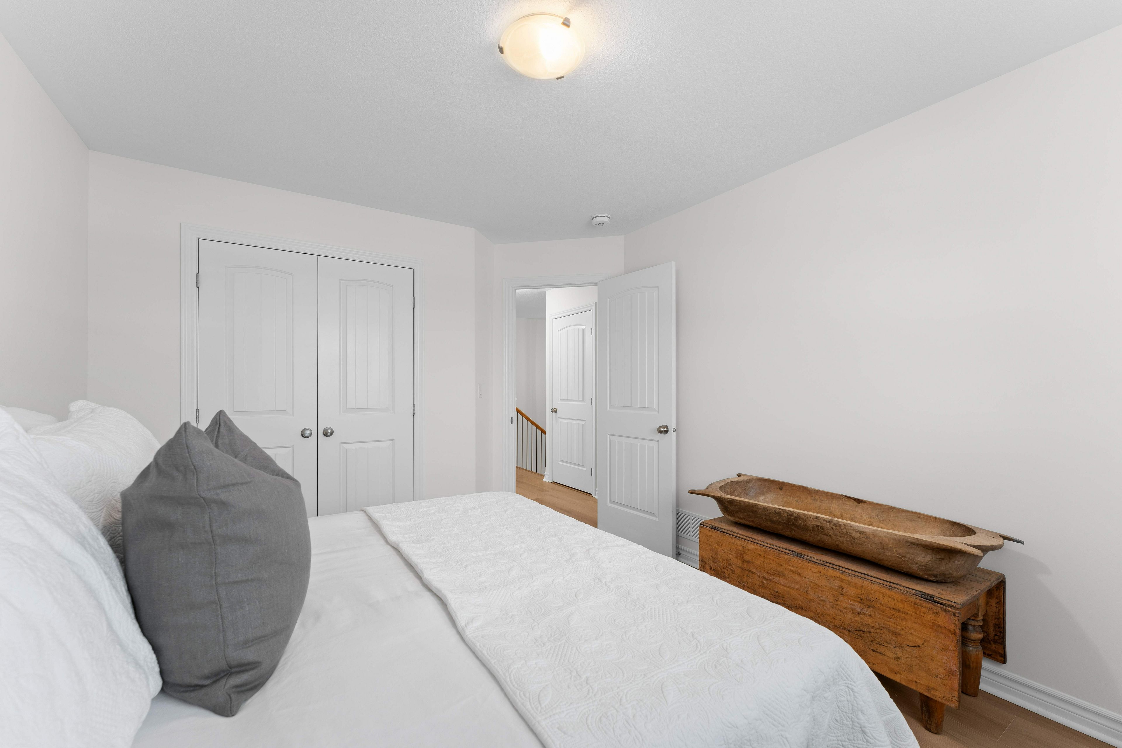 Tucked away on a quiet stretch of one of kingston's most desirable east end streets, this stunning 7-year-old detached two-storey home perfectly blends modern upgrades, elegant finishes, and a thoughtfully designed layout. Step inside and discover a warm, inviting main floor that balances open-concept living with defined spaces. The formal dining area offers the perfect setting for family dinners, while the bright living room-featuring a striking modern grass cloth feature wall-flows seamlessly into the chef-inspired kitchen. Here you'll find ceiling-height cabinetry, a corner pantry, an oversized quartz island with a waterfall edge, and premium stainless steel appliances-all complemented by california shutters throughout. Upstairs, retreat to a luxurious primary suite complete with a spacious walk-in closet and spa-like ensuite featuring a standalone soaker tub, tiled walk-in shower, and double sinks. Two additional large bedrooms and the convenience of second-floor laundry make family living easy. The partially finished lower level offers even more potential, showcasing shiplap feature walls, a bathroom rough-in, and generous storage. Outside, the newly fenced corner lot provides privacy and space to entertain on the brand-new deck. A double-wide driveway and new garage door enhance the home's fantastic curb appeal. Located close to schools, parks, shopping, restaurants, and with quick access to downtown and highway 401, this home offers the ideal combination of lifestyle, location, and luxury. Don't miss your chance to call this beautiful east end property your own.