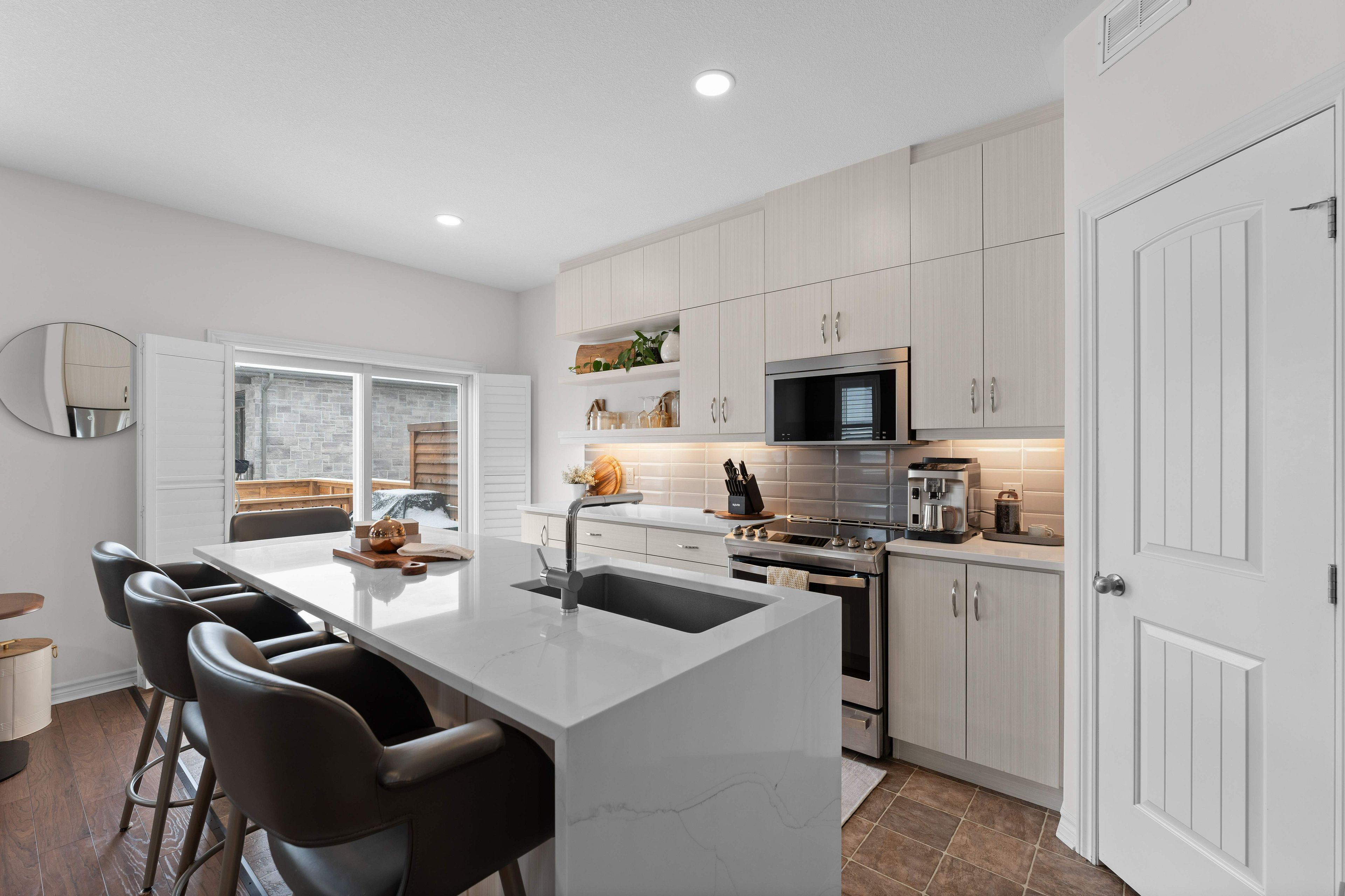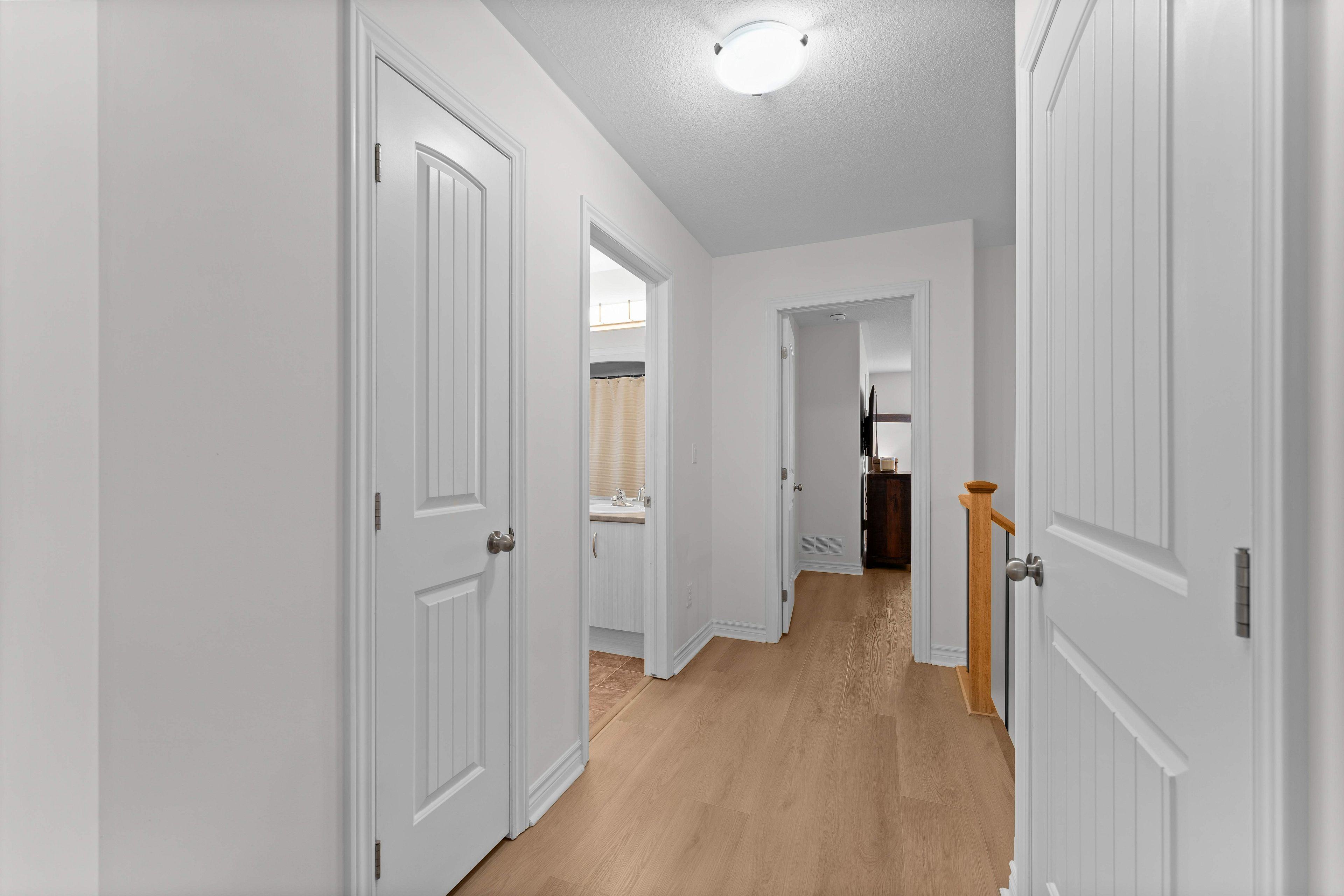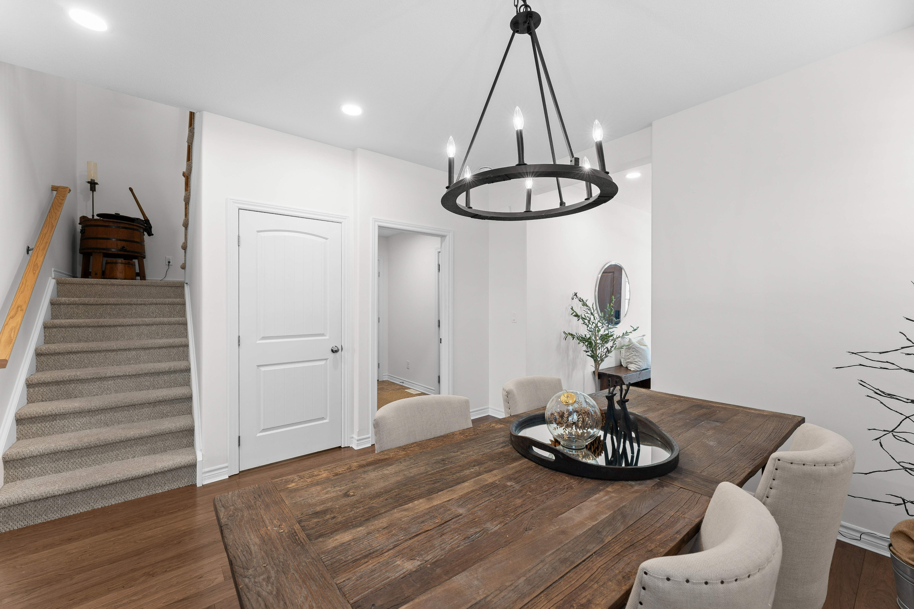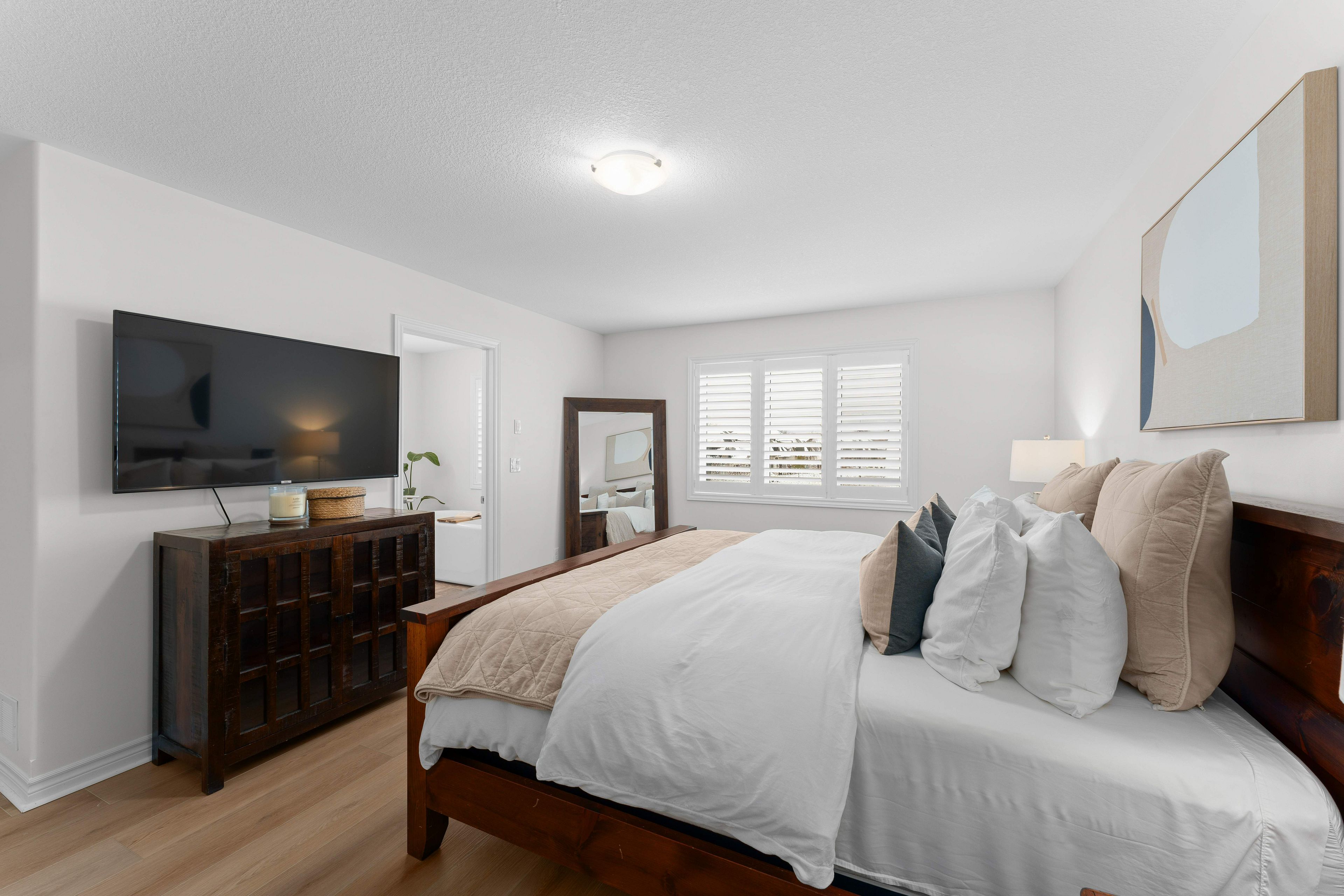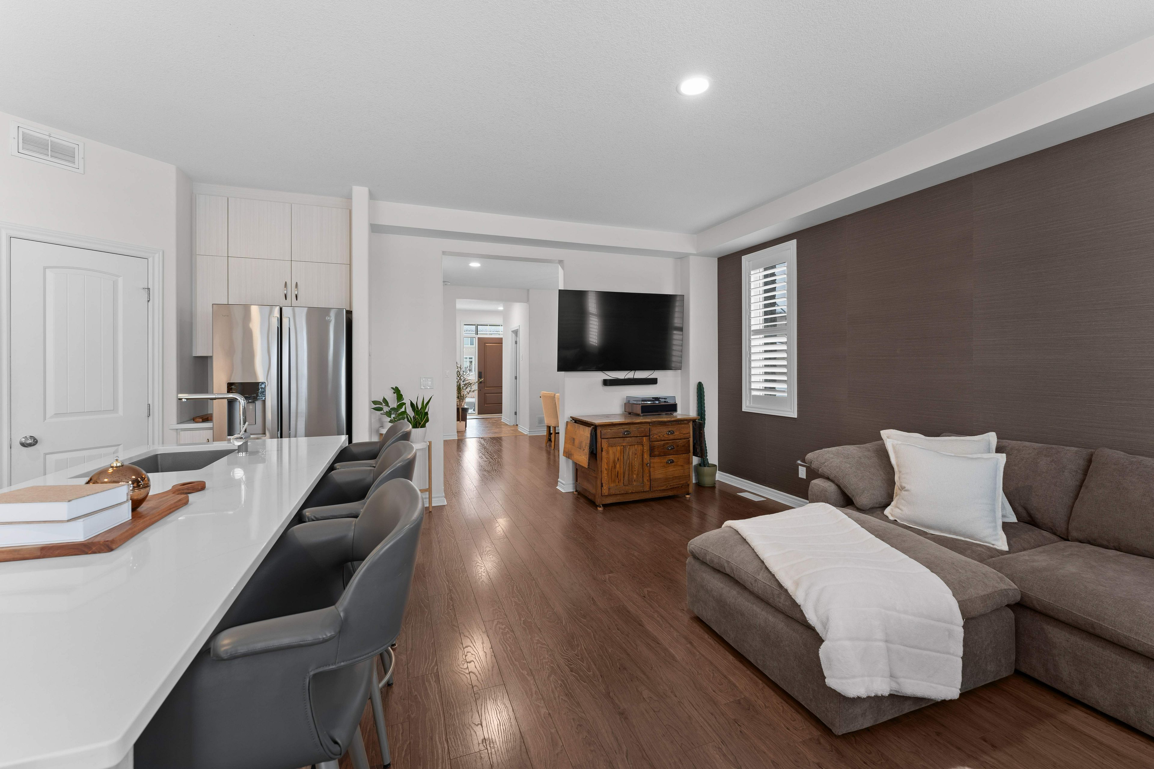 Tucked away on a quiet stretch of one of kingston's most desirable east end streets, this stunning 7-year-old detached two-storey home perfectly blends modern upgrades, elegant finishes, and a thoughtfully designed layout. Step inside and discover a warm, inviting main floor that balances open-concept living with defined spaces. The formal dining area offers the perfect setting for family dinners, while the bright living room-featuring a striking modern grass cloth feature wall-flows seamlessly into the chef-inspired kitchen. Here you'll find ceiling-height cabinetry, a corner pantry, an oversized quartz island with a waterfall edge, and premium stainless steel appliances-all complemented by california shutters throughout. Upstairs, retreat to a luxurious primary suite complete with a spacious walk-in closet and spa-like ensuite featuring a standalone soaker tub, tiled walk-in shower, and double sinks. Two additional large bedrooms and the convenience of second-floor laundry make family living easy. The partially finished lower level offers even more potential, showcasing shiplap feature walls, a bathroom rough-in, and generous storage. Outside, the newly fenced corner lot provides privacy and space to entertain on the brand-new deck. A double-wide driveway and new garage door enhance the home's fantastic curb appeal. Located close to schools, parks, shopping, restaurants, and with quick access to downtown and highway 401, this home offers the ideal combination of lifestyle, location, and luxury. Don't miss your chance to call this beautiful east end property your own.