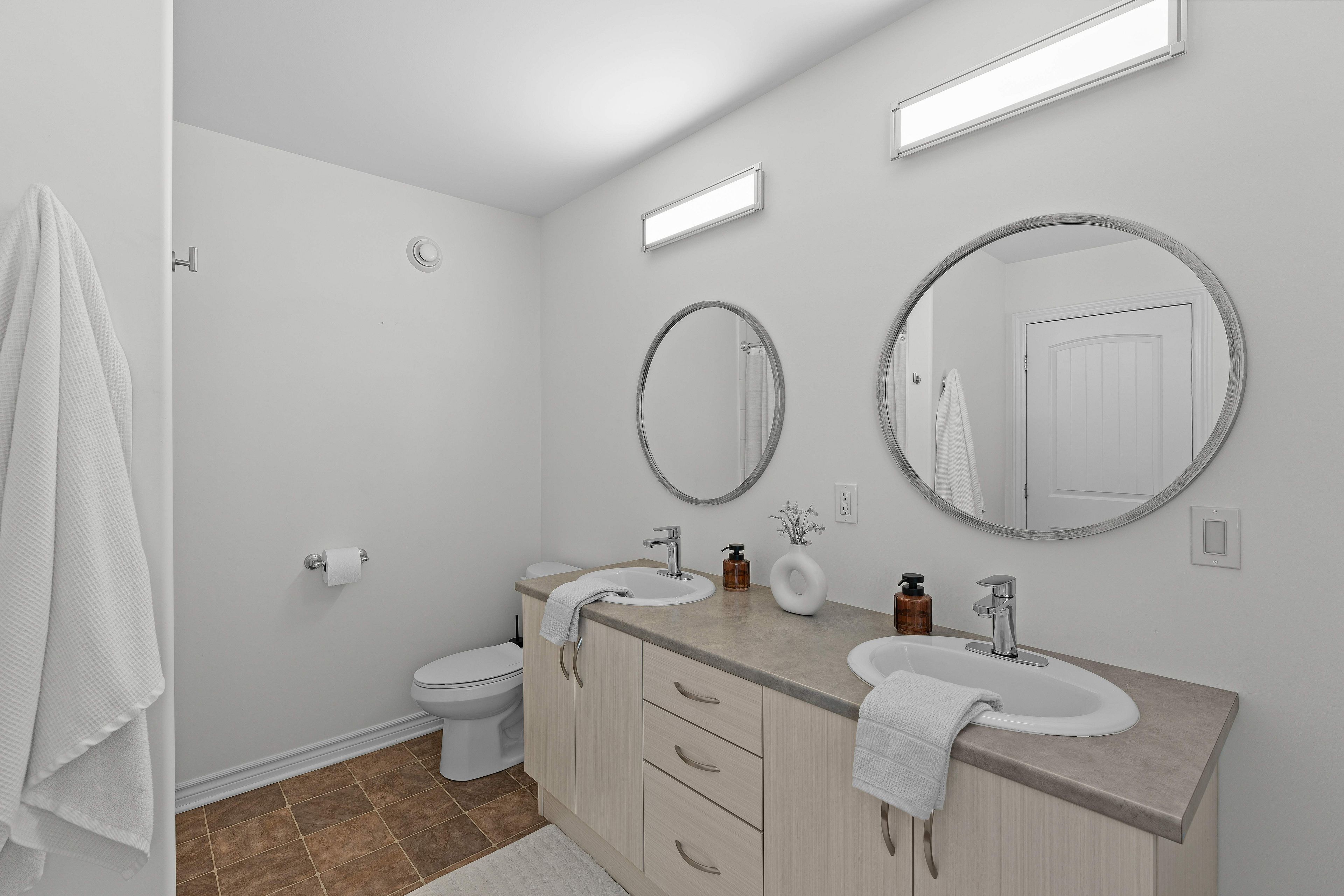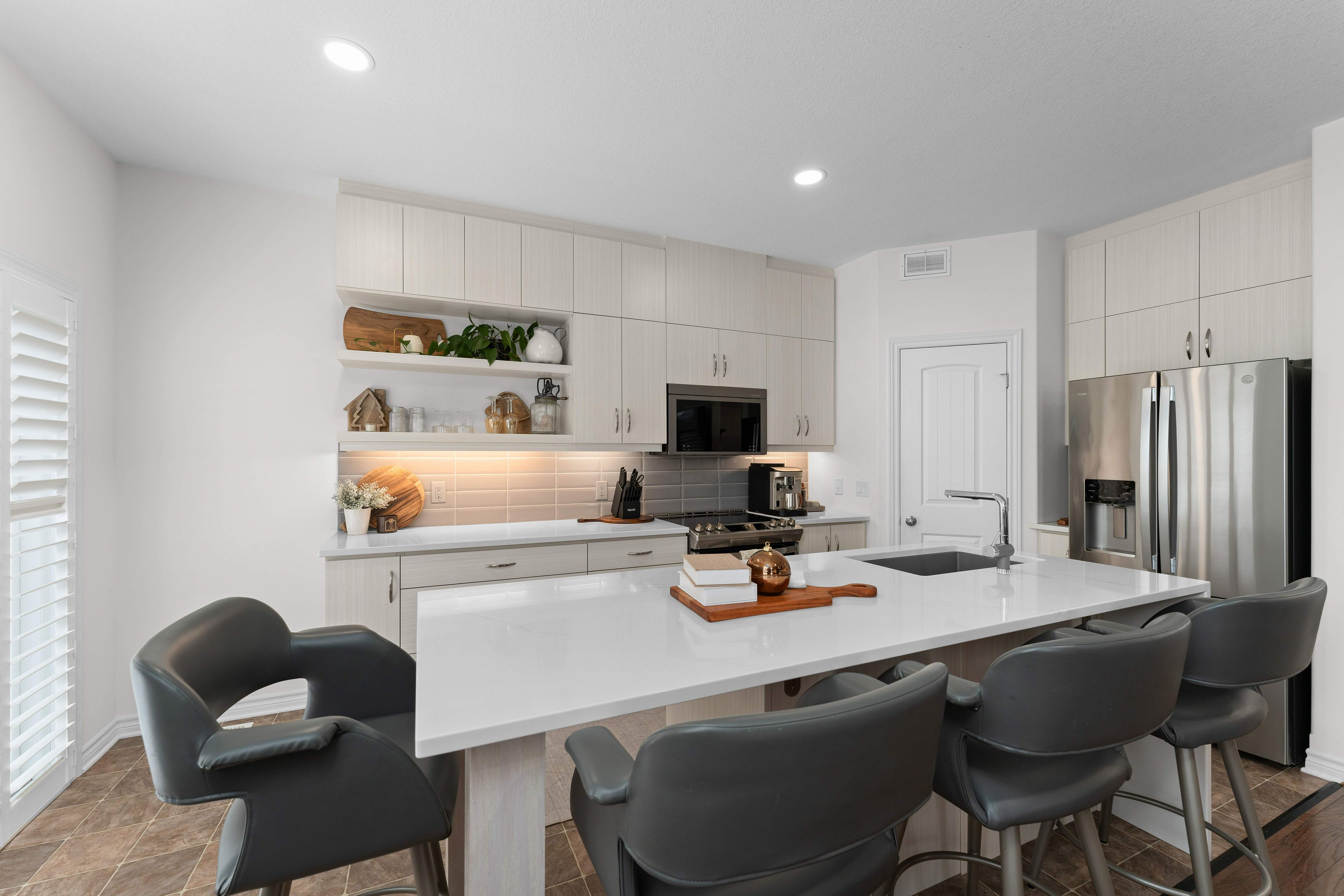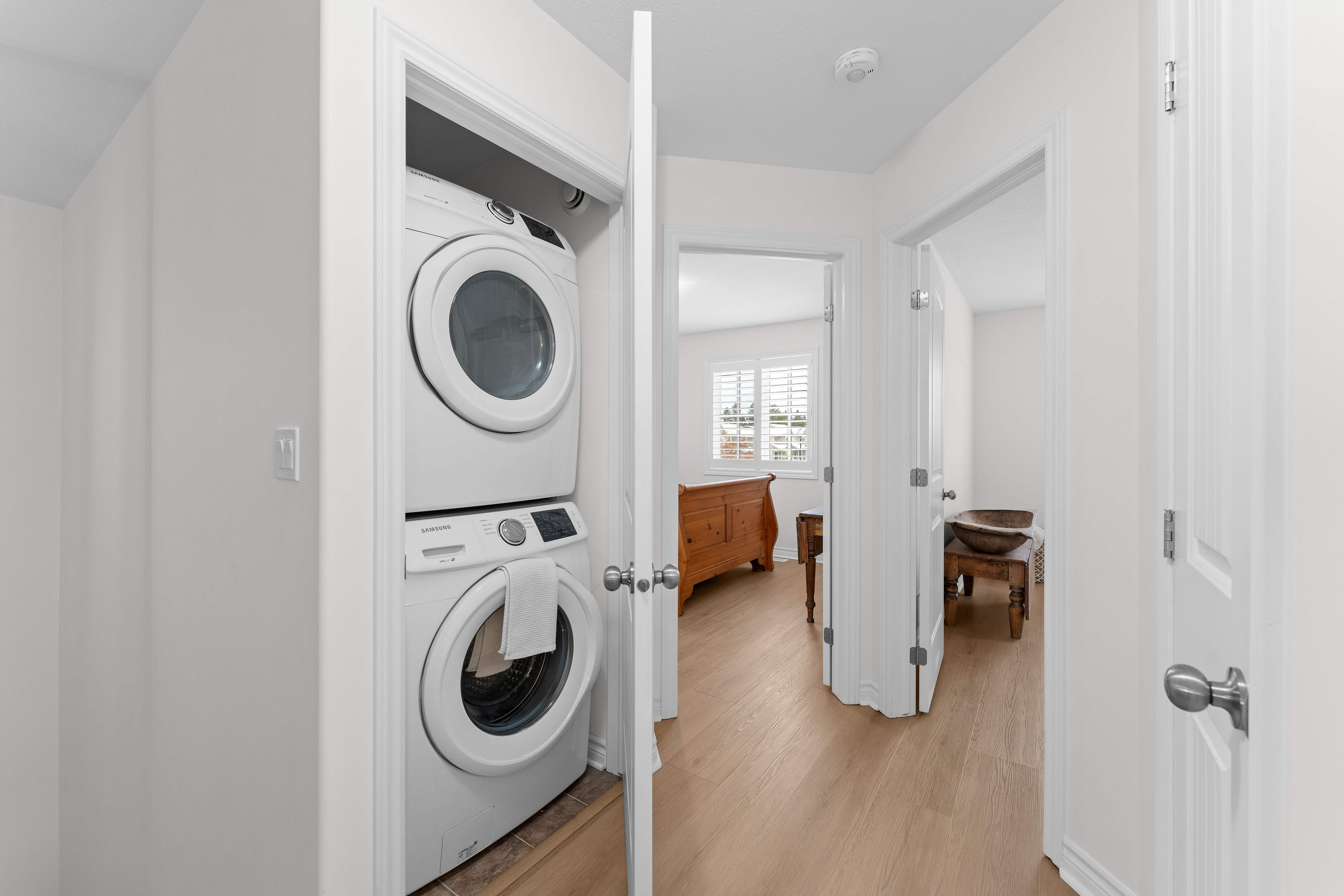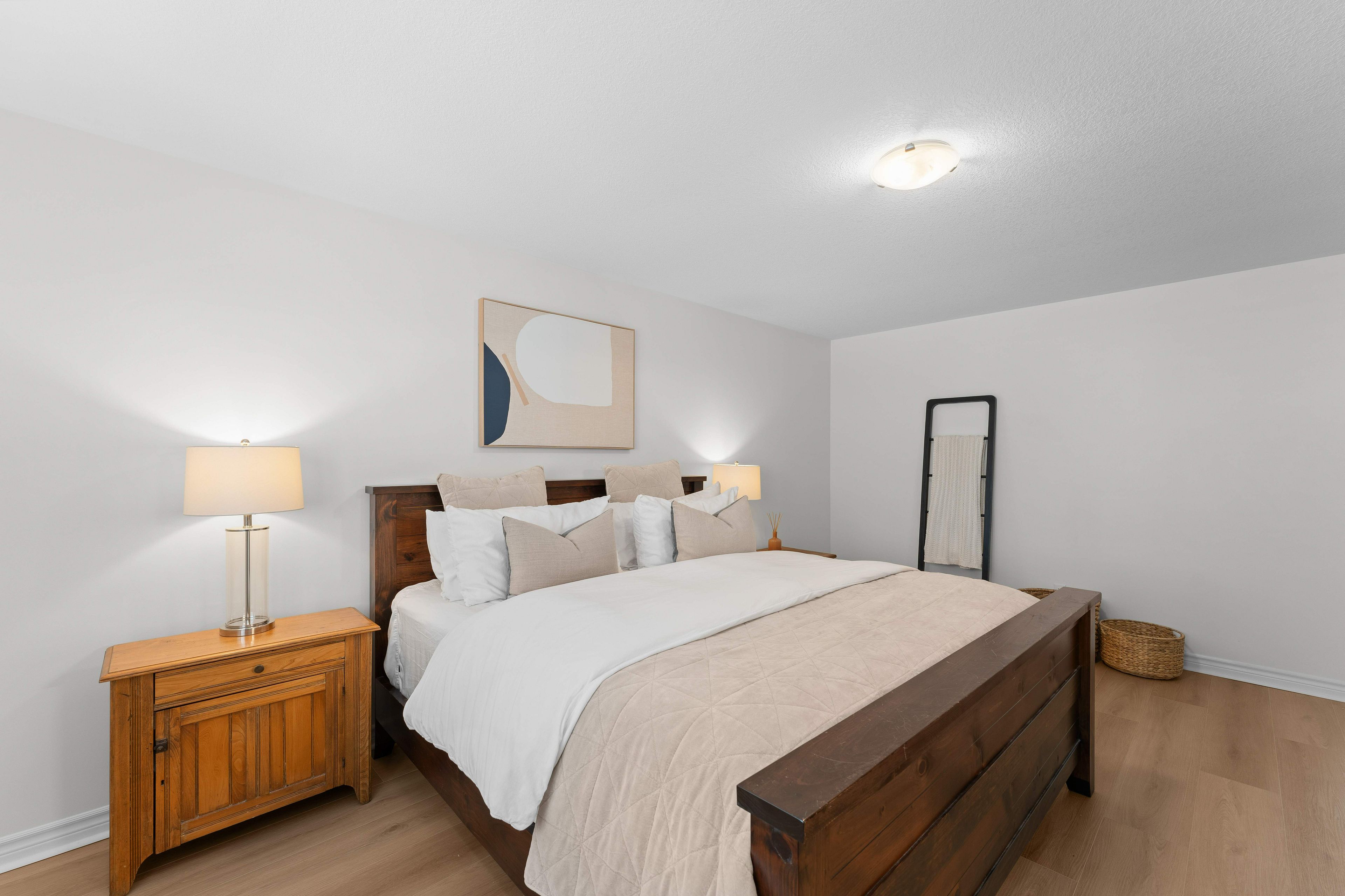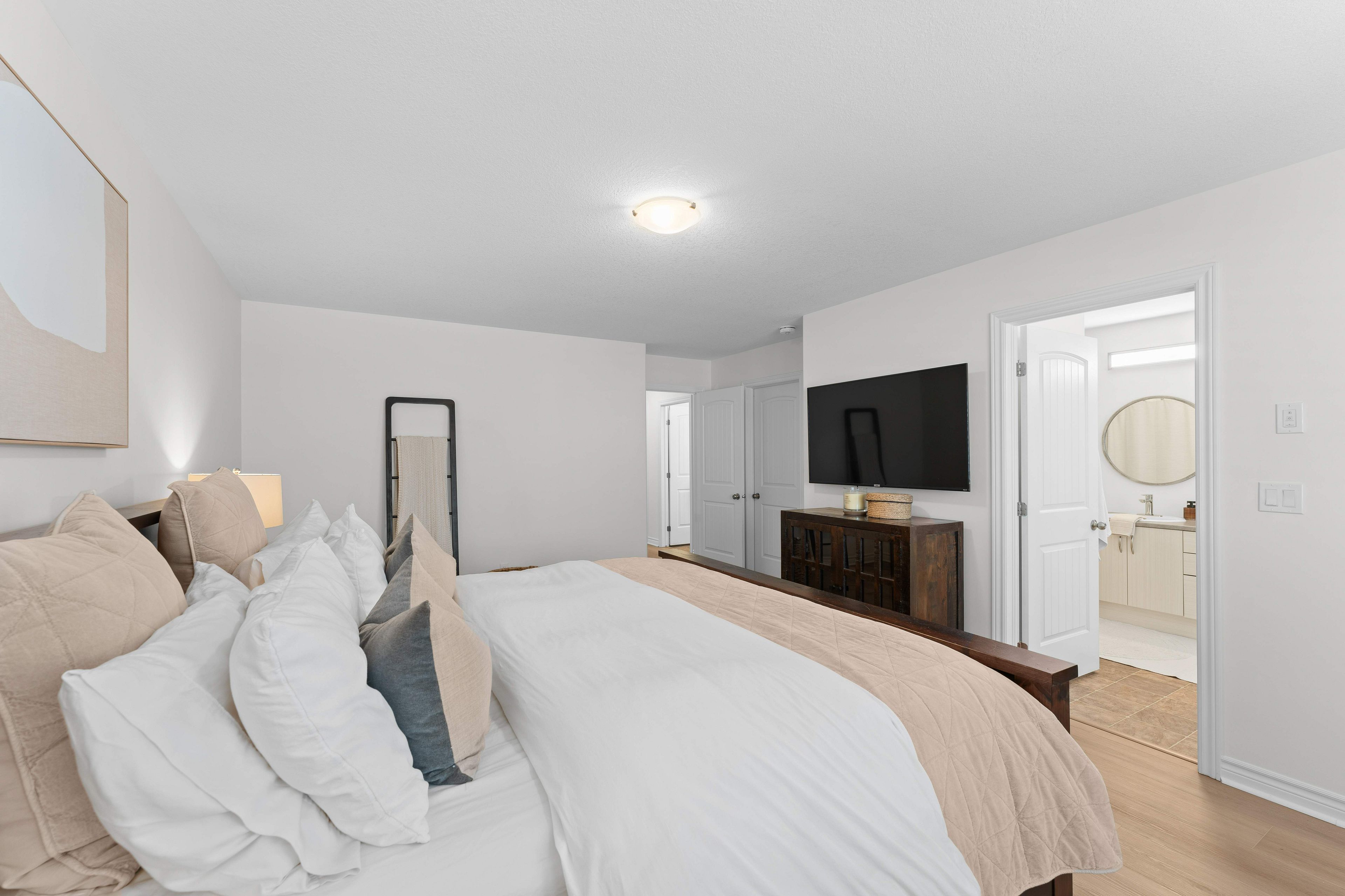 Tucked away on a quiet stretch of one of kingston's most desirable east end streets, this stunning 7-year-old detached two-storey home perfectly blends modern upgrades, elegant finishes, and a thoughtfully designed layout. Step inside and discover a warm, inviting main floor that balances open-concept living with defined spaces. The formal dining area offers the perfect setting for family dinners, while the bright living room-featuring a striking modern grass cloth feature wall-flows seamlessly into the chef-inspired kitchen. Here you'll find ceiling-height cabinetry, a corner pantry, an oversized quartz island with a waterfall edge, and premium stainless steel appliances-all complemented by california shutters throughout. Upstairs, retreat to a luxurious primary suite complete with a spacious walk-in closet and spa-like ensuite featuring a standalone soaker tub, tiled walk-in shower, and double sinks. Two additional large bedrooms and the convenience of second-floor laundry make family living easy. The partially finished lower level offers even more potential, showcasing shiplap feature walls, a bathroom rough-in, and generous storage. Outside, the newly fenced corner lot provides privacy and space to entertain on the brand-new deck. A double-wide driveway and new garage door enhance the home's fantastic curb appeal. Located close to schools, parks, shopping, restaurants, and with quick access to downtown and highway 401, this home offers the ideal combination of lifestyle, location, and luxury. Don't miss your chance to call this beautiful east end property your own.
