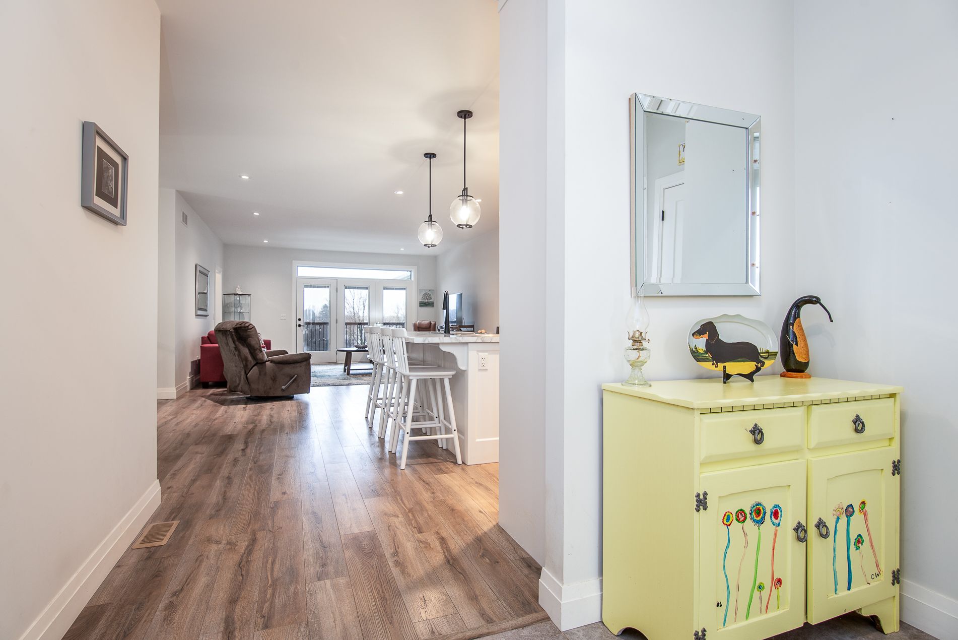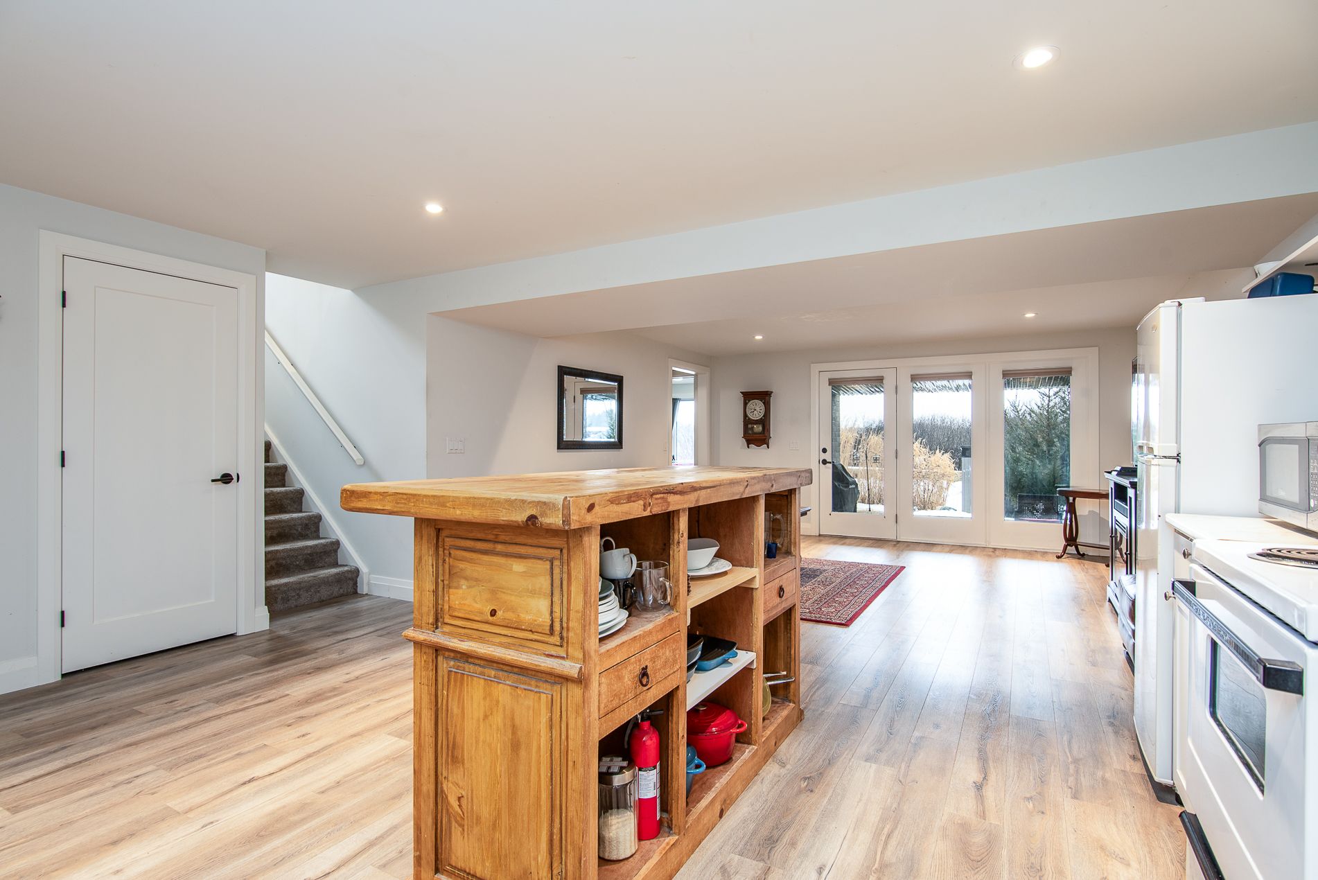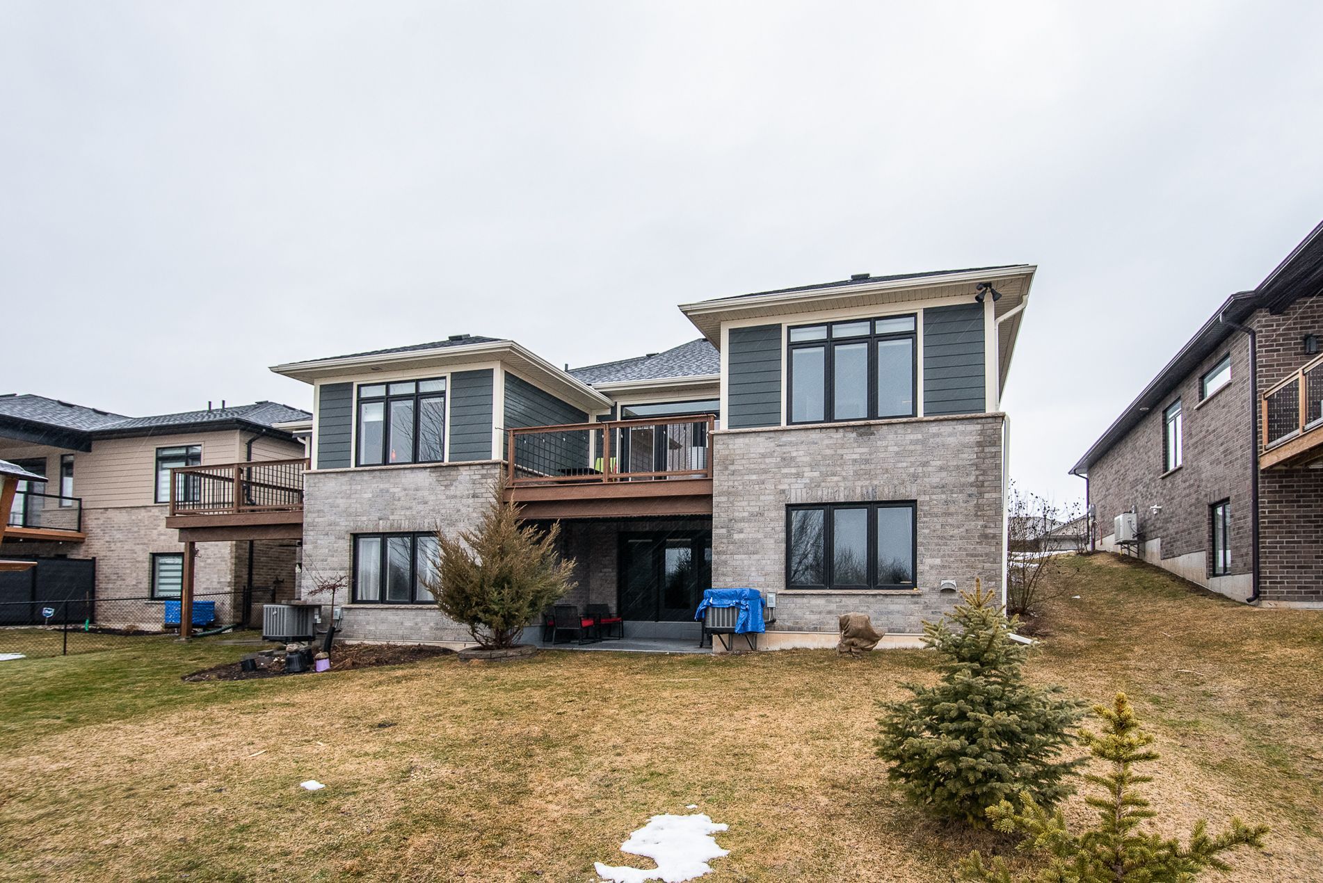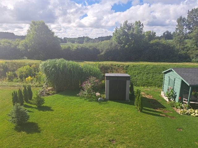 Immaculate semi with walk-out lower level backing onto nature. Welcome to this beautifully maintained 6-year-old semi-detached home, offering comfort, style, and a peaceful setting. Located on a quiet, low-traffic street, this home backs onto the scenic grand trunk trail and open conservation fields, providing lovely views and privacy. The home features 3 spacious bedrooms and 2 bathrooms, designed with modern living in mind. The bright open-concept main floor boasts 9-foot ceilings, a large welcoming foyer, and a tastefully designed kitchen with pot lights, a walk-in pantry and all upper-level appliances included . Convenience is everywhere - enjoy main floor laundry with sink and direct access to the garage from the laundry room. Step outside to the large deck overlooking the backyard, trail, and conservation land - a perfect place for morning coffee or evening relaxation. Upstairs offers generous bedroom with peaceful views of the trail and open fields, a walk-in closet, and a spacious bathroom with windows and a large walk-in shower. The walk-out lower level adds wonderful versatility with a kitchenette and large window overlooking the concrete patio and backyard. Wide patio doors lead directly to the garden, where you'll enjoy a beautiful butterfly- and bird-friendly habitat filled with perennial plants. Additional features include: two kitchens (ideal for extended family or guests) extra-large welcoming front porch. Tastefully landscaped yard concrete patio and shed on concrete pad two-car driveway. This lovely property blends modern comfort with nature's tranquility, creating a truly special place to call home. Pollycarbinate roof under deck (one-year-old). The south-facing living room and rec room are filled with beautiful natural light, creating warm and inviting space to relax or entertain. Built-in blinds offer added comfort, privacy and effortless light control.