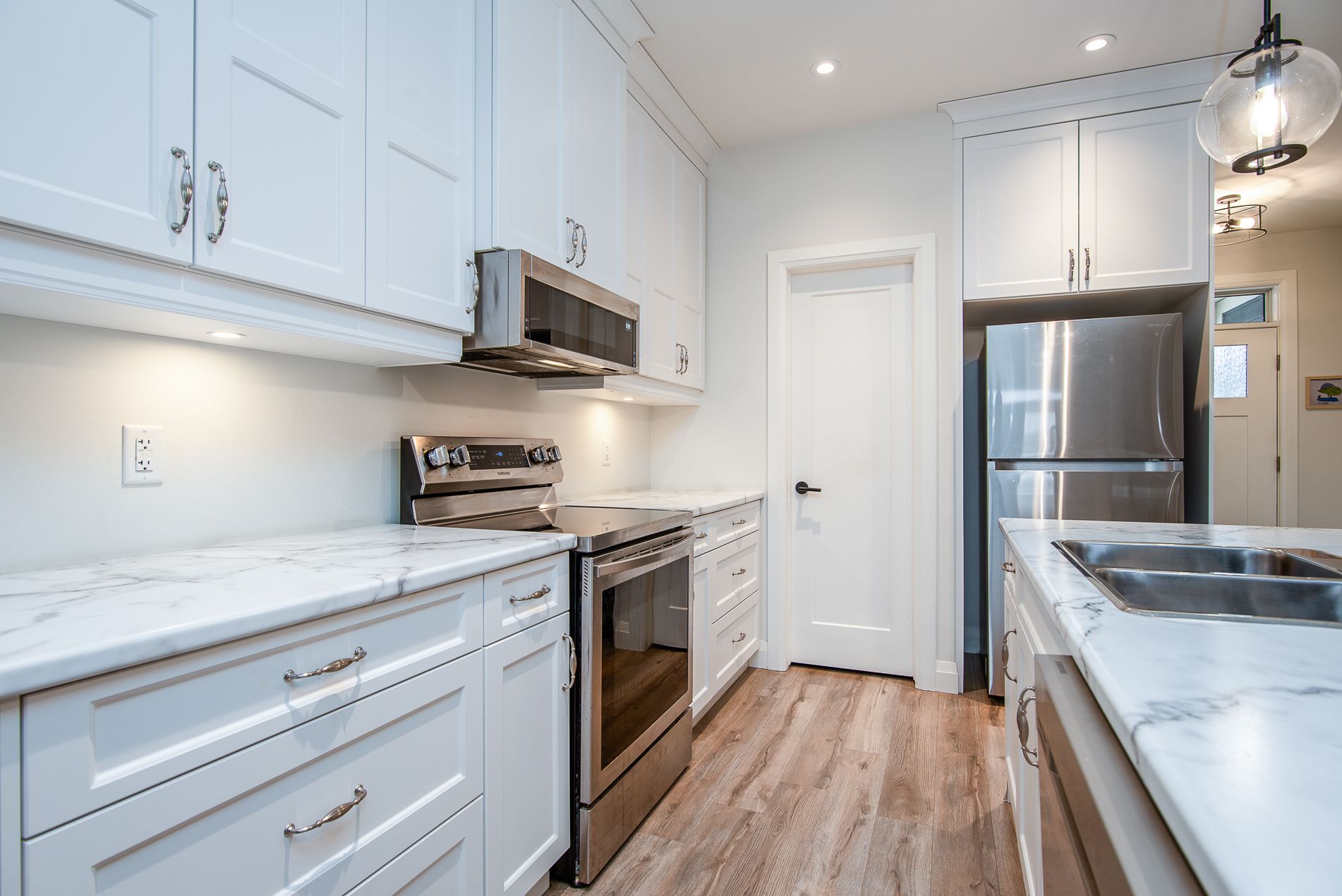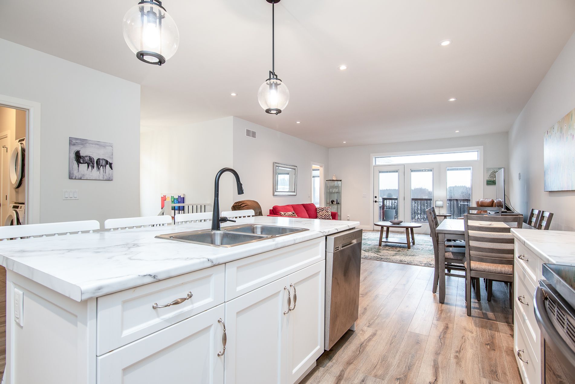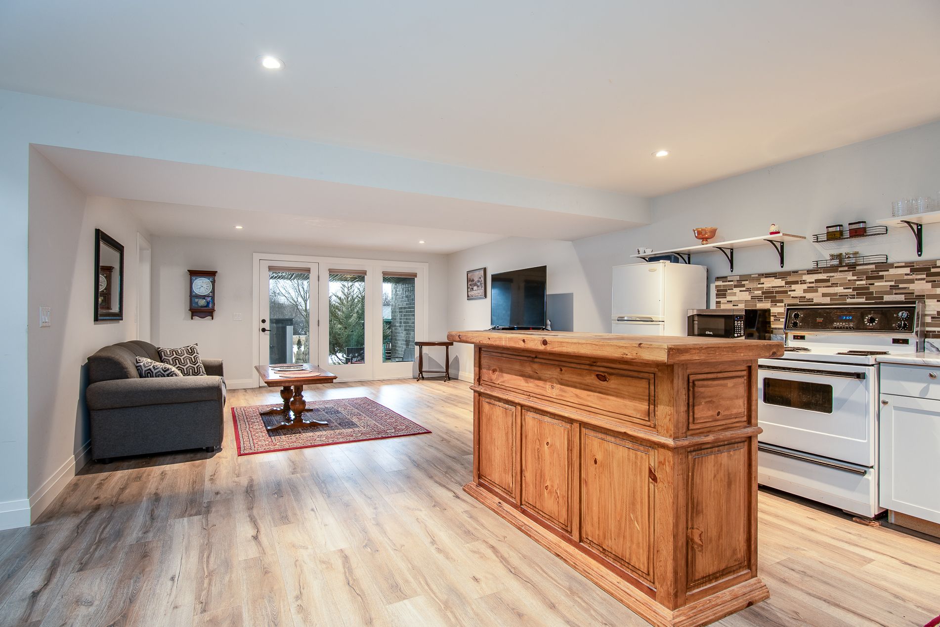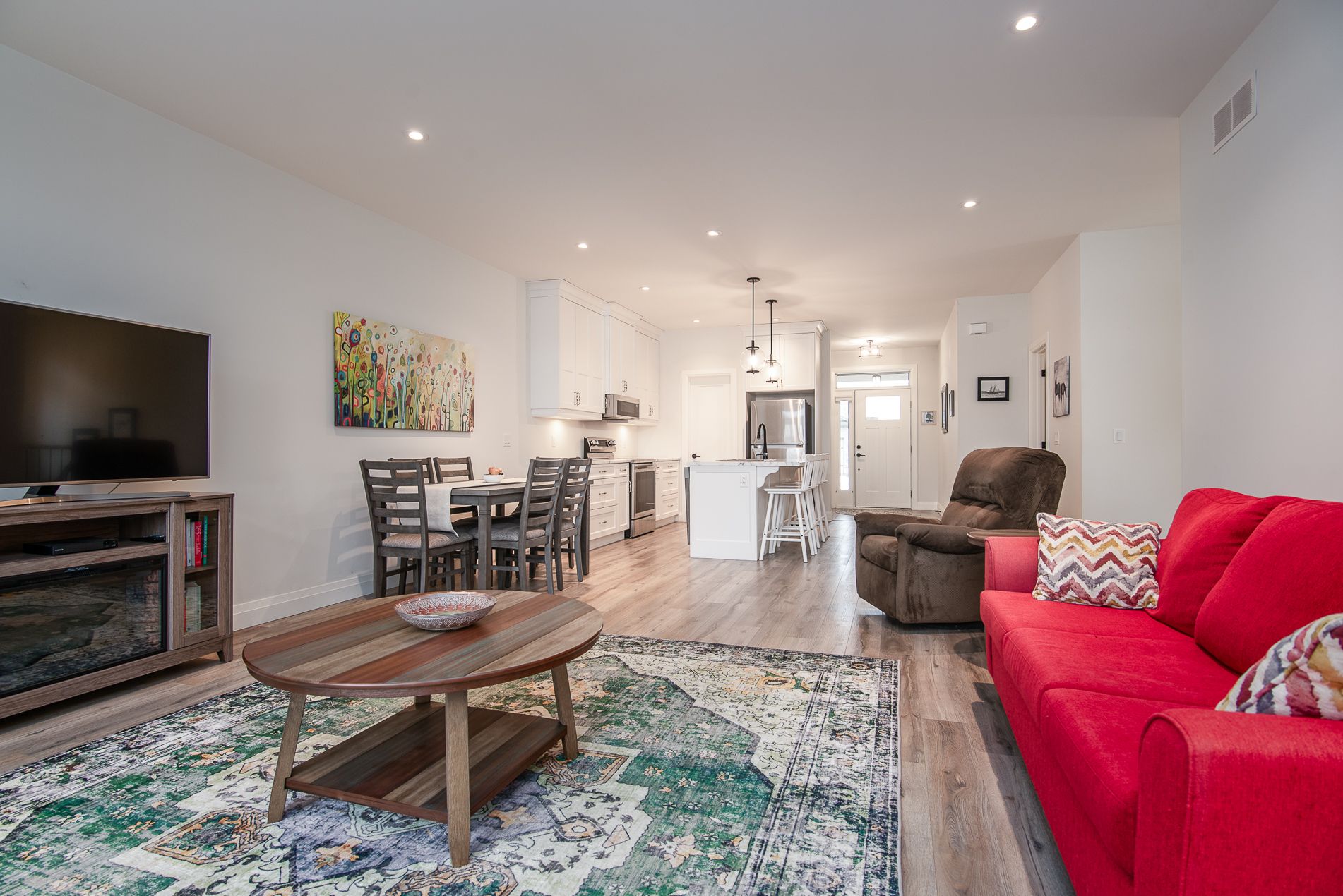 Immaculate semi with walk-out lower level backing onto nature. Welcome to this beautifully maintained 6-year-old semi-detached home, offering comfort, style, and a peaceful setting. Located on a quiet, low-traffic street, this home backs onto the scenic grand trunk trail and open conservation fields, providing lovely views and privacy. The home features 3 spacious bedrooms and 2 bathrooms, designed with modern living in mind. The bright open-concept main floor boasts 9-foot ceilings, a large welcoming foyer, and a tastefully designed kitchen with pot lights, a walk-in pantry and all upper-level appliances included . Convenience is everywhere - enjoy main floor laundry with sink and direct access to the garage from the laundry room. Step outside to the large deck overlooking the backyard, trail, and conservation land - a perfect place for morning coffee or evening relaxation. Upstairs offers generous bedroom with peaceful views of the trail and open fields, a walk-in closet, and a spacious bathroom with windows and a large walk-in shower. The walk-out lower level adds wonderful versatility with a kitchenette and large window overlooking the concrete patio and backyard. Wide patio doors lead directly to the garden, where you'll enjoy a beautiful butterfly- and bird-friendly habitat filled with perennial plants. Additional features include: two kitchens (ideal for extended family or guests) extra-large welcoming front porch. Tastefully landscaped yard concrete patio and shed on concrete pad two-car driveway. This lovely property blends modern comfort with nature's tranquility, creating a truly special place to call home. Pollycarbinate roof under deck (one-year-old). The south-facing living room and rec room are filled with beautiful natural light, creating warm and inviting space to relax or entertain. Built-in blinds offer added comfort, privacy and effortless light control.