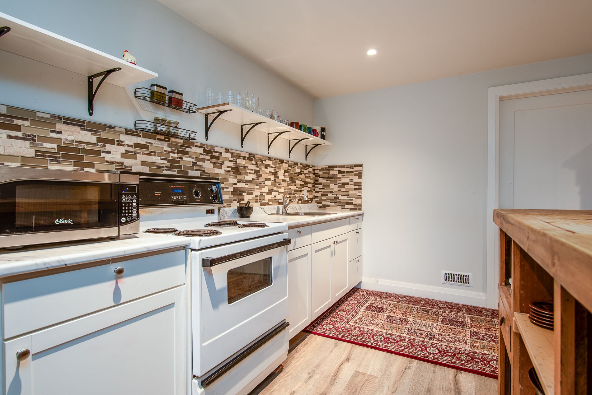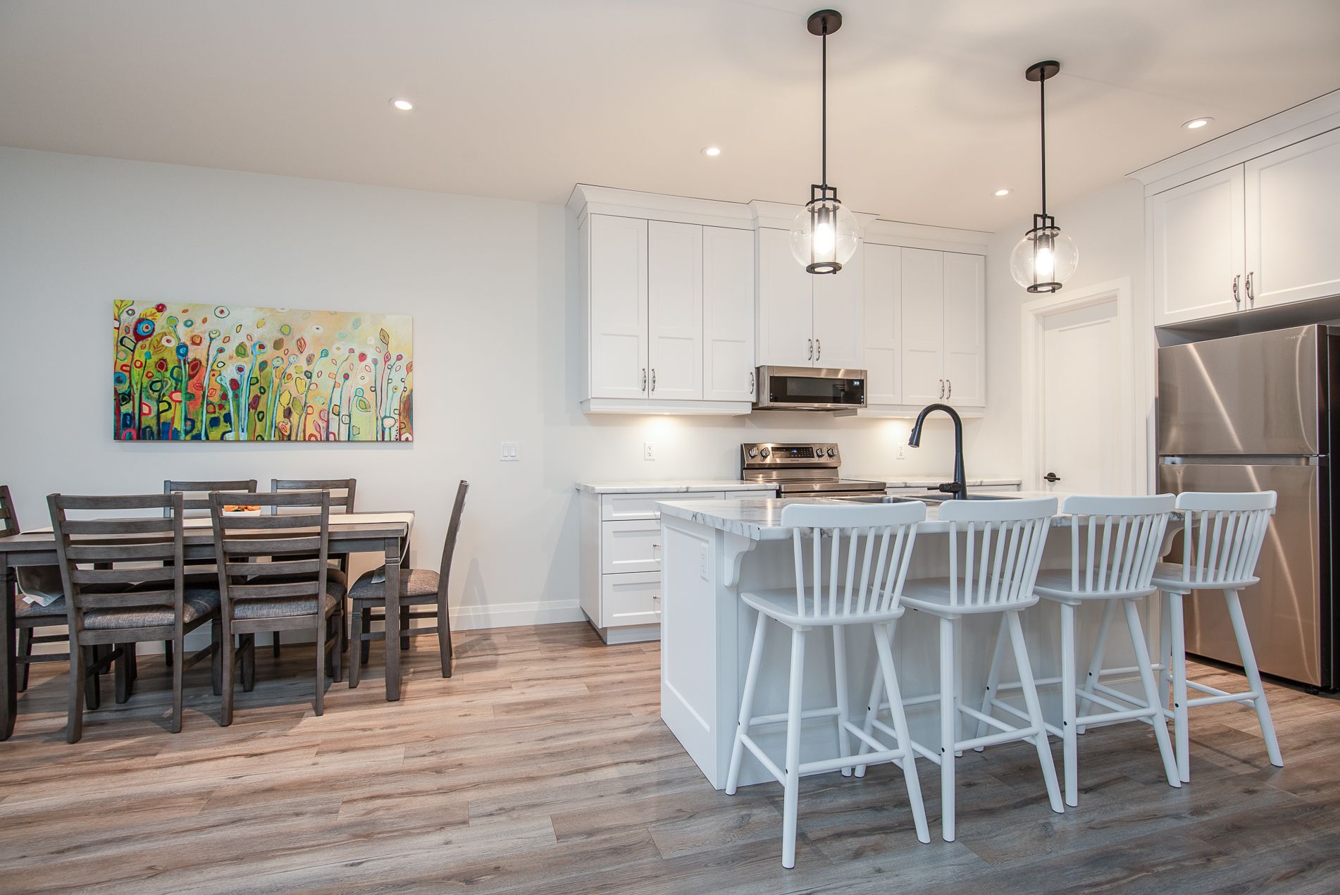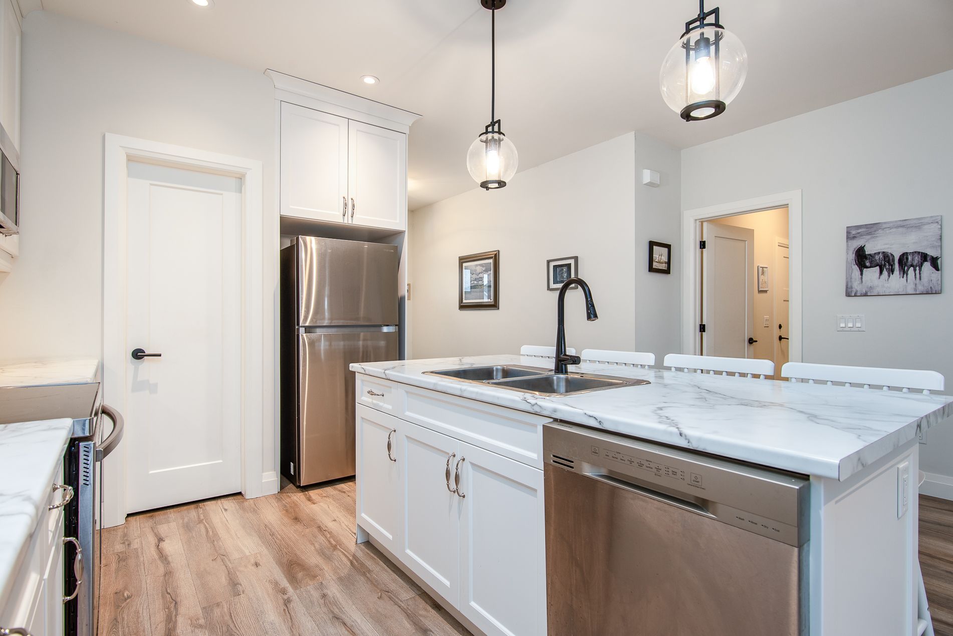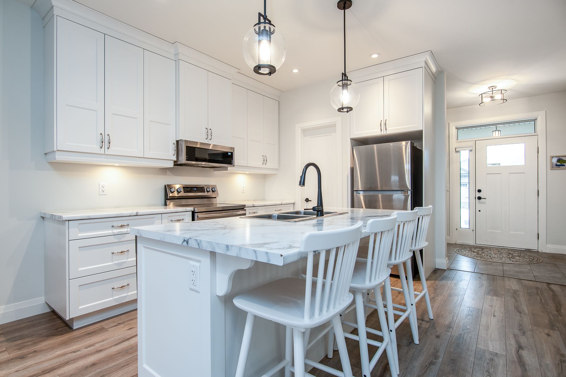 Immaculate semi with walk-out lower level backing onto nature. Welcome to this beautifully maintained 6-year-old semi-detached home, offering comfort, style, and a peaceful setting. Located on a quiet, low-traffic street, this home backs onto the scenic grand trunk trail and open conservation fields, providing lovely views and privacy. The home features 3 spacious bedrooms and 2 bathrooms, designed with modern living in mind. The bright open-concept main floor boasts 9-foot ceilings, a large welcoming foyer, and a tastefully designed kitchen with pot lights, a walk-in pantry and all upper-level appliances included . Convenience is everywhere - enjoy main floor laundry with sink and direct access to the garage from the laundry room. Step outside to the large deck overlooking the backyard, trail, and conservation land - a perfect place for morning coffee or evening relaxation. Upstairs offers generous bedroom with peaceful views of the trail and open fields, a walk-in closet, and a spacious bathroom with windows and a large walk-in shower. The walk-out lower level adds wonderful versatility with a kitchenette and large window overlooking the concrete patio and backyard. Wide patio doors lead directly to the garden, where you'll enjoy a beautiful butterfly- and bird-friendly habitat filled with perennial plants. Additional features include: two kitchens (ideal for extended family or guests) extra-large welcoming front porch. Tastefully landscaped yard concrete patio and shed on concrete pad two-car driveway. This lovely property blends modern comfort with nature's tranquility, creating a truly special place to call home. Pollycarbinate roof under deck (one-year-old). The south-facing living room and rec room are filled with beautiful natural light, creating warm and inviting space to relax or entertain. Built-in blinds offer added comfort, privacy and effortless light control.