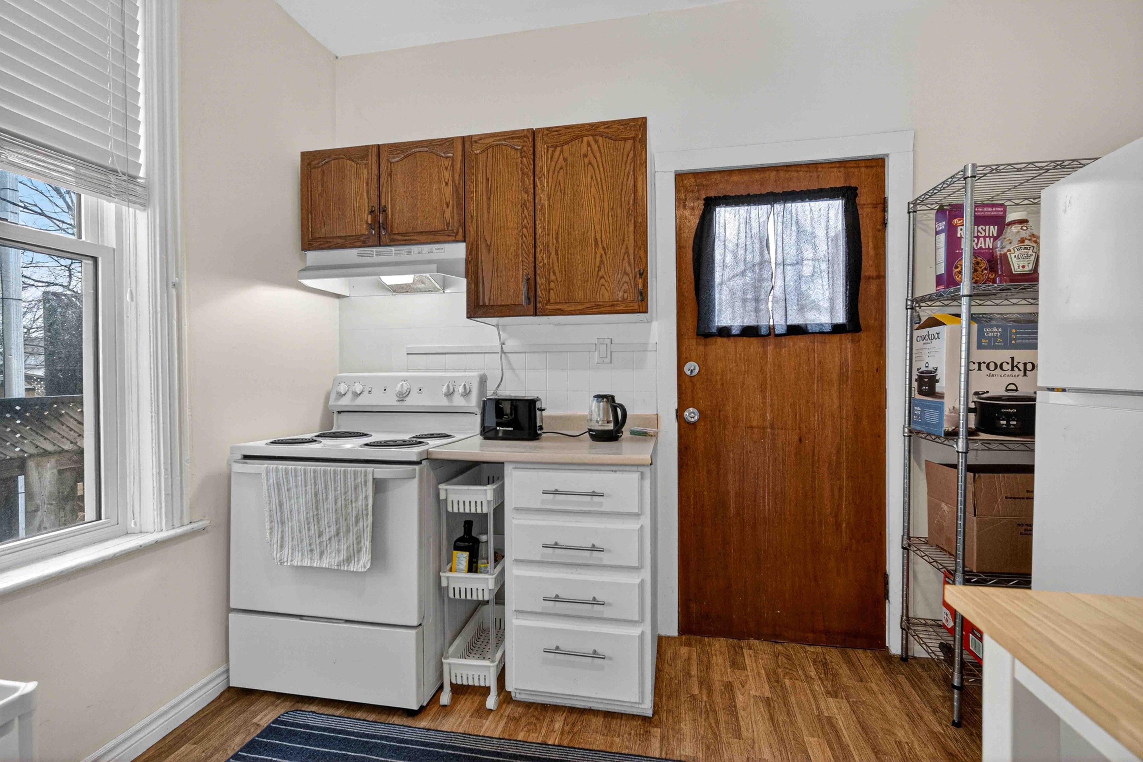 • Kitchen has a walk-out to a fully fenced private backyard.