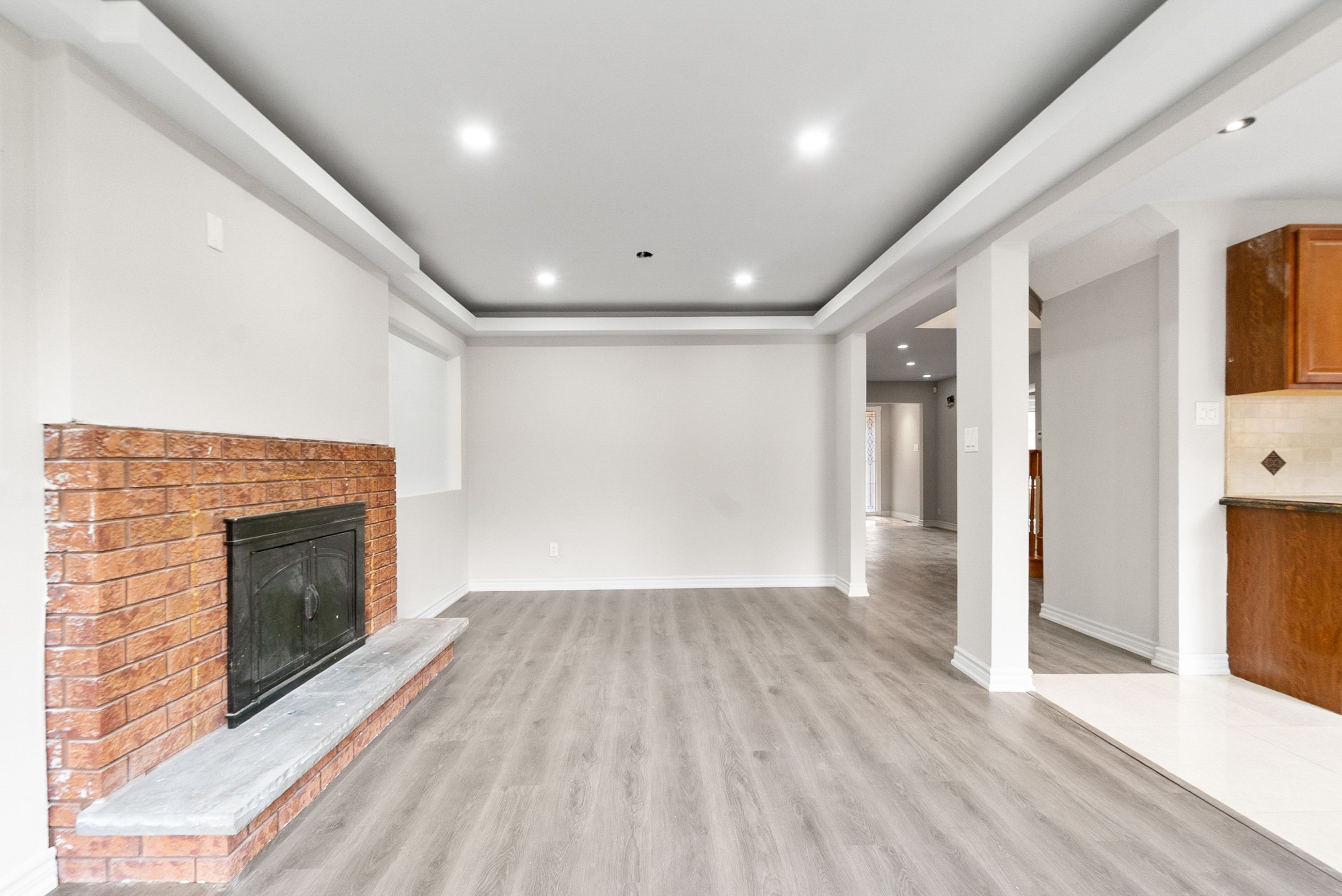 • Bright open-concept living area connects to a large kitchen.