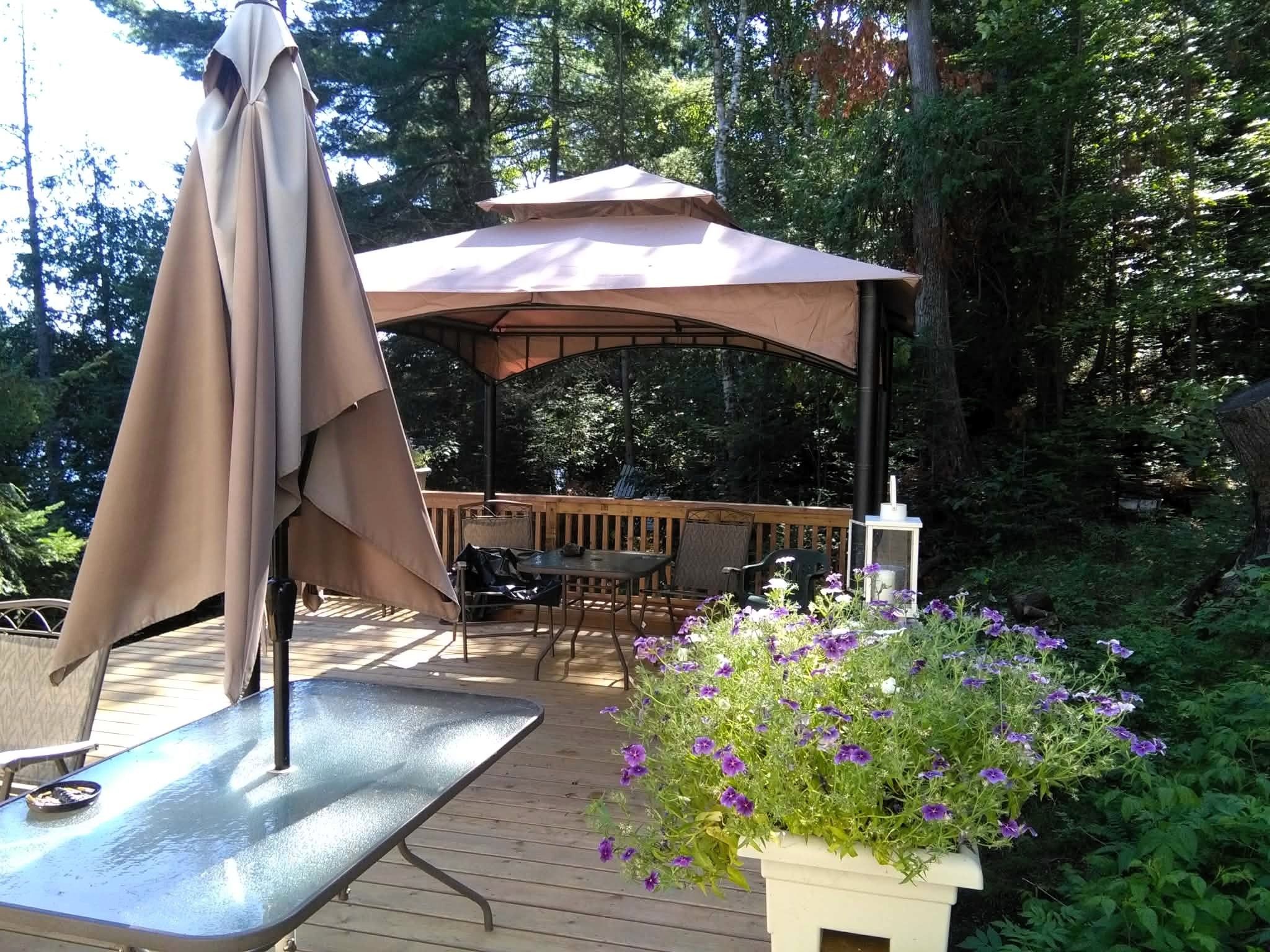 • Expansive side deck with gazebo, great for entertaining or relaxing.