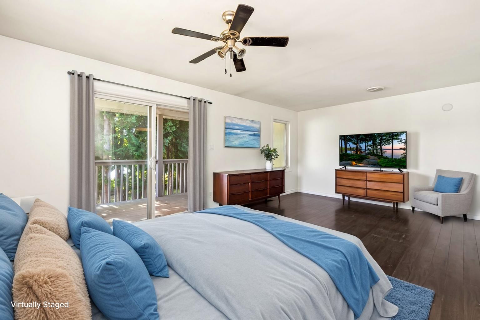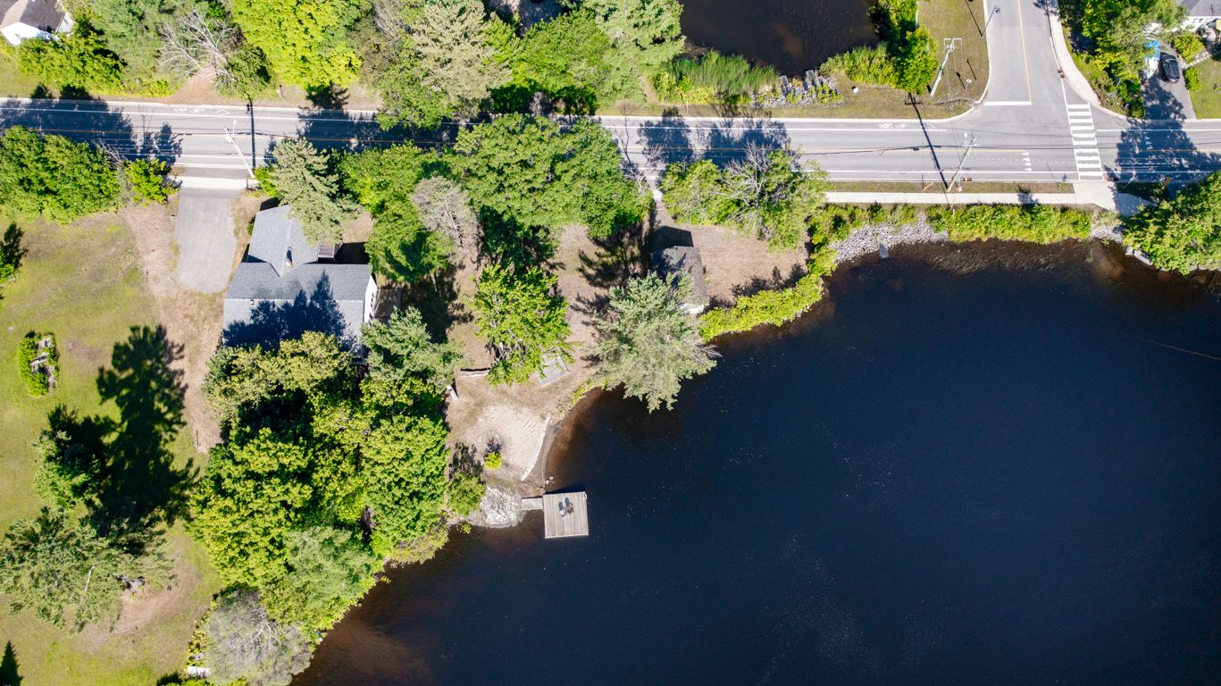 • Large .83-acre lot with sandy beach, private dock, and park-like setting.