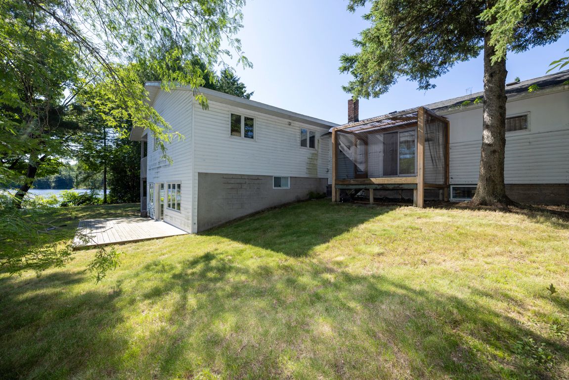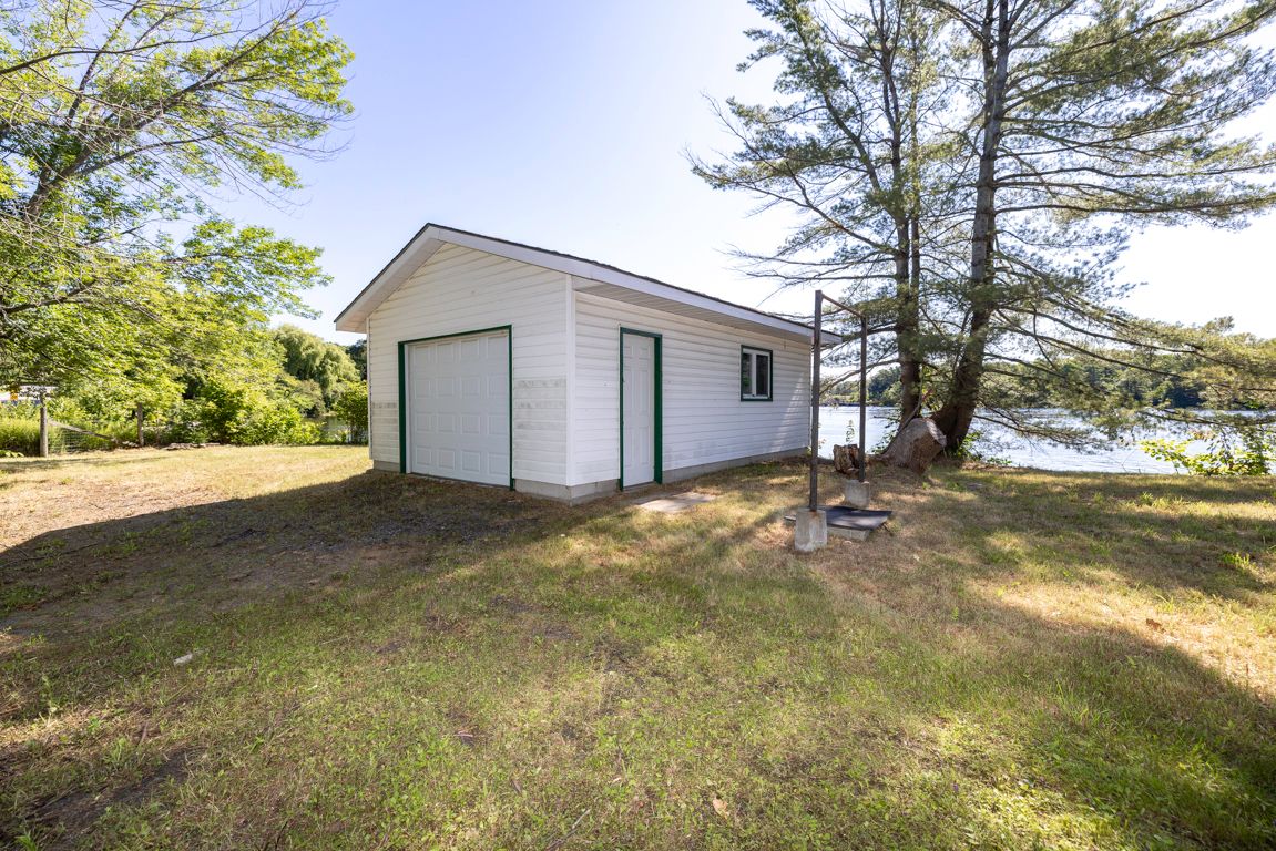 Rare in town riverfront home! Peaceful water views over the seguin river! 294. 9 ft contour shoreline, natural sandy beach, private dock, convenience of town water & sewer, this spacious 3 bedroom, 3 bath home is ideal for retirees, growing families or income generating property, potential for 3 units, main floor laundry, primary bedroom with walk out to a large deck overlooking the water, main floor family room or optional in law suite w separate entrance, bright walkout lower level offers bedroom, 3rd bath, recreation room with rough in for kitchenette/wet bar, new shingles, 2020, natural gas furnace & central air, ideal level lot!, perfect for family fun, gatherings, gardening, park-like setting, detached garage/dry boathouse, classic covered front porch viewing water, desirable . 83 acre waterfront home or vacation lake house!