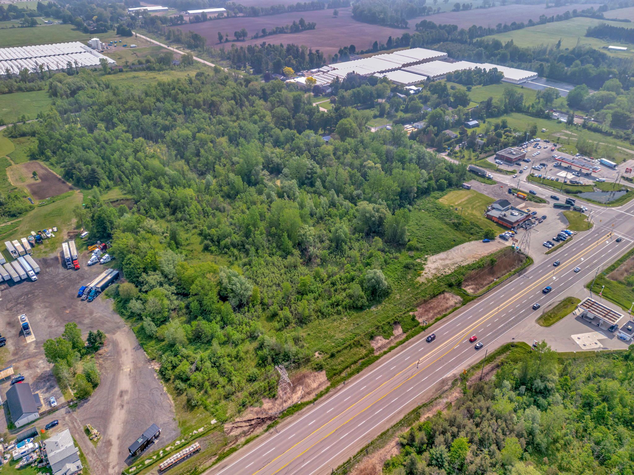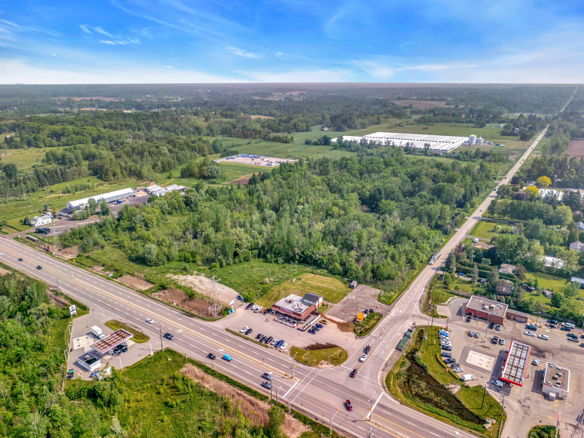 Rarely available aaa+ corner on rapidly expanding and ever busier hwy 6 corridor!! Flexible prime parcels to occupy and operate as is, or hold for future development opportunities. Total site of +/-10. 9 acres. Corner lot, at hwy 6 & carlisle rd, is highlighted by the long-standing iconic roadside restaurant, breezy corners, sitting on a 1. 12-acre lot with ample parking and excellent branding visibility. Potential opportunity to add a drive-thru type qsr pad on this heavily trafficked corridor. Additional vacant farm land is ready for plans. Zoning permits a variety of residential and non-residential uses - contact the city of hamilton for additional information. Conveniently located minutes to highway 401 & 403, between hamilton/burlington and guelph.