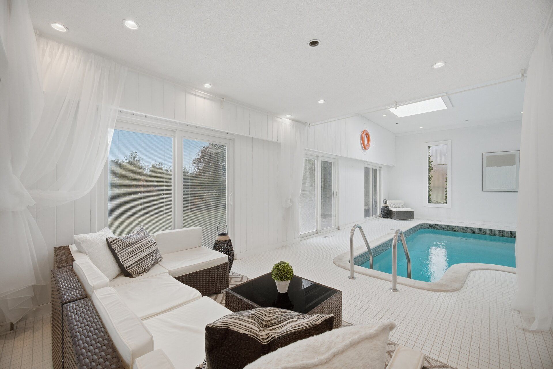 Discover a rare blend of everyday comfort and year-round wellness in this thoughtfully upgraded home set in the sought-after clarkson community and lorne park school district. With 3 bedrooms upstairs, a 4th bedroom on the main, and 4 bathrooms, the layout is designed to flex with how you live, whether you're hosting, working from home, or simply spreading out. No steep staircases to climb. The standout feature is a private, indoor spa retreat: a full-sized heated indoor concrete pool (chlorine) under skylights, paired with a sauna for the ultimate four-season escape. It's a true lifestyle space that allows you to swim, recharge, and entertain without ever leaving home. At the heart of the property is a modern open-concept kitchen finished with custom cabinetry, offering excellent storage and a clean, functional flow into the main living areas. An oversized window from the dining room provides a view of the indoor pool and spa area. The primary suite feels like a peaceful getaway, complete with built-in cabinetry and an ensuite that adds comfort and ease to your daily routine. Downstairs, a dedicated media room with projector and screen sets the stage for movie nights and game days. Near the spa area, the family room adds warmth and character with custom millwork, a dry bar with bar fridges, and a wood-burning fireplace plus direct access outside for seamless indoor-outdoor living. Notable updates include a 200-amp electrical panel and a 240v plug in the garage for ev charging. Multiple walk-outs connect you to outdoor spaces, and the green space behind hillcrest school adds a welcome sense of privacy. Close to transit, highways, shopping, and excellent local schools, this is a truly unique opportunity. Well-designed and built for a relaxed, elevated lifestyle. See video and dynamic floor plan link.
