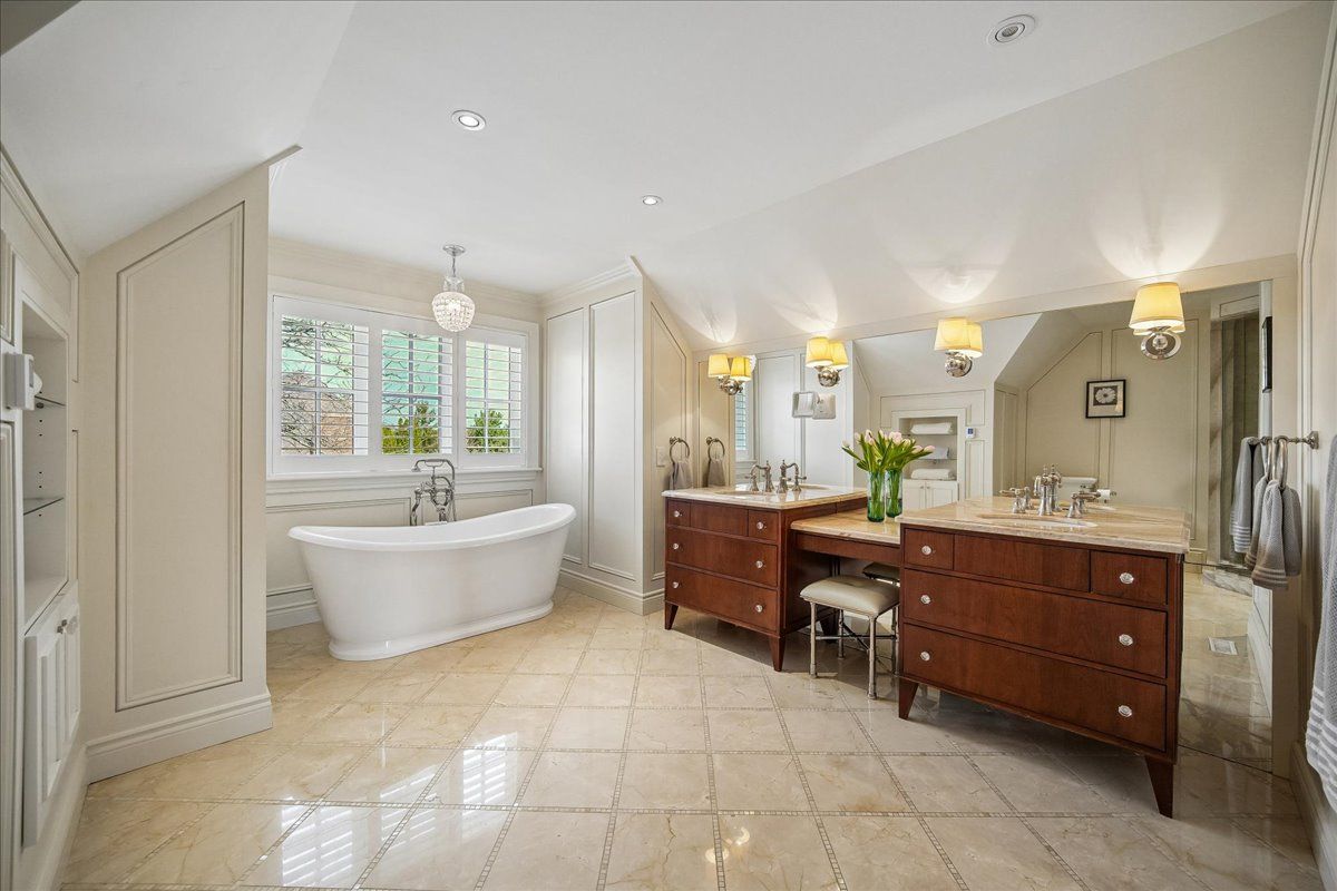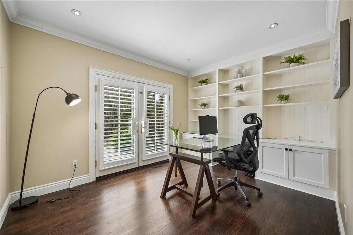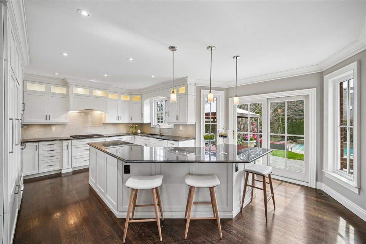 Welcome to 1494 the links in the fairway hills, glen abbey golf course community. This 4 plus 1-bedroom executive home has been renovated with high end custom finishes throughout. Fabulous kitchen with custom cabinets and center island with built-in jenn air appliances including french door refrigerator, double wall oven/convection microwave, 6 burner gas cooktop, miele dishwasher, and beverage fridge. Granite counters and linear mosaic marble backsplash. Kitchen is open to family room with fireplace - both overlooking the backyard. Private office with access to backyard and custom white built-in cabinets and glass desk. Updated windows, doors and carriage style garage doors. Finished onsite oak hardwood through the main floor. Spacious living room and separate dining room. Second floor has large primary bedroom with decadent renovated spa like 6-piece ensuite bathroom. Three other spacious bedrooms and fully renovated main bathroom. Both bathrooms have heated floors. Hardwood throughout second floor. Fully finished lower level has walk out/up to backyard, entertainment area, games area, fifth bedroom and 3-piece bathroom with heated floors, custom wine cellar and kitchenette. Perfect for nanny or in-law suite. Tons of storage! Backyard with heated salt-water pool, cabana, putting green, and pergola. Professional landscaping and hardscaping in front and rear yards. Perfect move in ready family home.