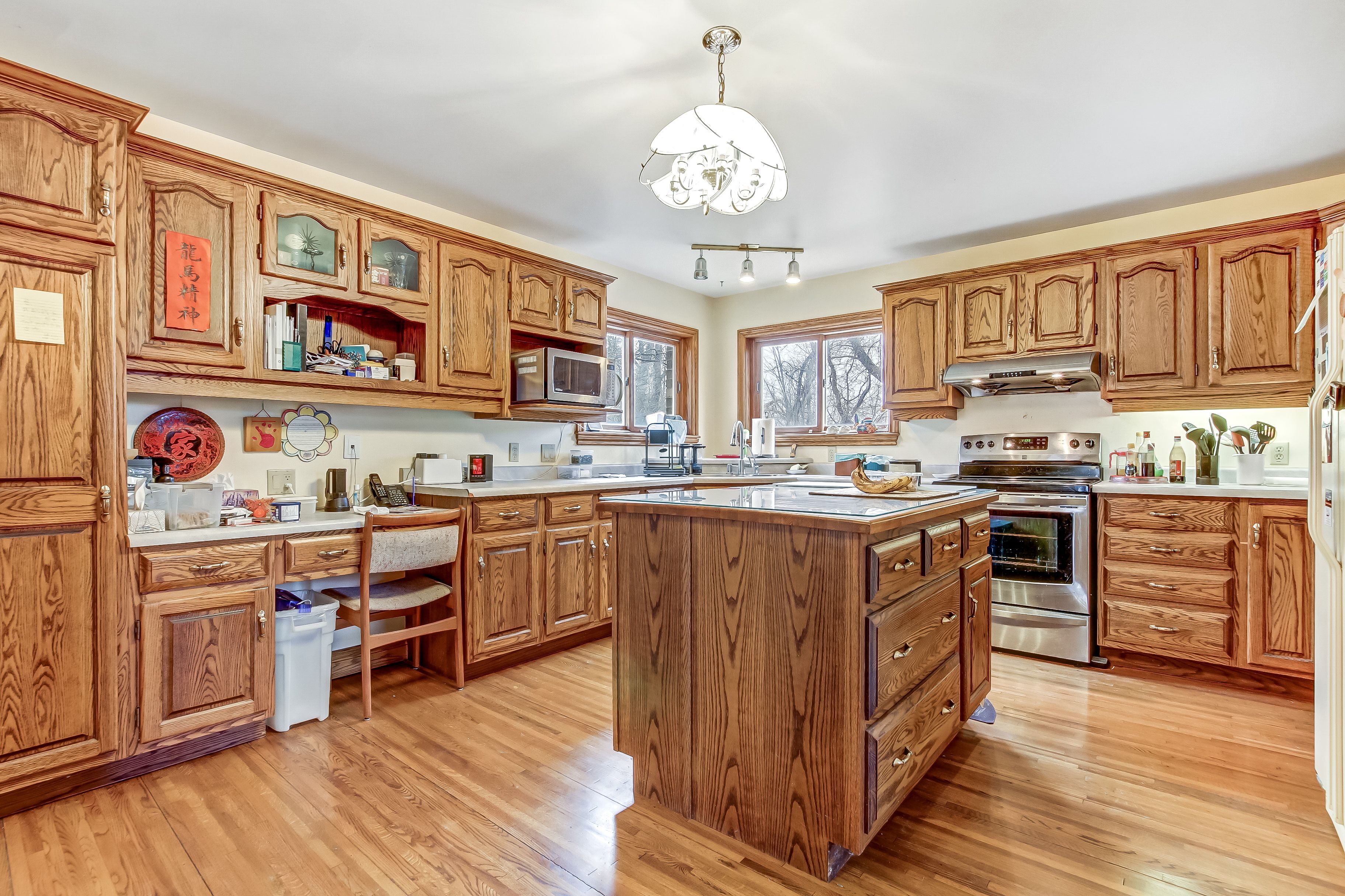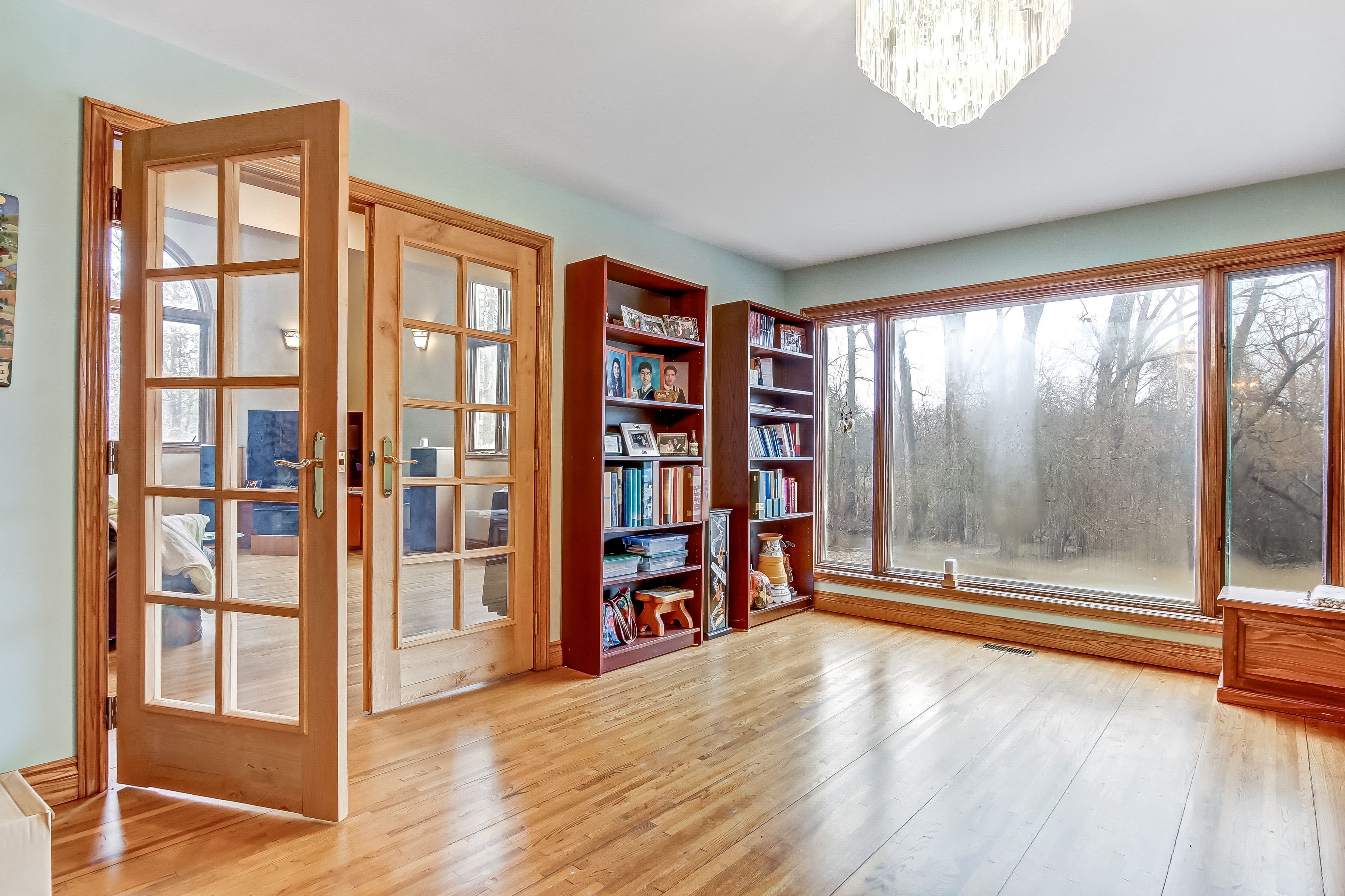 • Large great room with cathedral ceilings and views of the wooded backyard.