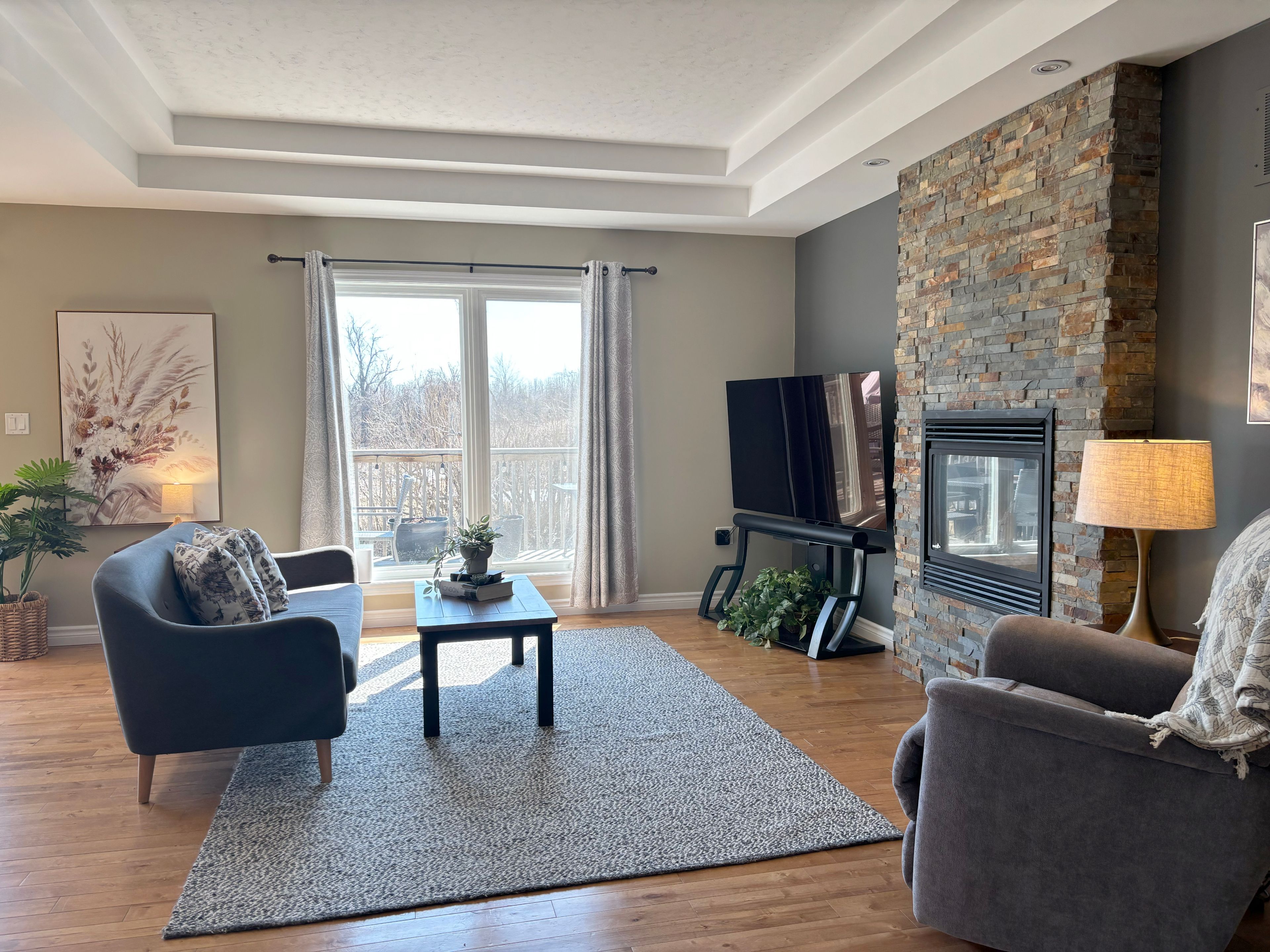 A newer ranch bungalow with a clean, modern feel, great curb appeal & space to actually live in.. This home & location is the right move. Built in 2013 & set in east oro-medonte, it's a custom 3-bedroom home that just makes everyday living easy. A covered front verandah and roomy foyer give you a welcoming entry. Inside, the layout flows nicely, with an open-concept main living area filled with natural light from large windows and a patio door off the dining area. The living space has a tray ceiling for a bit of character, and a floor-to-ceiling slate gas fireplace that anchors the room without overpowering it. The kitchen is set up the way you'd want it with a large island, plenty of storage, pot drawers, a pantry, and tall cabinets that go right to the ceiling & a central vac sweep for easy cleanup. Granite counters tie it all together, and it's all positioned so you're still part of the conversation while cooking or entertaining. One of those small but important details: the main floor laundry is just off the kitchen, which makes unloading groceries from the oversized double garage simple (and there's even a handy work nook in the garage for projects or extra storage). The main floor offers 3 comfortable bedrooms & 2 bathrooms, including a primary suite with ensuite. There's no shortage of storage throughout the home. The double oversized insulated garage has a work nook as well as a 240 v heater on a thermostat and the 12 foot ceilings with mezzanine added great additional storage. A large deck ready for summer evenings, and the location is hard to beat. Close enough to walk to the local elementary school, in a quiet east oro setting, 10 minutes to major shopping & a short drive to hwy 11 for commuters .