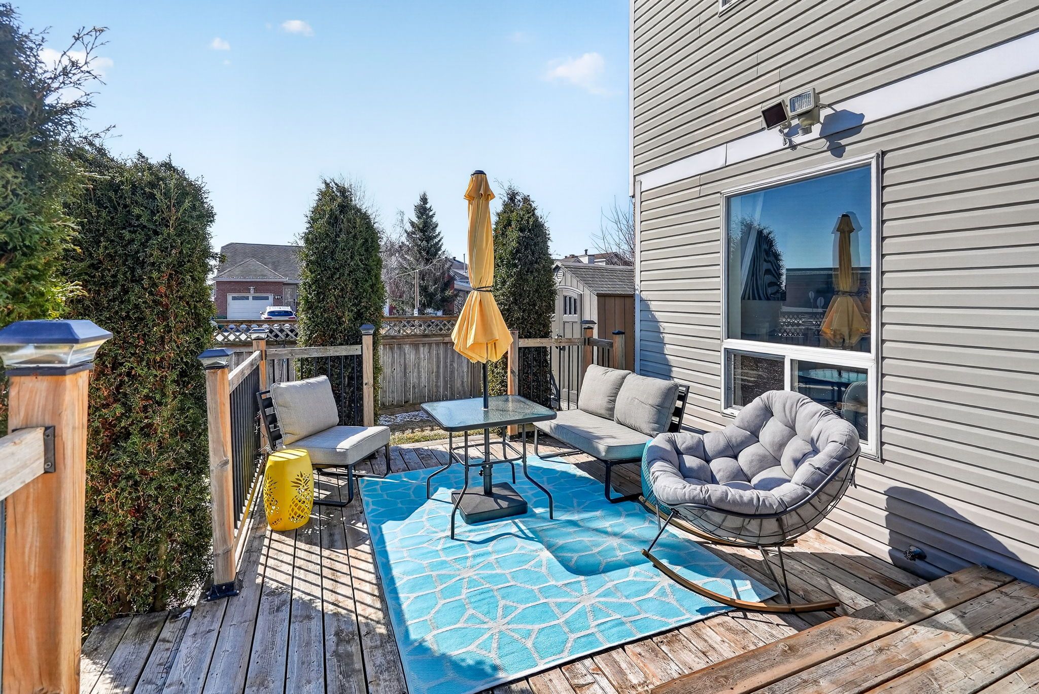 • Private backyard with a deck and no rear neighbours for added tranquility.