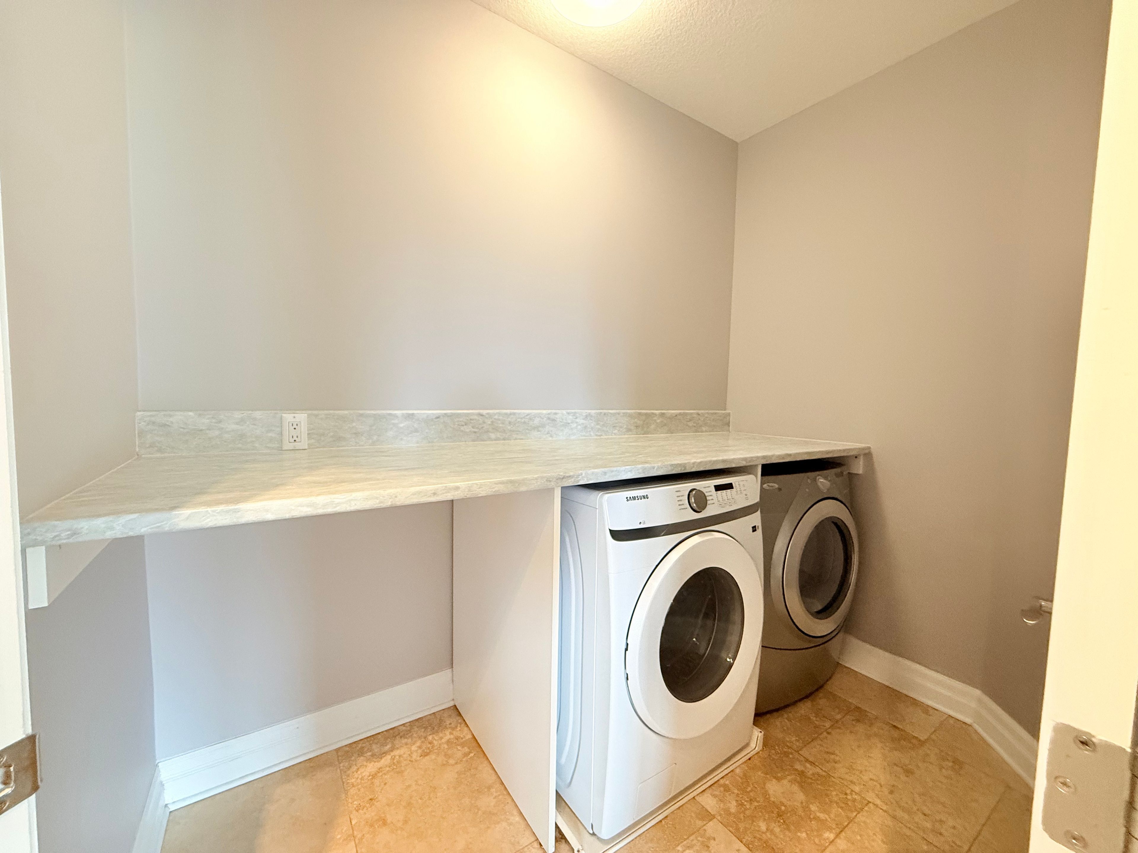 • Gourmet kitchen with granite countertops and ample pantry space.