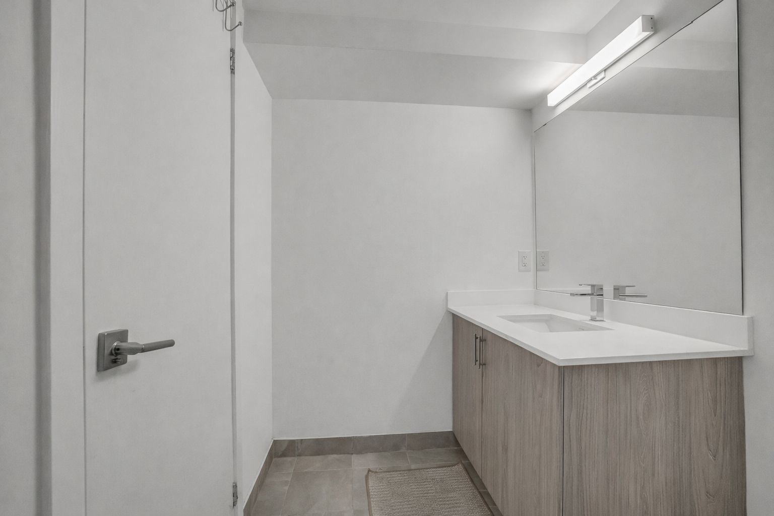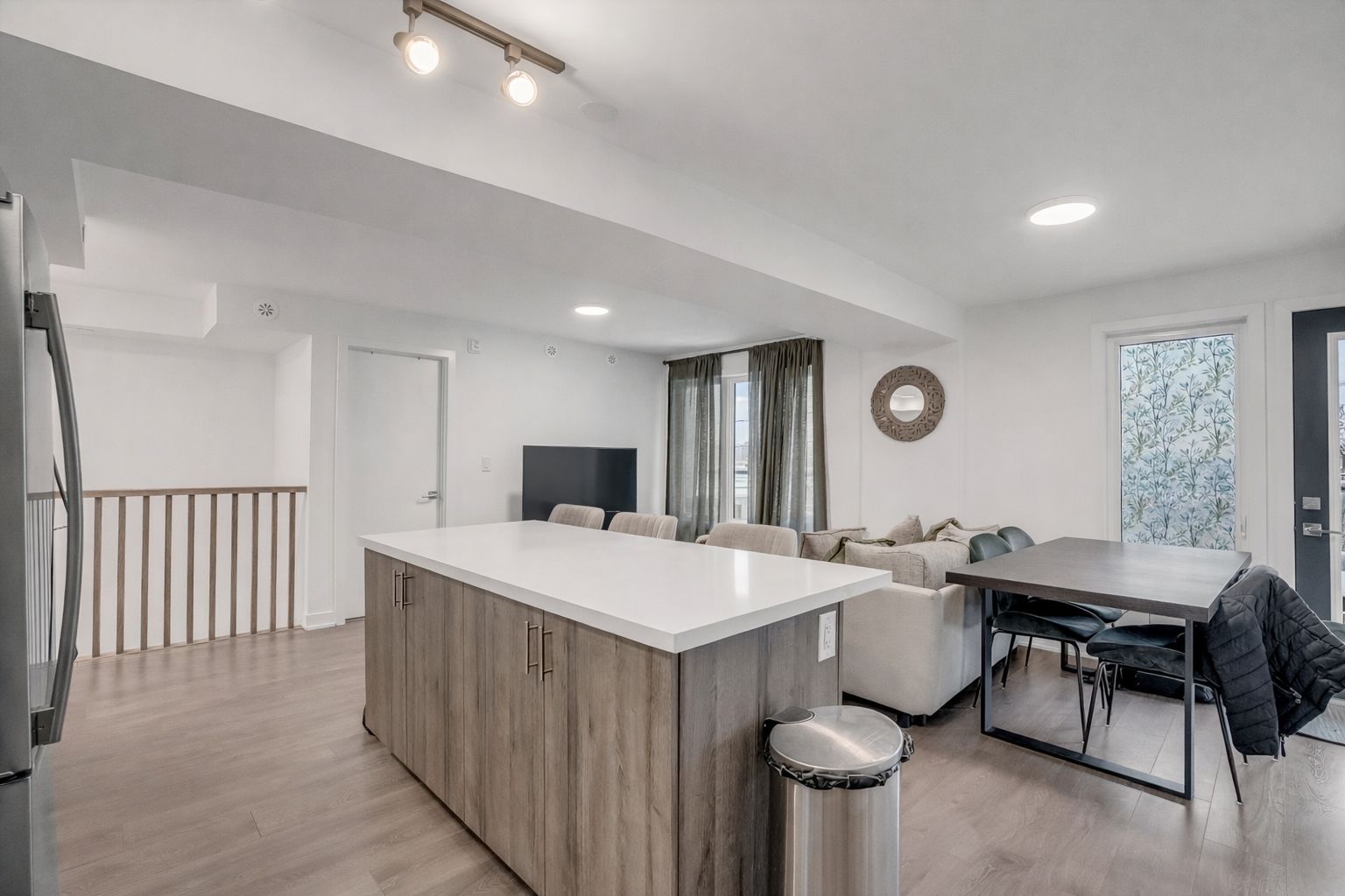 • Contemporary kitchen with quartz countertops and stainless steel appliances.