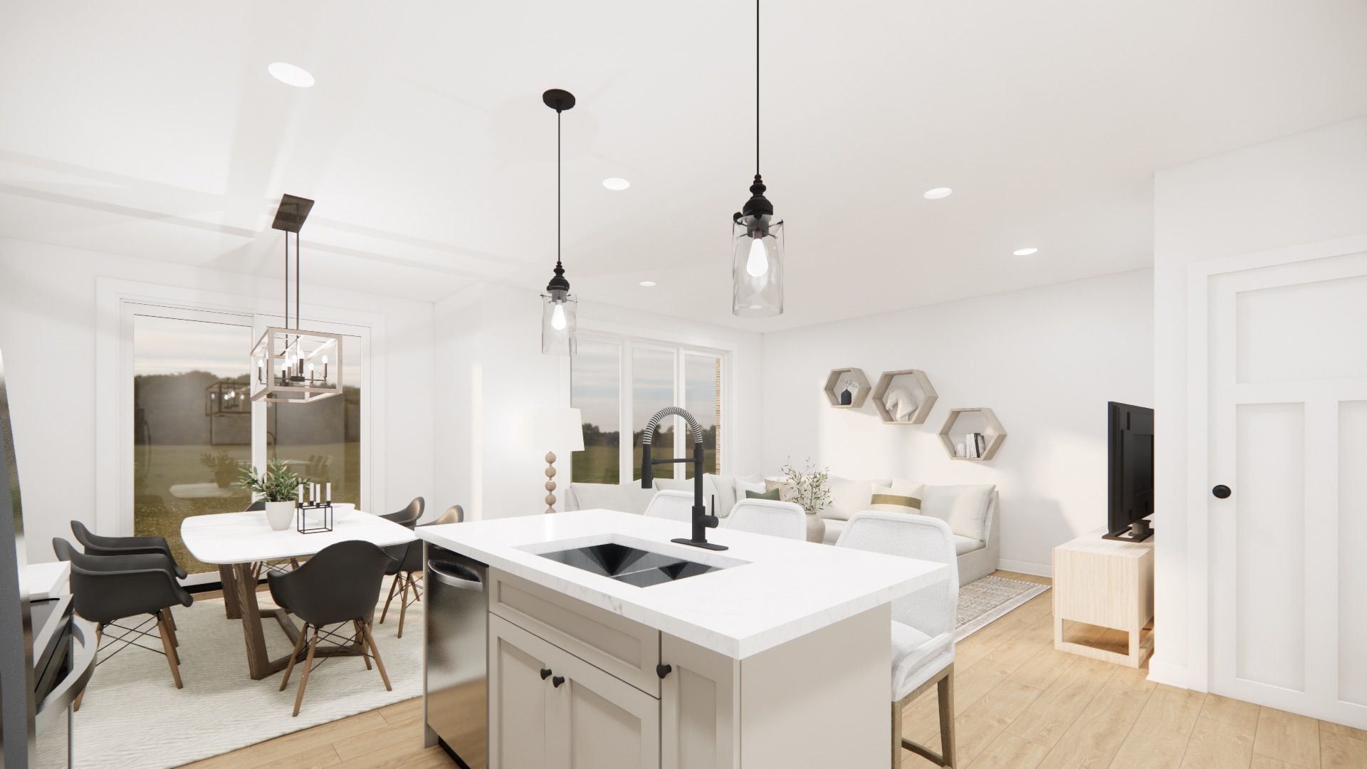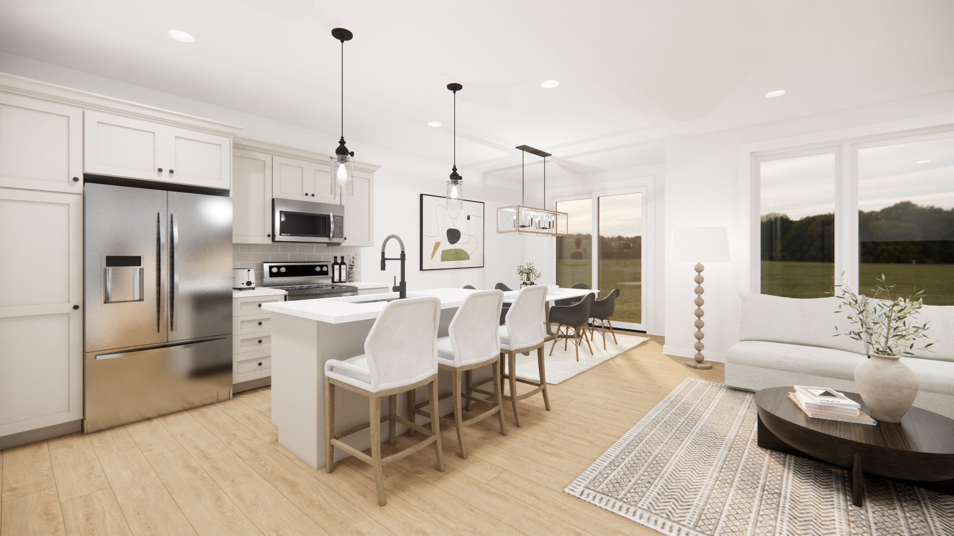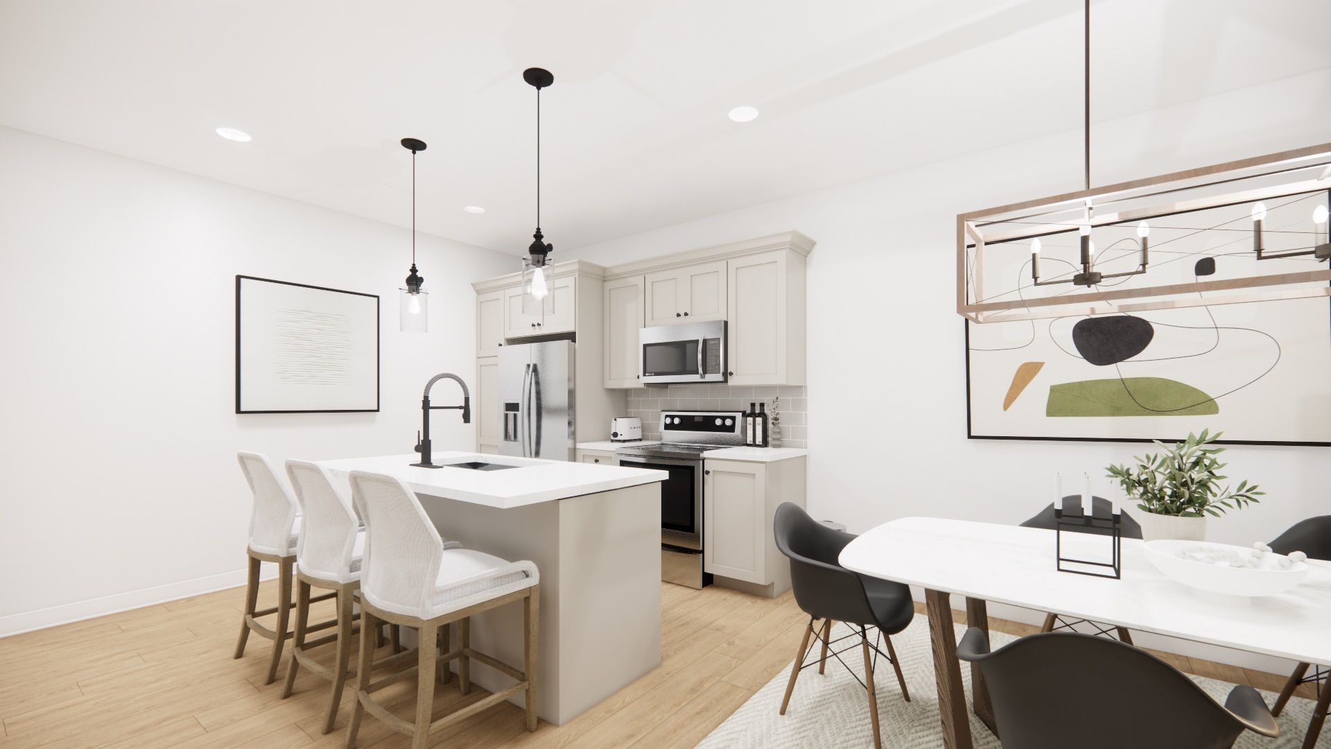 The homestead a lovely 1676sq ft interior townhome designed for efficiency and functionality at an affordable entry level price point. A thoughtfully laid out open concept living area that combines the living room, dining space, and kitchen all with 9' ceilings. The kitchen is well designed with additional storage and counter space at the island with oversized stone counter tops. A modest dining area overlooks the rear yard and open right into the main living room for a bright airy space. Ascending to the second floor, you'll find the comfortable primary bedroom with walk in closet and private ensuite featuring a fully tiled shower with glass door. The two additional bedrooms are designed with simplicity and functionality in mind for kids or work from home spaces. A convenient second level laundry room is a modern day convenience you will appreciate in your day to day life. The basement remains a blank slate for your future design but does come complete with a 2pc bathroom rough in. This finoro homes floor plan encompasses coziness and practicality, making the most out of every square foot without compromising on comfort or style. The exterior finishing touches include a paved driveway, landscaping package and beautiful farmhouse features such as the wide natural wood post. Ask for a full list of incredible features and inclusions! Completion in 2026 but you can still take advantage of the 2025 pricing while you can! ** photos and floor plans are artist concepts only and may not be exactly as shown.