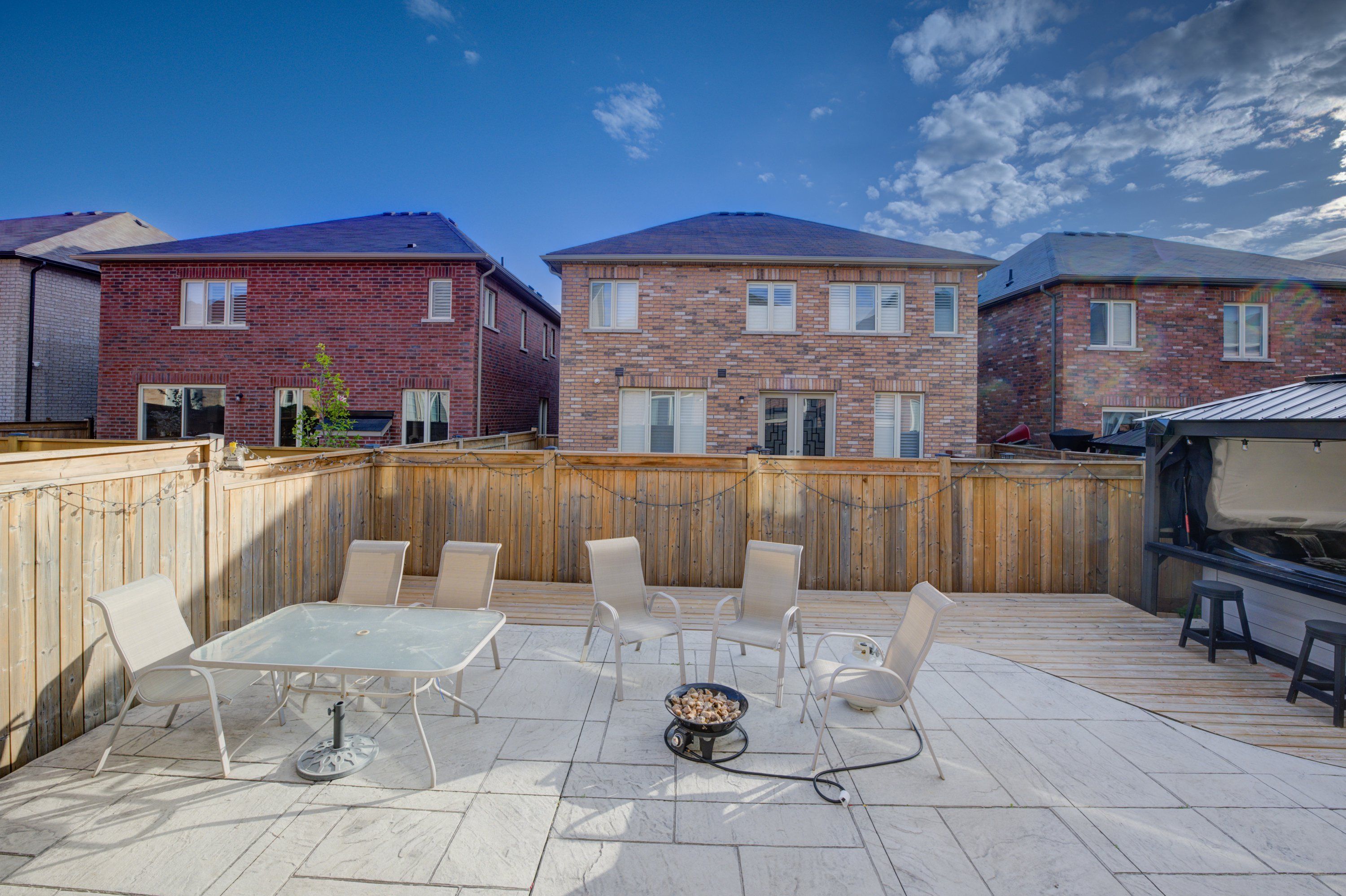 • Low-maintenance backyard with hot tub and custom features for relaxation.