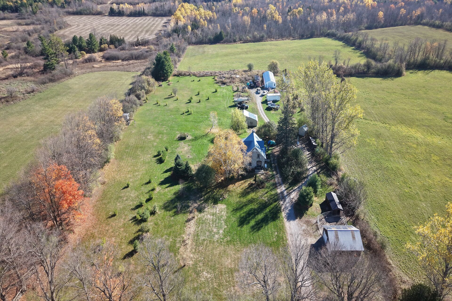 Just south of the growing town of smithsfalls on a tree lined country road you will find this century stone farm home. Its perched on the high point of the cedar rail fenced 4. 29 acres of land that it has watched over for 110 plus years! The home is set back from the road on these tranquil acres, is surrounded by mature maples and farm hay fields. I hope you take a moment to think about the horse that likely pulled a bucket to excavate for its stone foundation or the craftsmen that toiled to build it with chisels, axes all long before conventional tools were born to our current trades. This home is an exceptional example of homestead that has been loved and improved. You'll appreciate that its stone joints have been repointed, a metal roof has been installed, windows and doors replaced while maintaining the interiors deep wall character and period trim, the plumbing and electrical systems have been updated, there is a new furnace and energy efficient heat pump, the country kitchen was rebuilt and this home has been lovingly expanded to suite our modern life style needs for more family spaces using a board and batten exterior to compliment the stone. Through the ornamental gates there is a separate 2 car garage, an updated septic system ( aprox 2012 ), a 24' x 70' insulated, heated hobby quonset building professionally built at the rear of the property for those that dream big with their hobbies. But it's time for a new chapter to be added to its 110 year old story and for that, its now looking for a new family to call it home. Please take the time to explore the many photos for this 3 bedroom 2 bath home, its virtual tour and the attached home plan layout. Book a private showing, walk the grounds, sit on the deck, fall in love and add your chapter into this stone homes story.