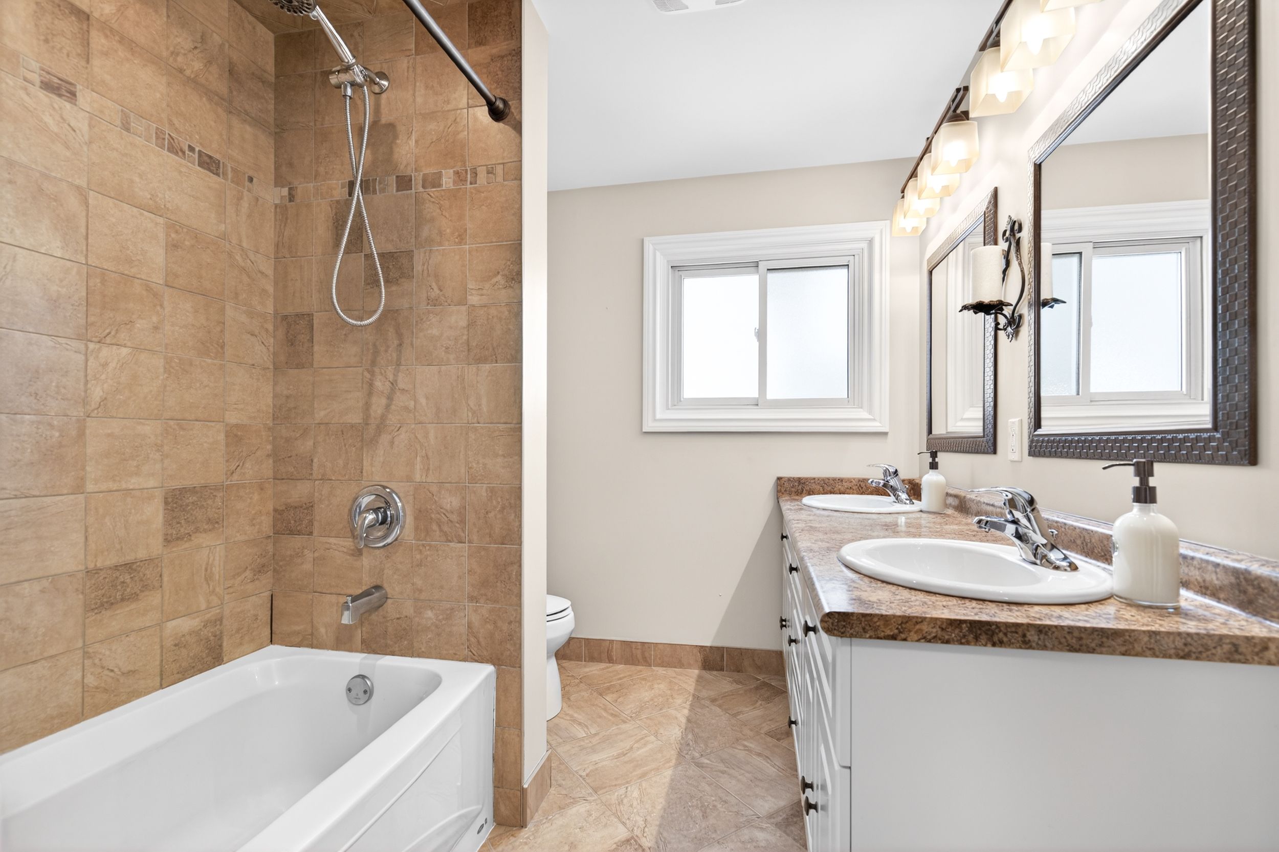 Spacious family home on a highly desirable street in centremount neighbourhood on the mountain. From the lovely front yard gardens and landscaping to the aggregate concrete driveway continuing into the back yard, this well maintained home has plenty of space inside and out for growing families. Sun filled kitchen and sunroom with real brick walls overlooking the back yard , a maintenance free trex deck, and a hot tub. Large living and dining rooms with hardwood flooring. Three bedrooms and a bathroom upstairs also with hardwood flooring. Front entry level has a foyer leading to a laundry/mud room and a recreation room. Basement has a bonus room that can be used as an additional bedroom if needed, bathroom, and storage/utility room with bonus crawlspace storage. Large fenced back yard with two wooden sheds and manicured landscaping. Conveniently located close to shopping, schools, transit and highways.