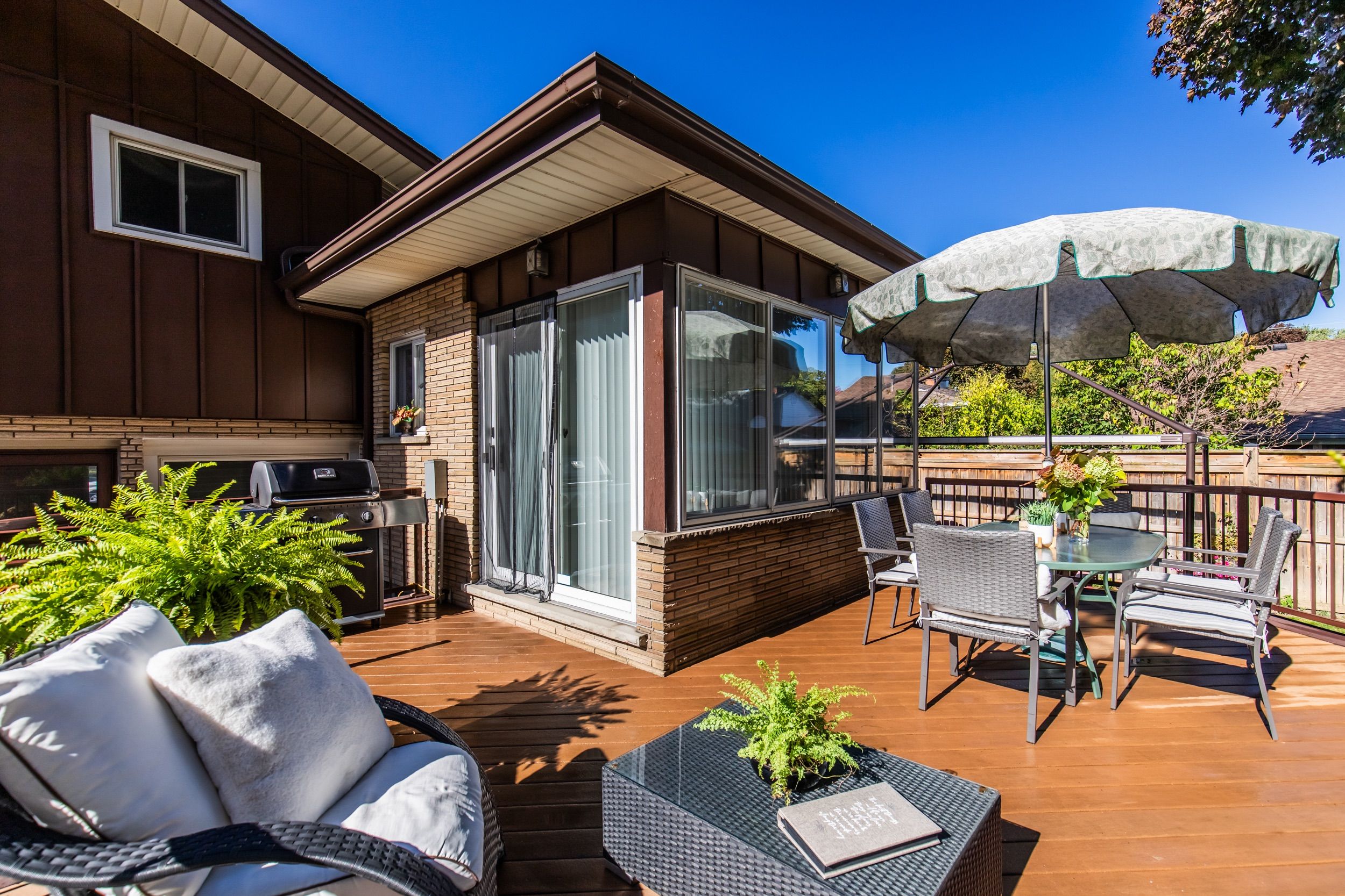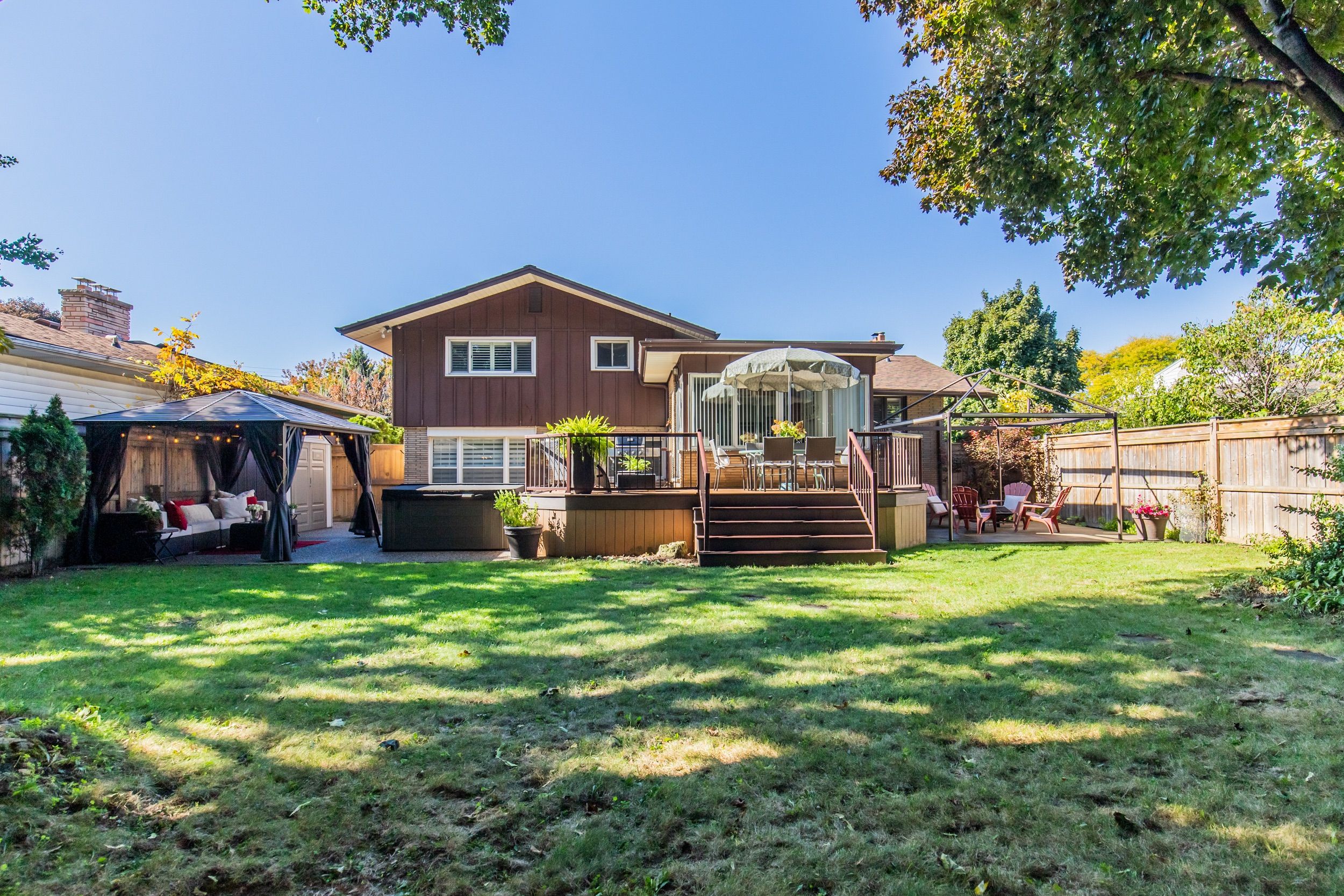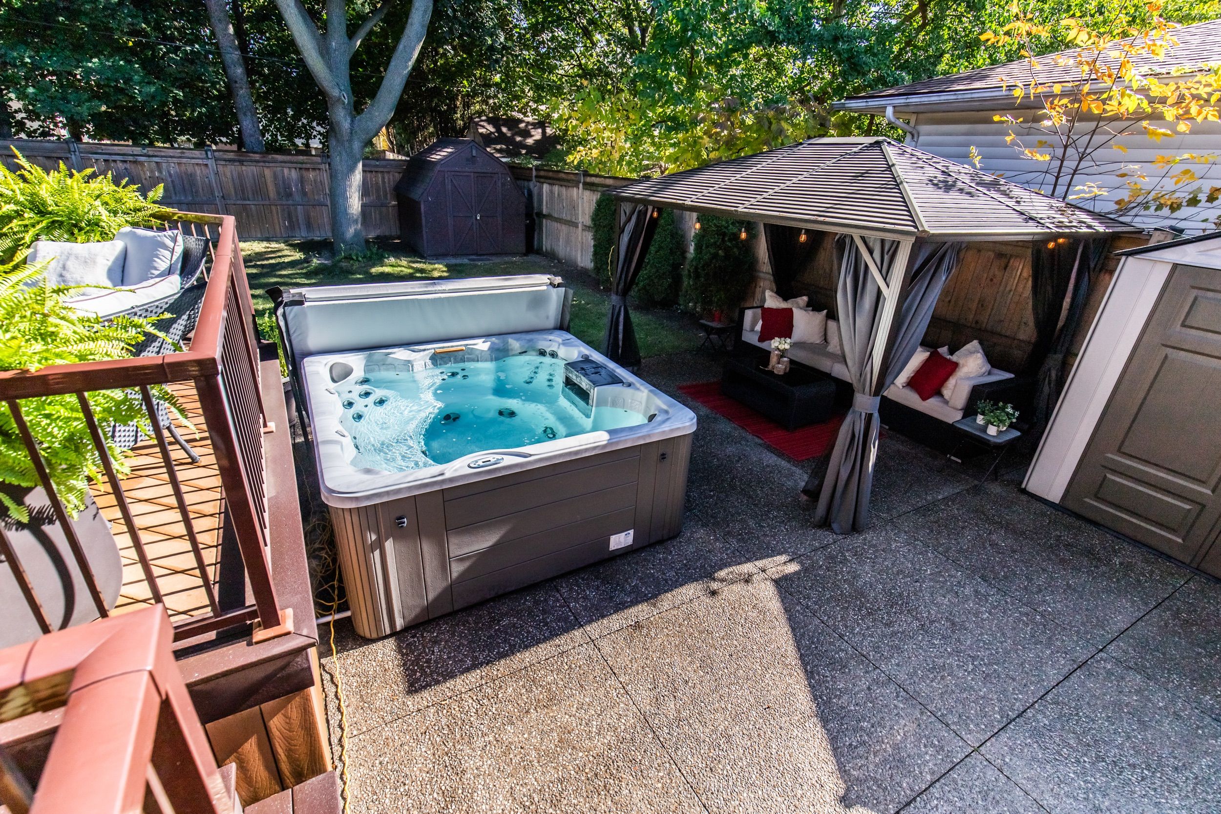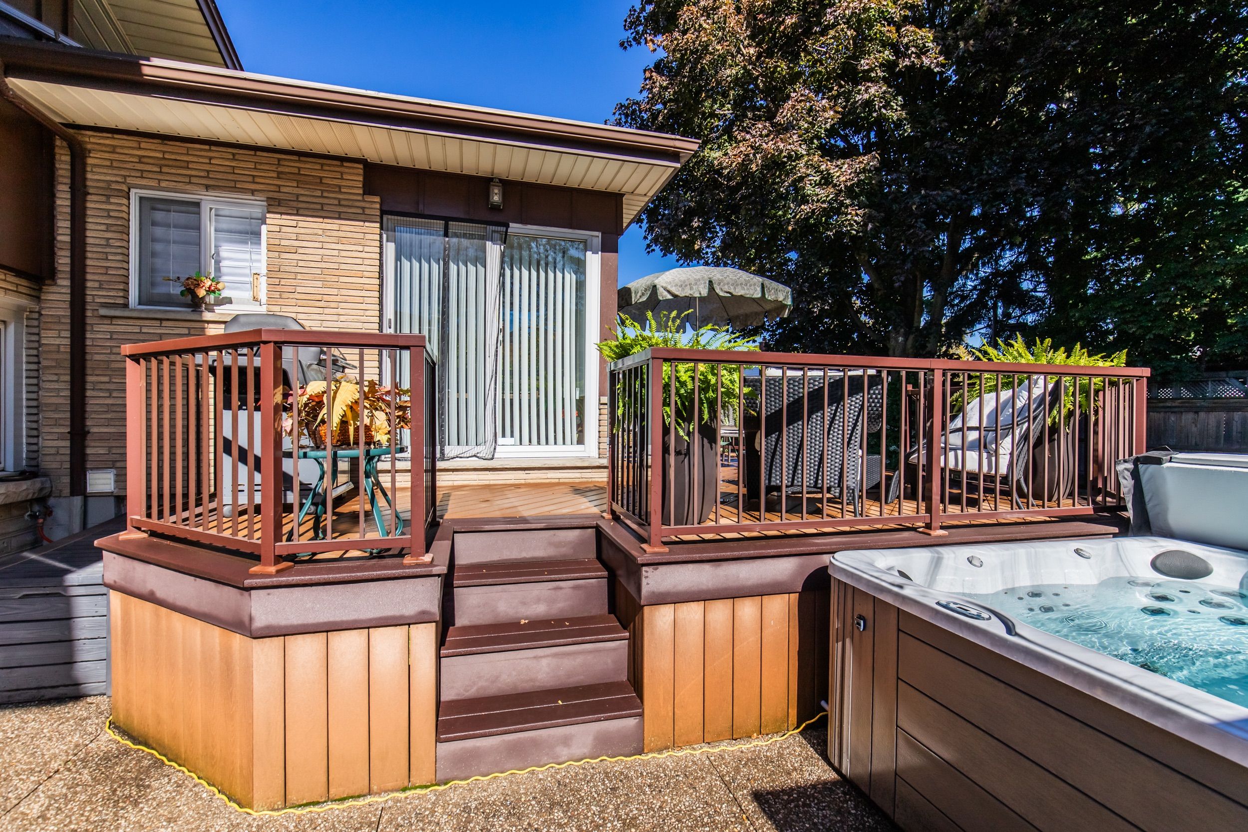 • Maintenance-free Trex deck and hot tub for relaxation and entertaining.