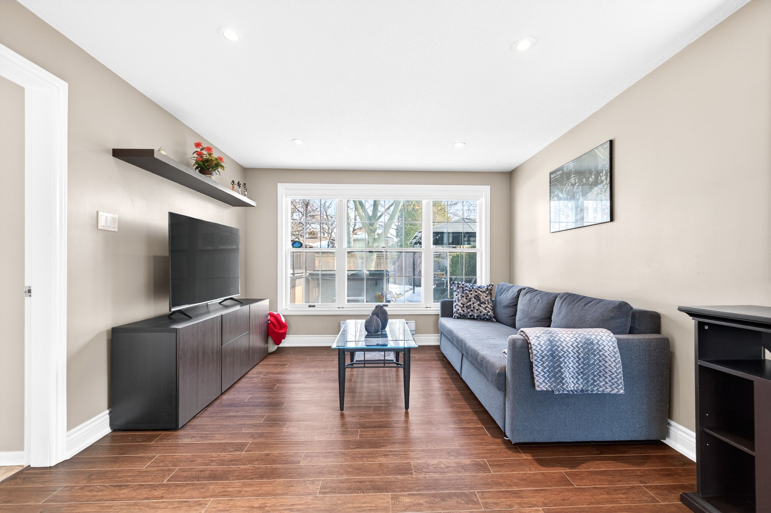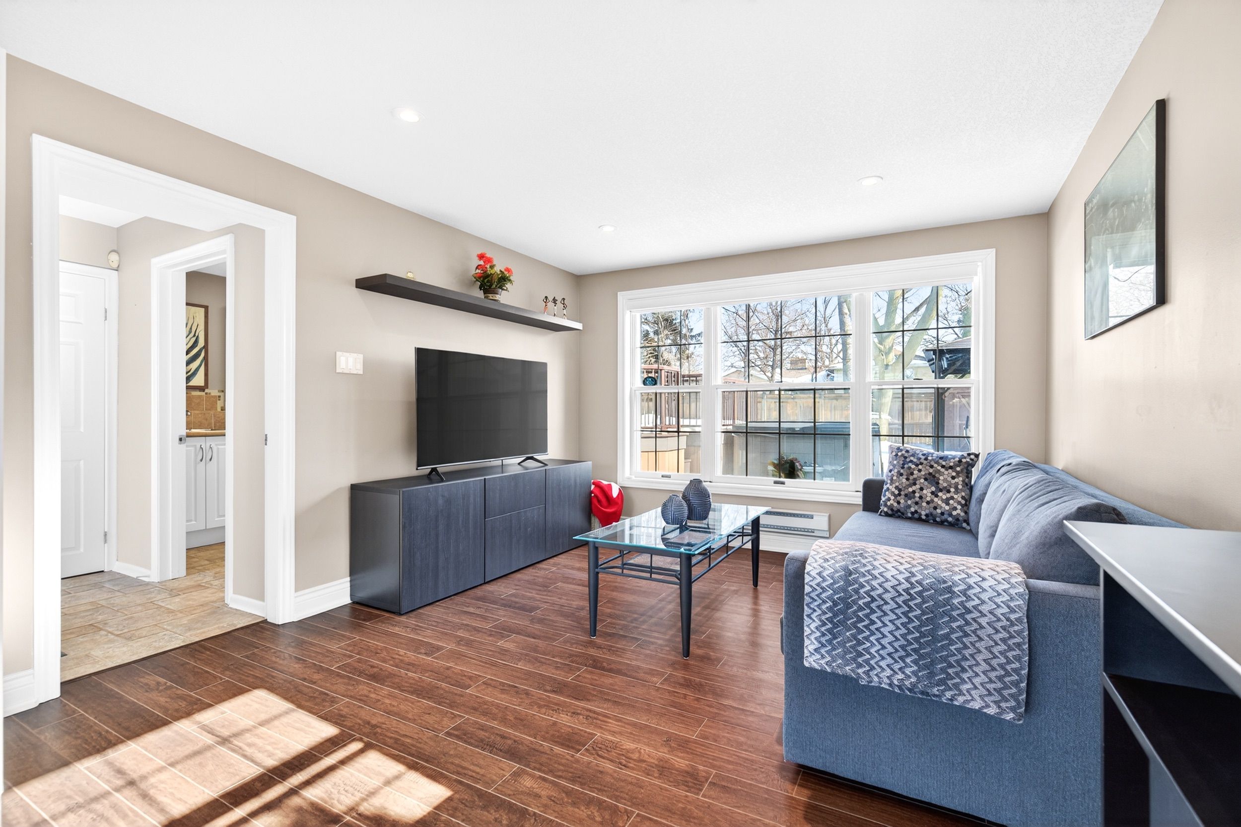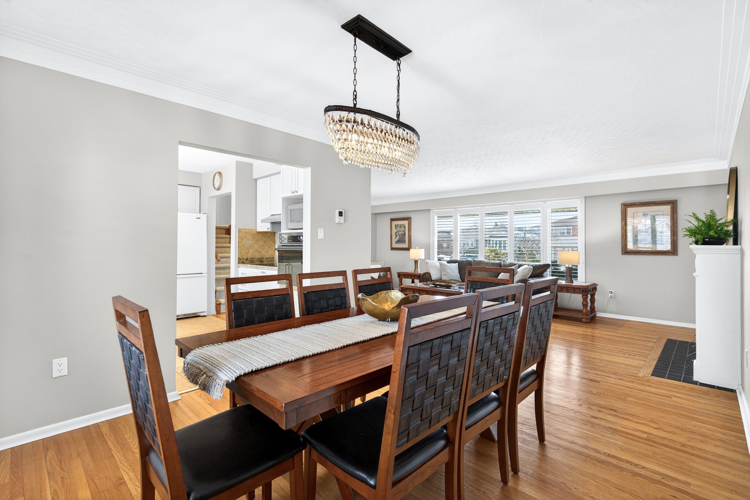• Large living and dining rooms featuring hardwood flooring throughout.