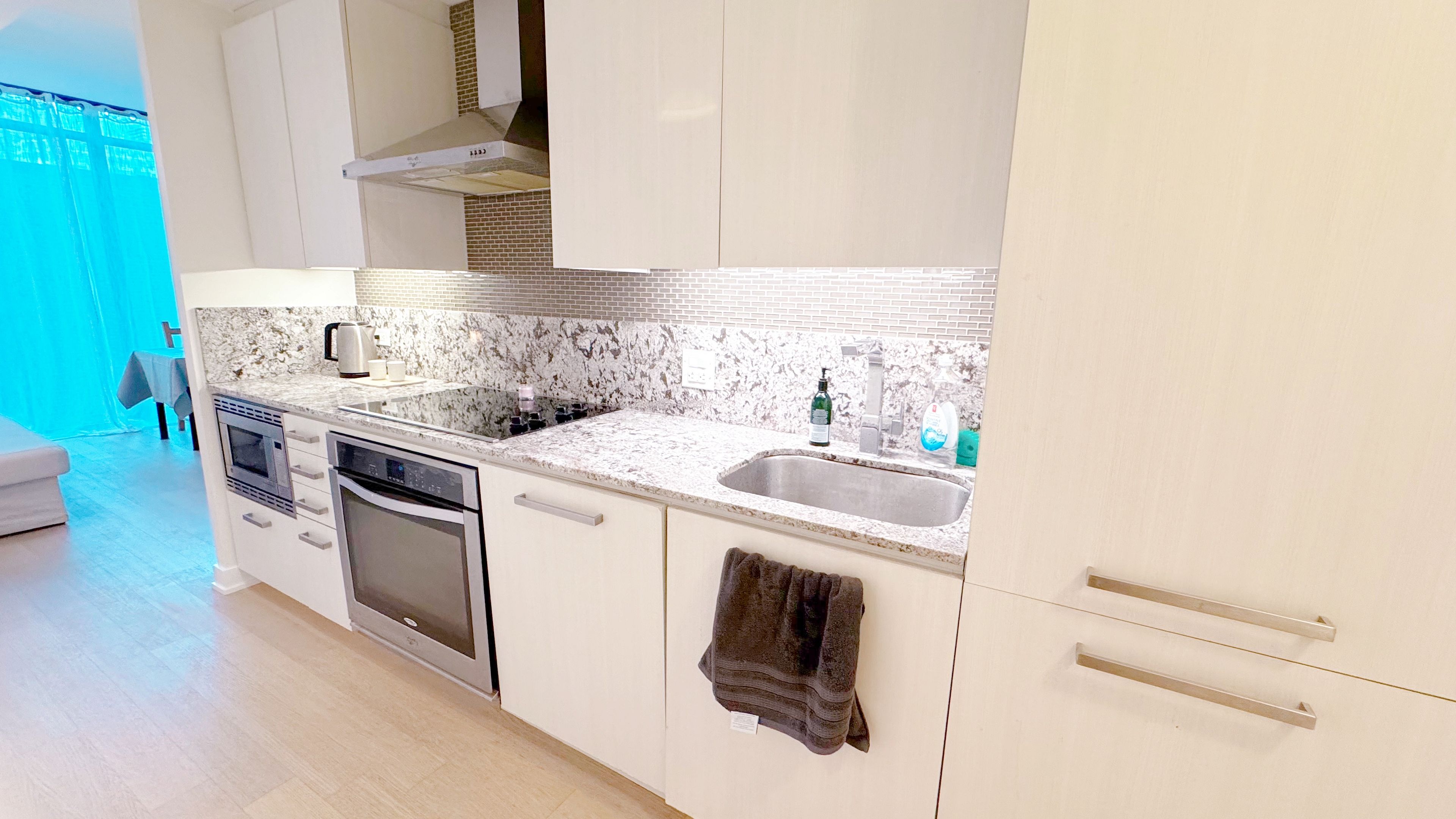 Beautiful unit, gorgeous design in an award winning boutique building. Bright, spacious, open concept and sparkling clean. Beautiful high-end finishes includes engineered wood floor throughout. Beautiful kitchen with beautiful marble countertops and marble back splash and fully integrated full sika appliances. 9' ceiling w/floor to ceiling windows.